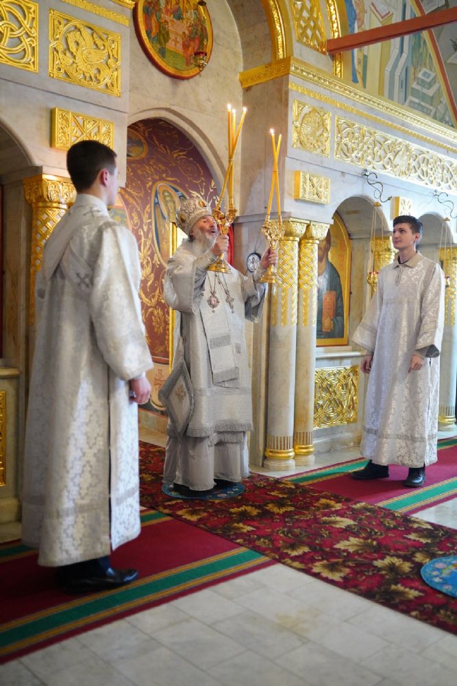 «В сегодняшнем евангельском благовестии Сам Господь обращается к каждому из нас со словами: покайтесь, приблизилось Царствие Небесное. После Крещения Господь удаляется в иудейскую пустыню, где в течение 40 дней Он пребывал в молитве и посте. И диавол, приступая ко Господу и искушая Его, предложил Ему исполнить те желания, которыми порабощено все человечество. Когда Господь, как истинный человек, взалкал, диавол Ему предлагает сотворить чудо – превратить камни в хлебы, на что Господь отвечает: не хлебом единым жив человек.