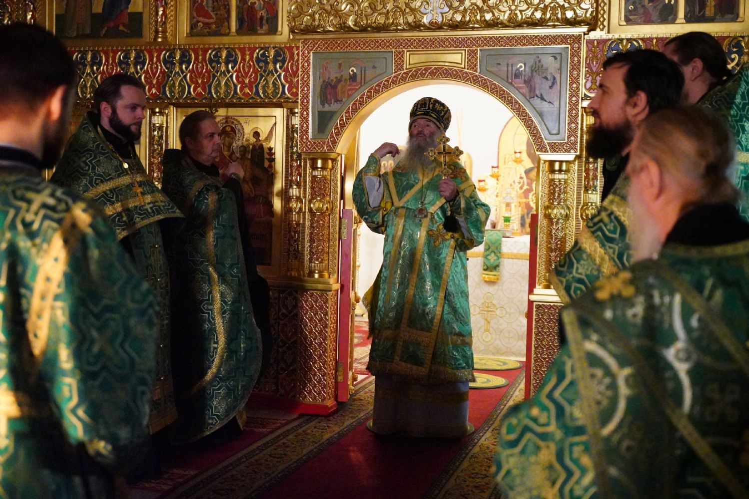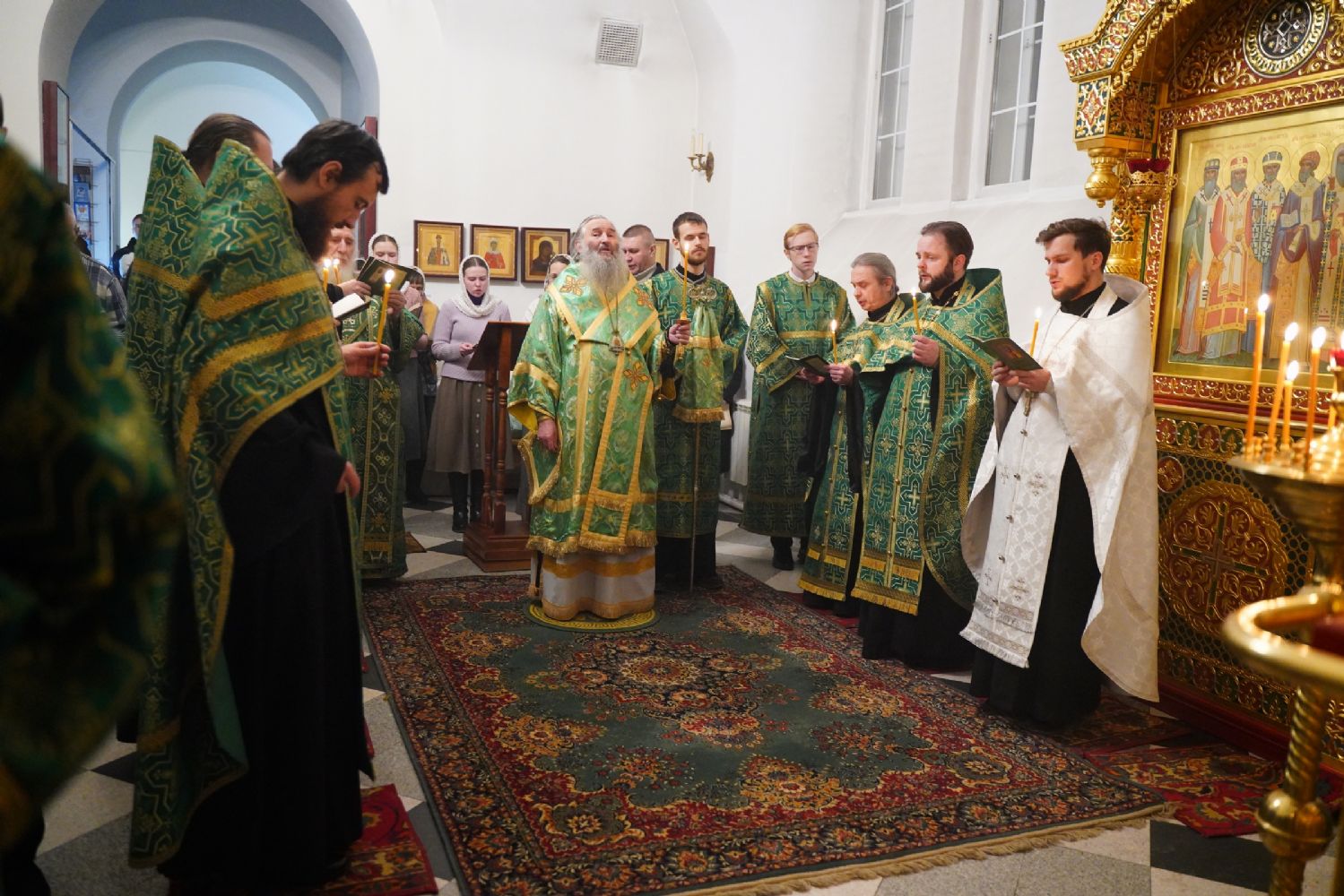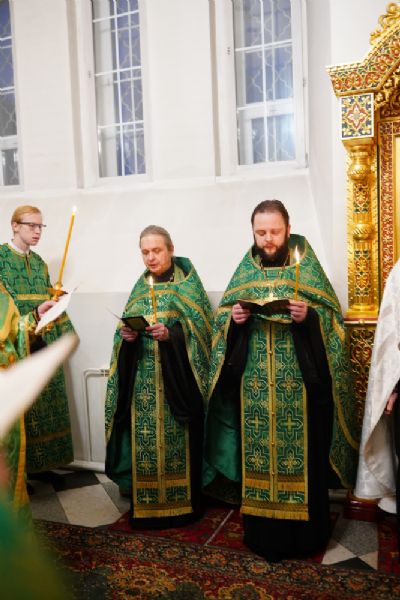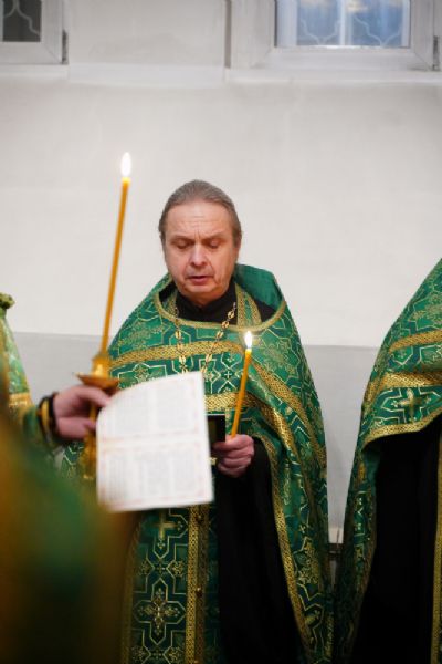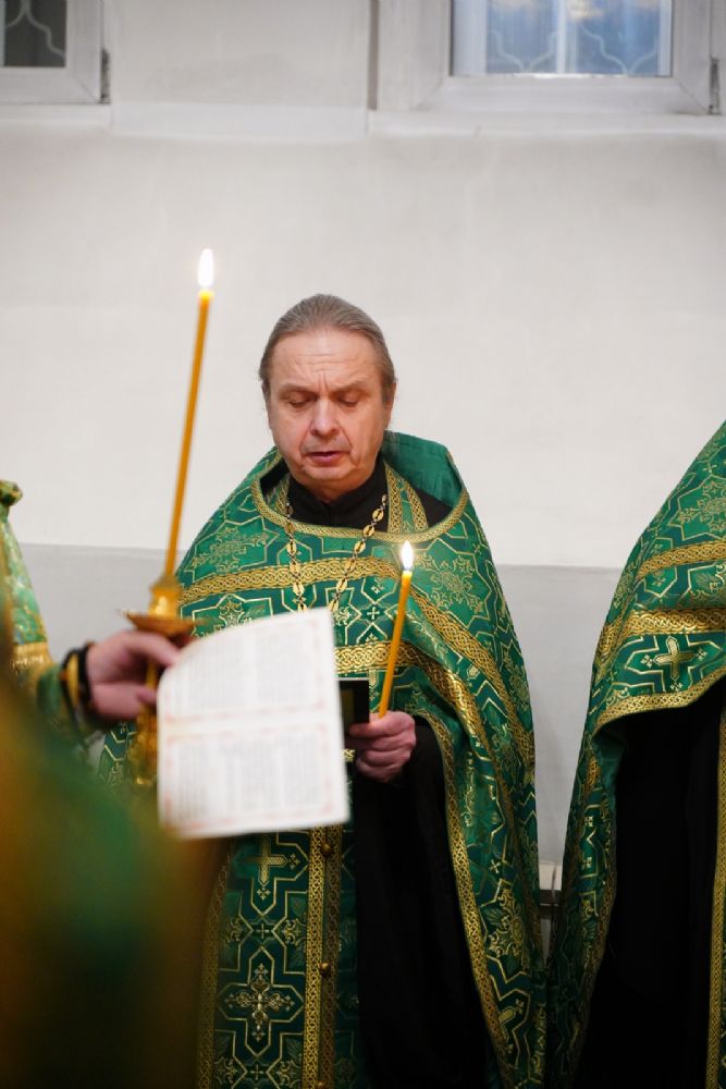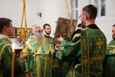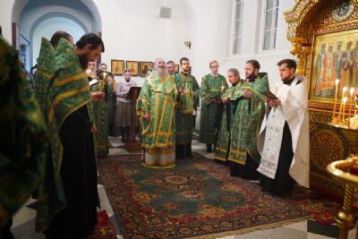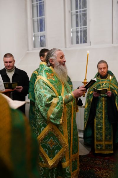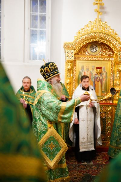 Владыке сослужили настоятель храма протоиерей Александр Бачурин, клирики храма протоиерей Василий Лихачев, иереи Константин Домрачев, Виктор Умрихин, Николай Бабич, Феодор Ромашов, диакон Алексий Ершов, а также протодиакон Михаил Козловский.