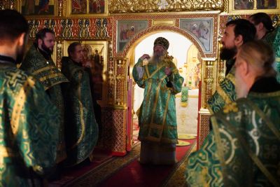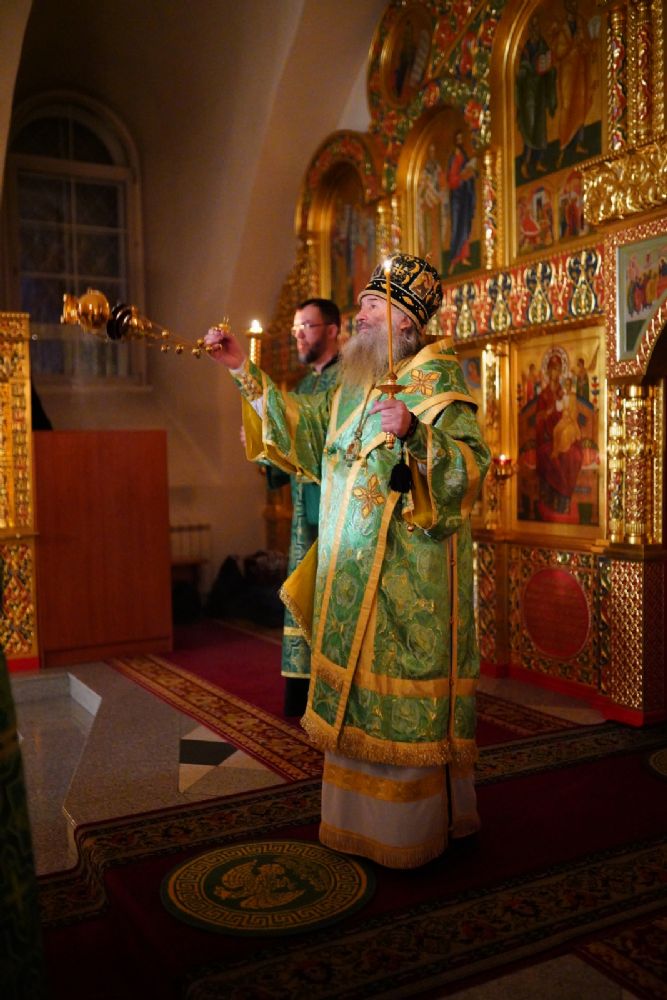 13 января вечером, в канун праздника Обрезания Господня, дня памяти святителя Василия Великого, митрополит Йошкар-Олинский и Марийский Иоанн возглавил всенощное бдение в Воскресенском соборе г. Йошкар-Олы.