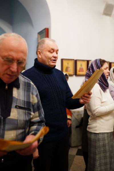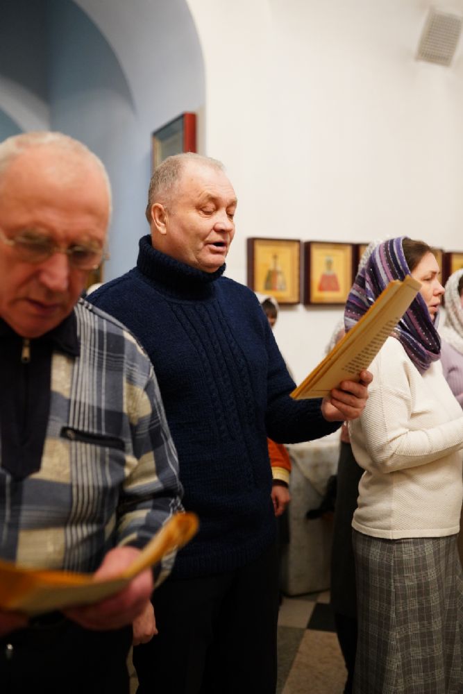 Песнопения исполнял хор храма под управлением регента Елены Умрихиной. Традиционно, акафист вместе со священством и хором пели все прихожане.