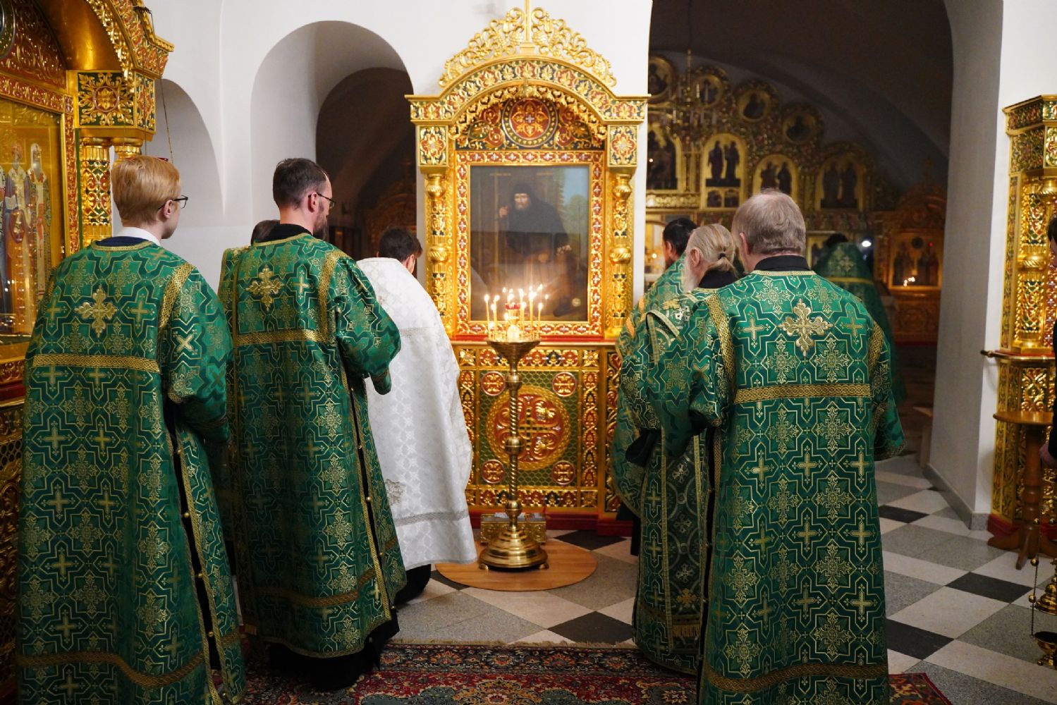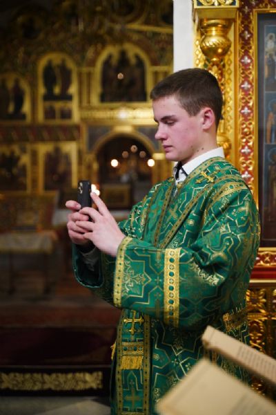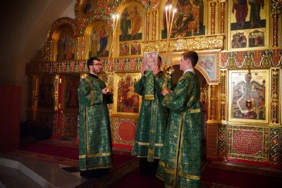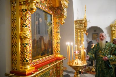 14 января в Троицком соборе Свято-Троицкого Серафимо-Дивеевского женского монастыря было совершено вечернее богослужение: малая вечерня с акафистом преподобному Серафиму Саровскому и всенощное бдение.