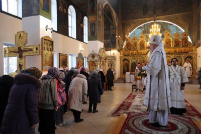 Его Преосвященству сослужили клирики собора, песнопения исполнял архиерейский хор.