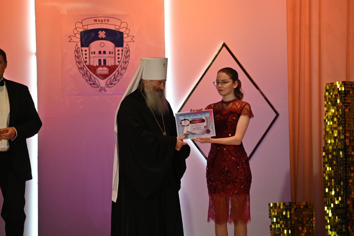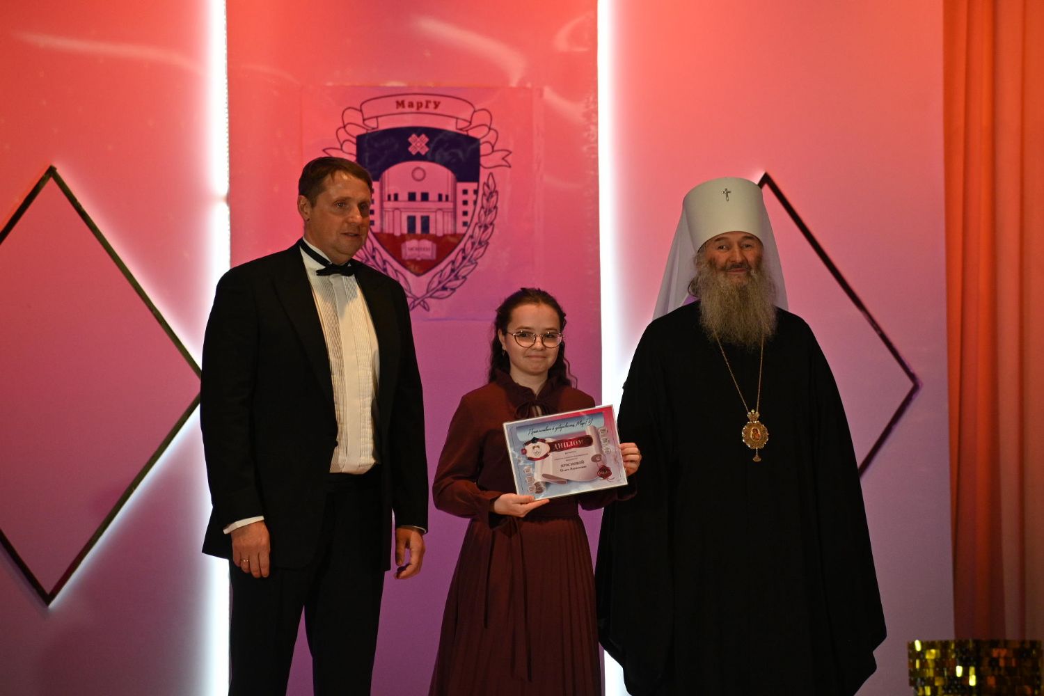 В рамках праздника состоялось награждение лучших студентов. Митрополит Иоанн вручил грамоту в номинации «Православный доброволец МарГУ» Ольге Красновой.