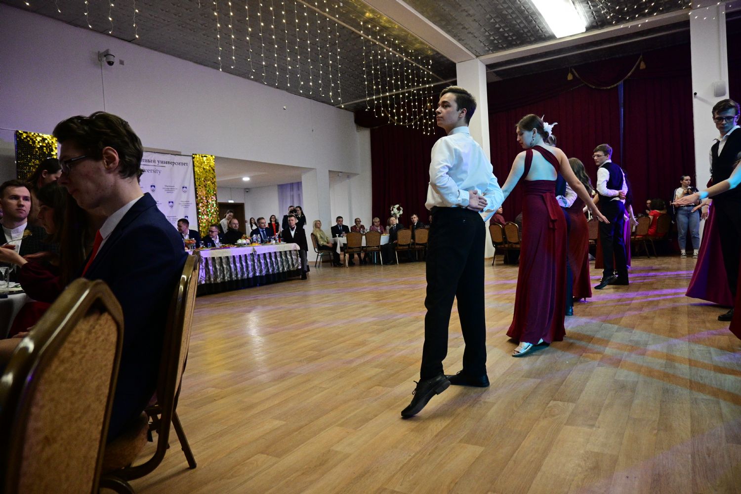 После появления на сцене императрицы Елизаветы Петровны, графа И.И. Шувалова и ученого М.В. Ломоносова, погрузивших гостей в историю прошлых веков, бальные пары закружили в танцевальных ритмах – полонез, финская полька, фигурный вальс, мазурка, падеграс, экосез…