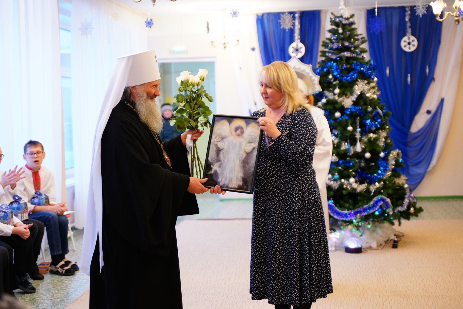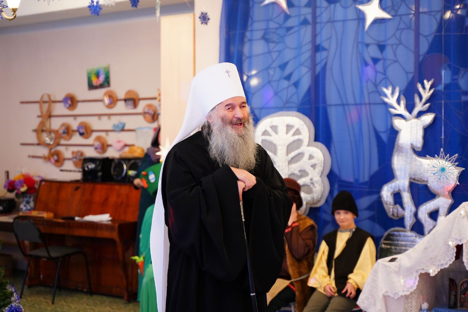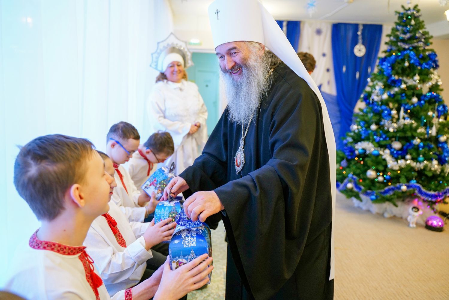 «Дорогие детки, возлюбленные братья и сестры! Нет больше на земле милости чем, взирая на Богомладенца Христа и на то, как Пречистая Богоматерь любовью объемлет Его, смотреть и на тех деток, которые в святые рождественские дни прославляют пришедшего в мир Господа. Детская душа чиста, и не случайно Господь говорит – таковых есть Царствие Небесное. Их радость искренна, сердце открыто – и жизнь этих детей при любых обстоятельствах для нас, взрослых, является великим духовным уроком. Уроком того, как мы должны в их лице видеть самого Христа, который пришел к нам не обличать, а явить свою любовь и свою милость.