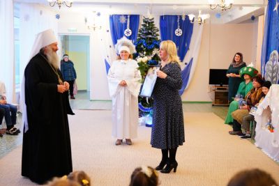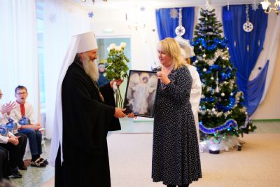 Директор центра Ольга Бирюкова поблагодарила митрополита Иоанна за архипастырское попечение, поздравила его с недавним юбилеем и преподнесла подарок, который дети изготовили своими руками.