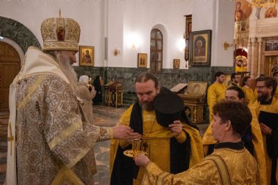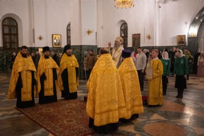 28 января вечером, в канун 33-й Недели по Пятидесятнице, митрополит Йошкар-Олинский и Марийский Иоанн возглавил всенощное бдение в Благовещенском кафедральном соборе.