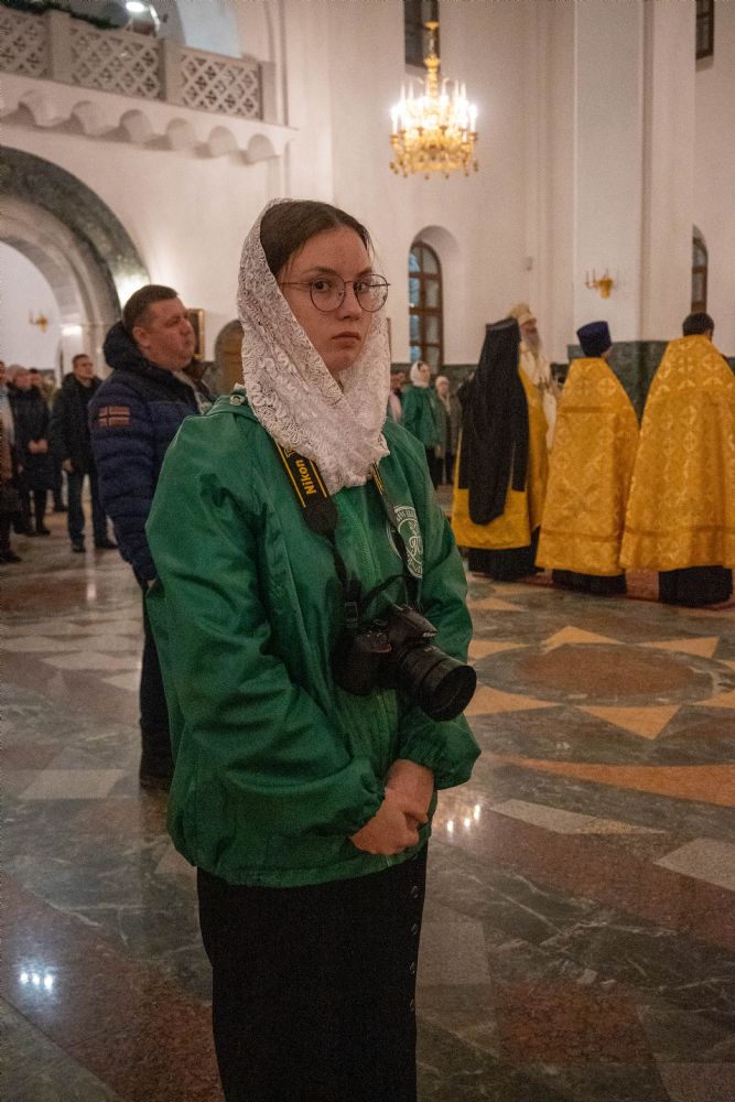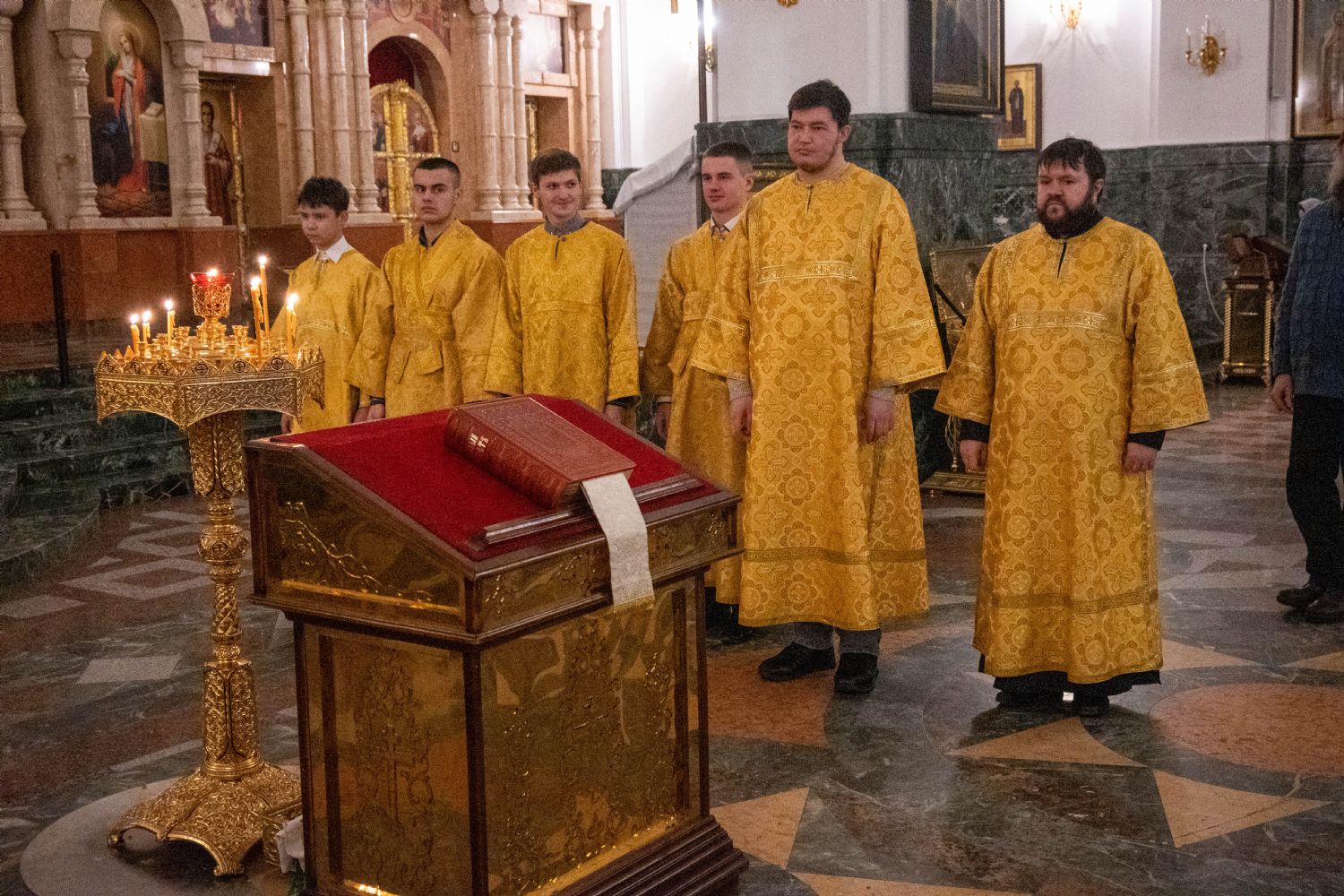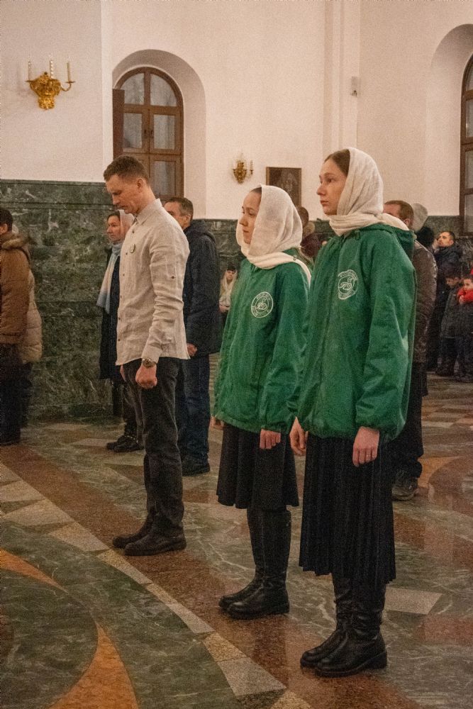 Песнопения исполнял детско-юношеский хор «Благовест» под управлением регента Надежды Поздеевой. За богослужением помогали Православные добровольцы.