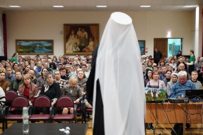 Беседа длилась около двух часов. Владыка высказывал свои суждения, приводил примеры из жизни святых, и все это рассматривал в контексте нашей сегодняшней жизни. В конце прозвучало много вопросов от собравшихся в переполненном зале. И на каждый из них архипастырь давал исчерпывающие ответы.