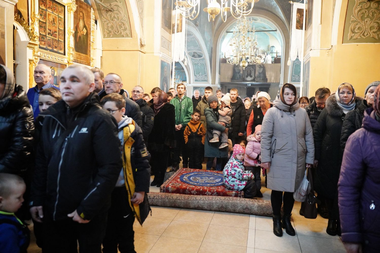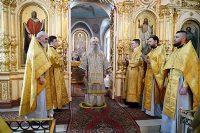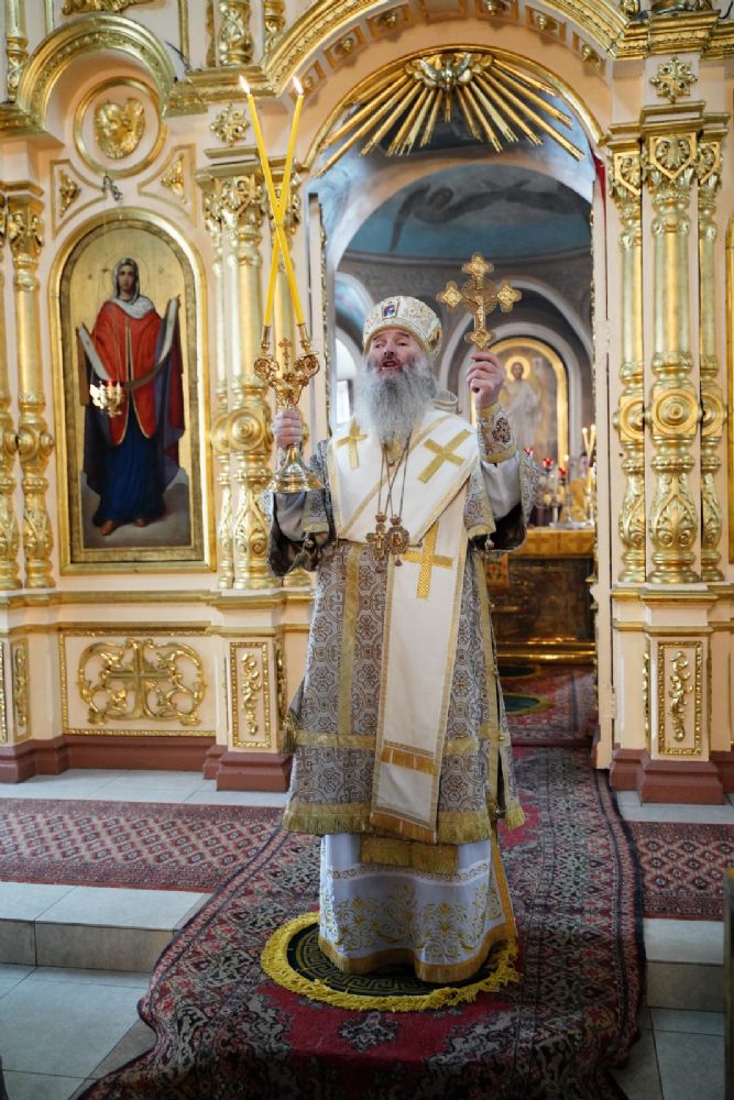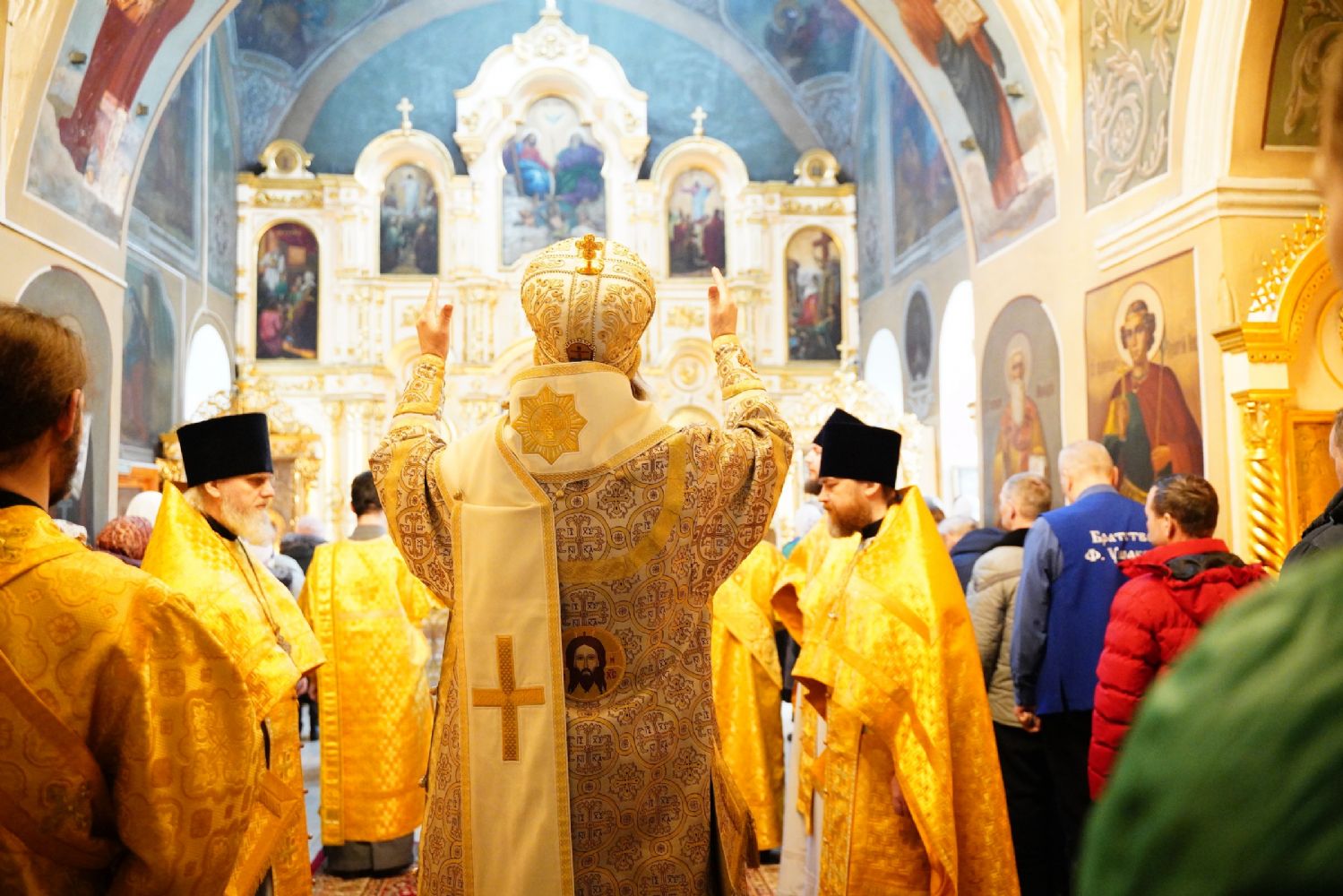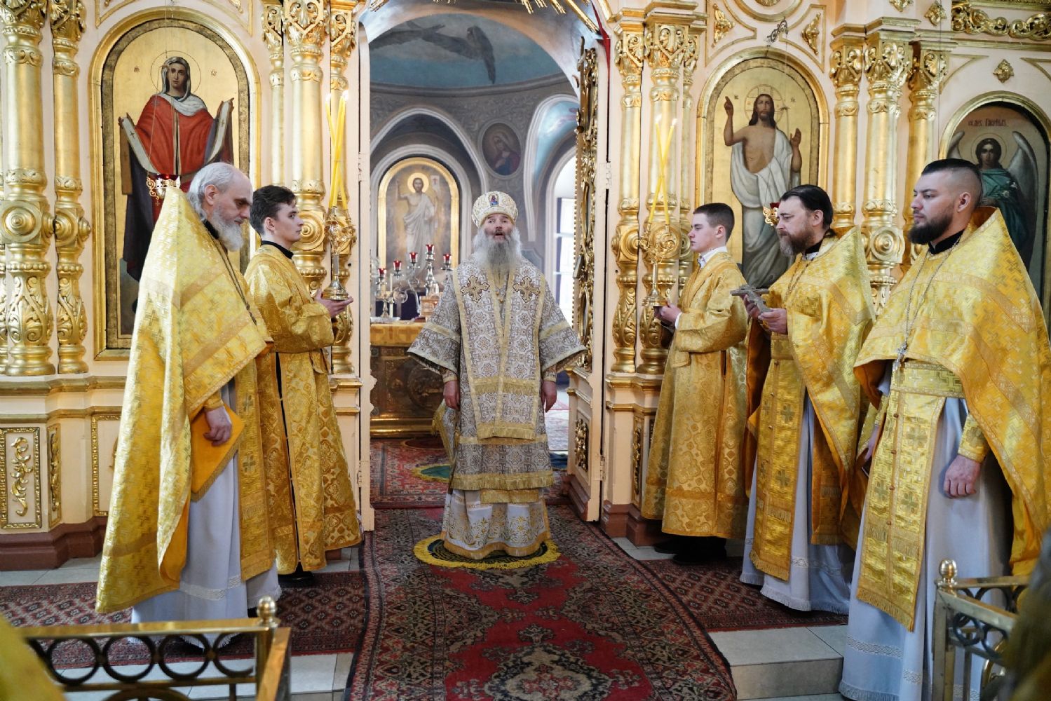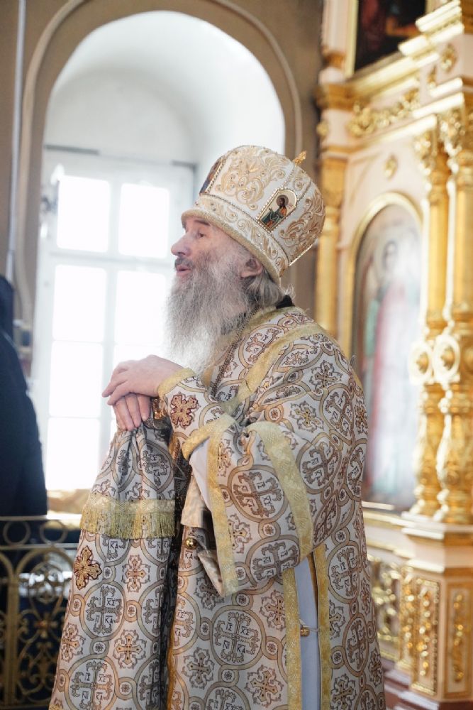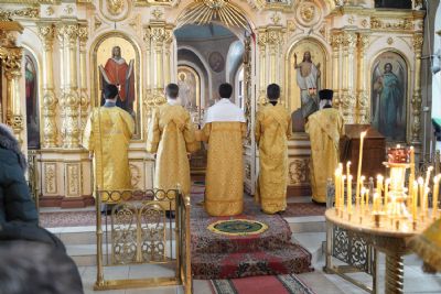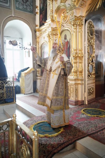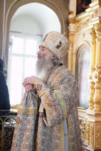 Его Высокопреосвященству сослужили ключарь храма протоиерей Михаил Ильин, клирики храма протоиерей Павел Матвеев, иерей Павел Дурандин, протодиакон Михаил Козловский и диакон Димитрий Смирнов. Песнопения исполнял хор храма под руководством регента Ирины Лебедевой.