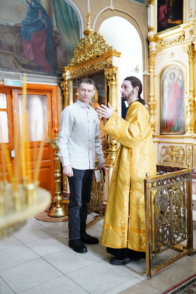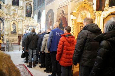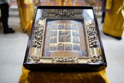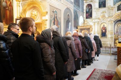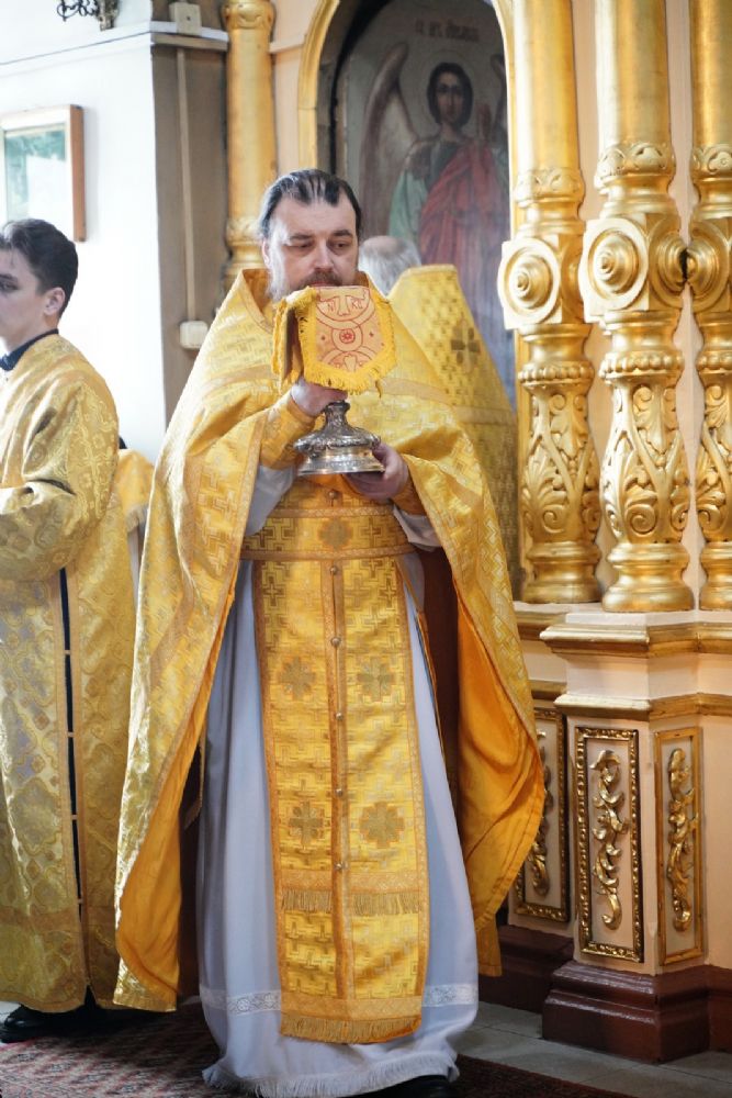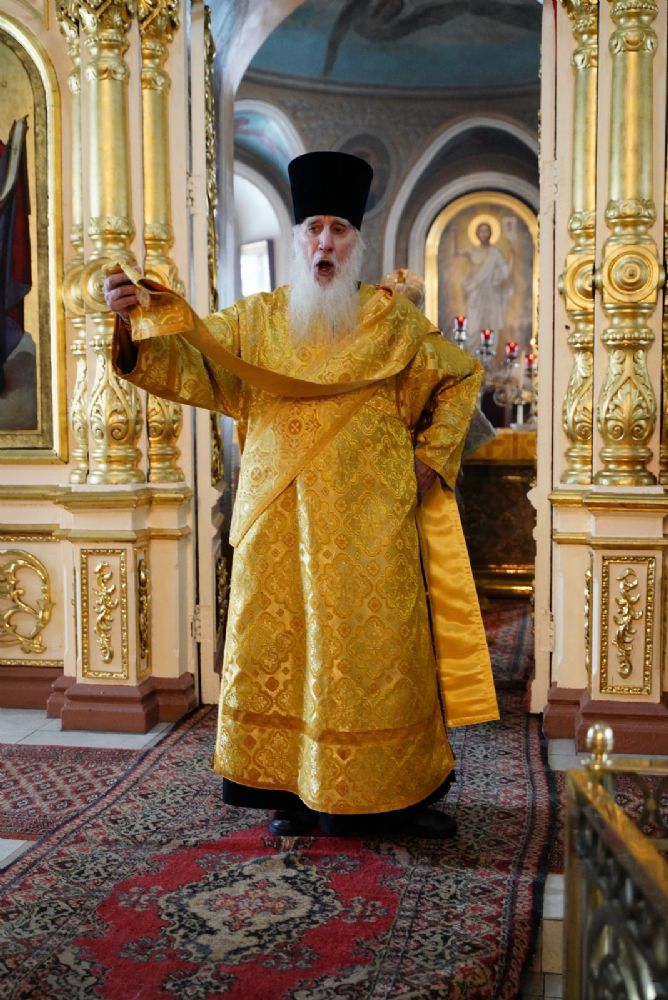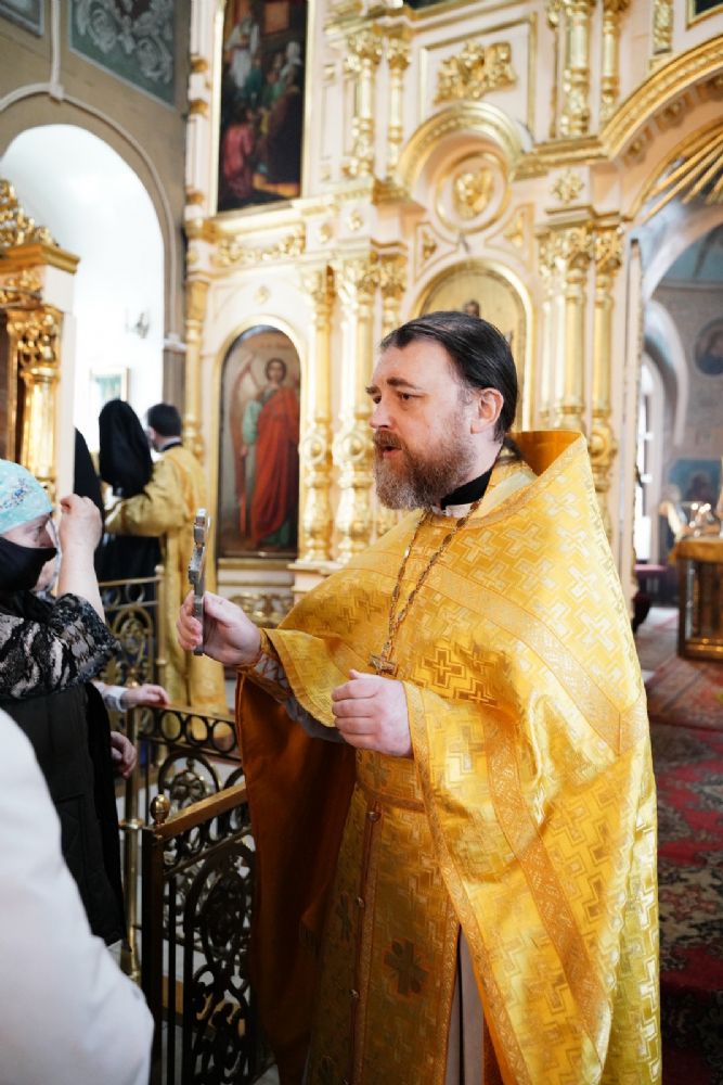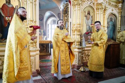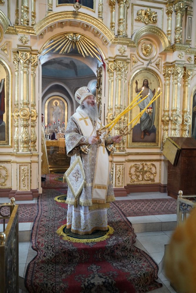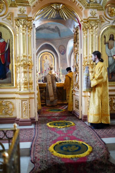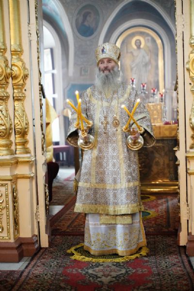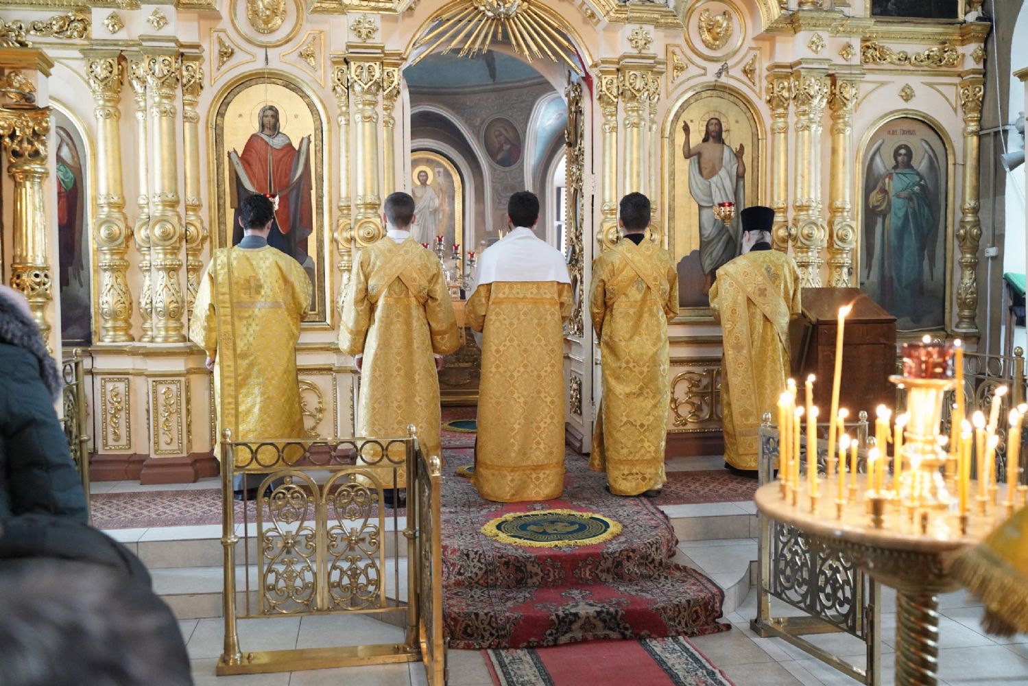 Его Высокопреосвященству сослужили ключарь храма протоиерей Михаил Ильин, клирики храма протоиерей Павел Матвеев, иерей Павел Дурандин, протодиакон Михаил Козловский и диакон Димитрий Смирнов. Песнопения исполнял хор храма под руководством регента Ирины Лебедевой.