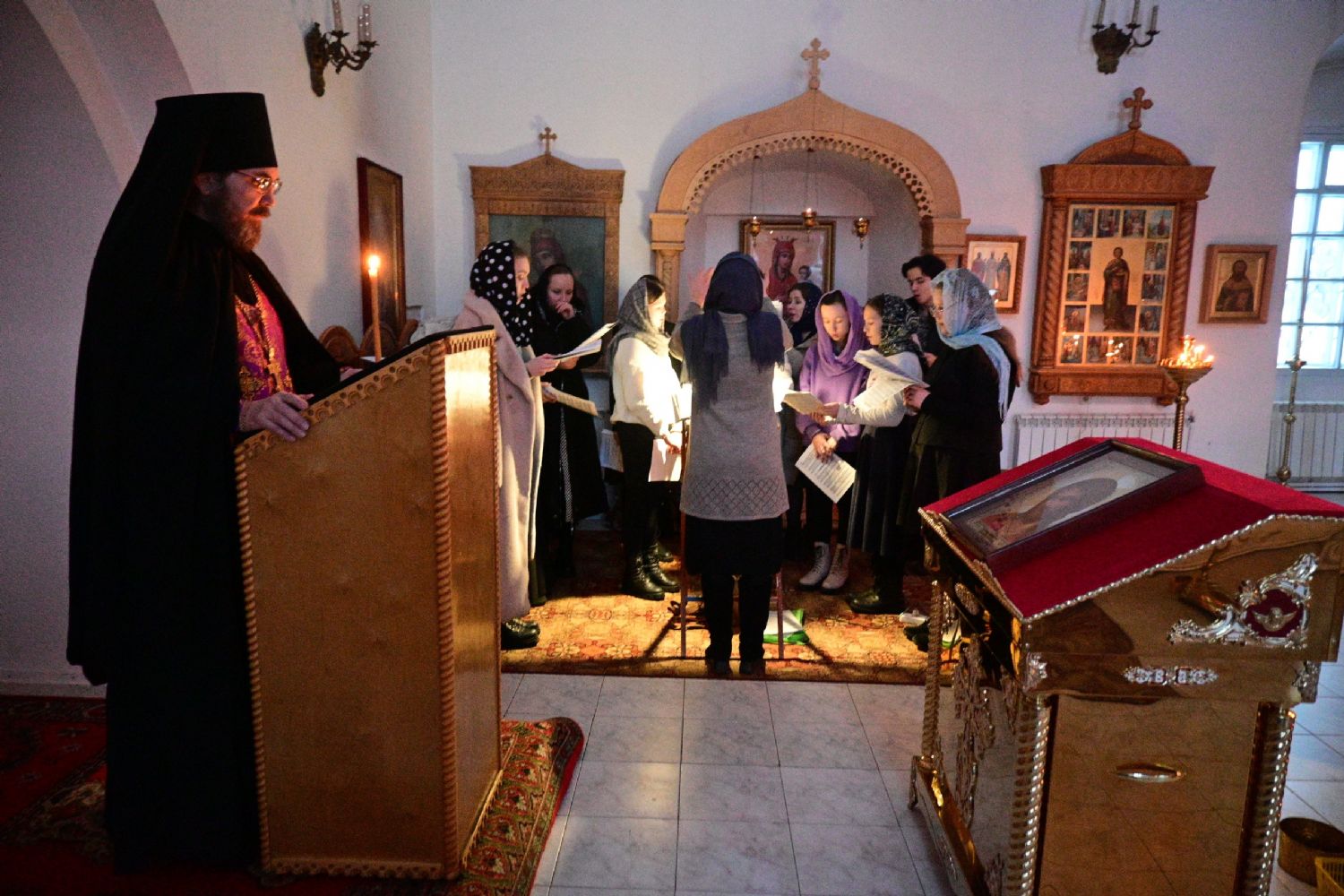 Первые четыре песни канона в центре храма читал владыка Иоанн, продолжил чтение секретарь Йошкар-Олинского епархиального управления иеромонах Серафим (Пасанаев), затем клирик Мироносицкого монастыря иерей Михаил Лежнин. Богослужебные песнопения исполнял хор «Благовест» под управлением Татьяны Черновой.