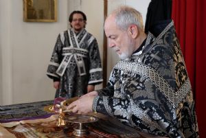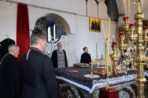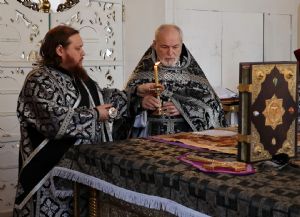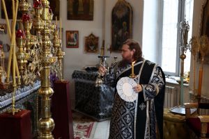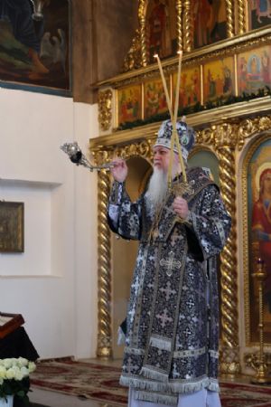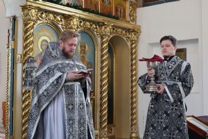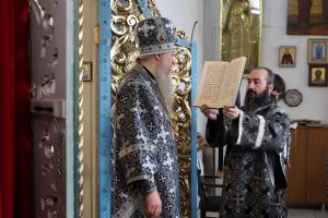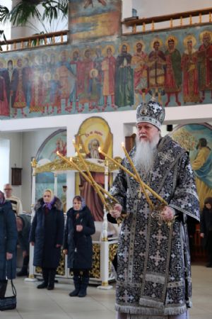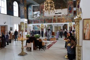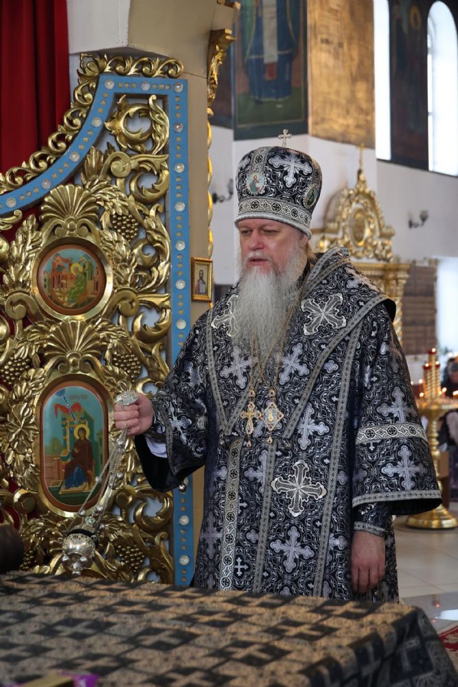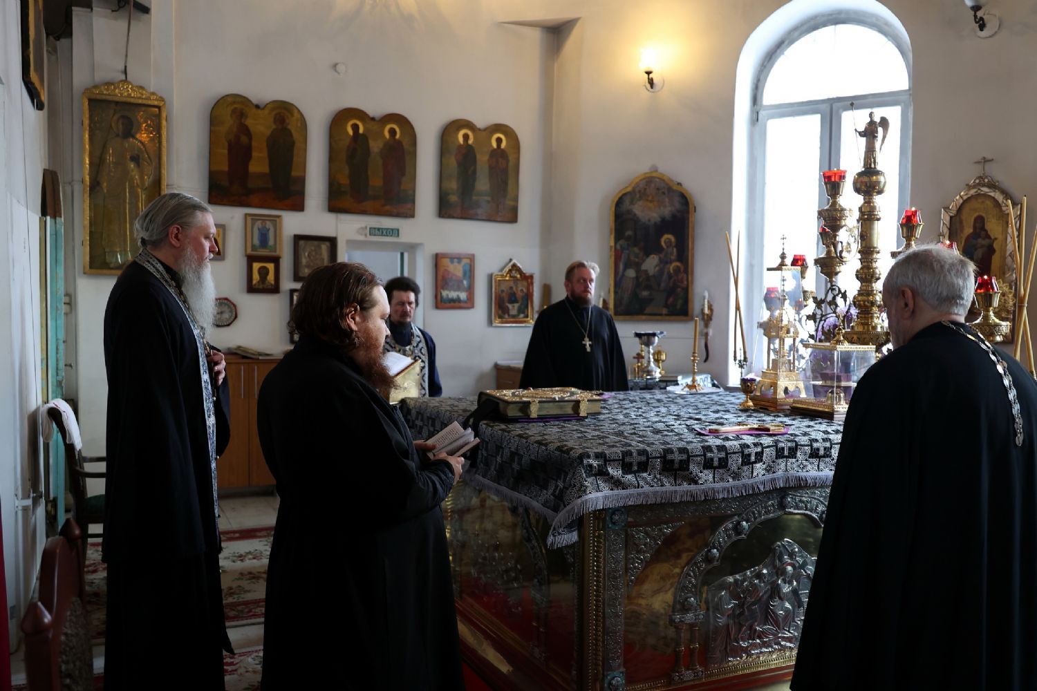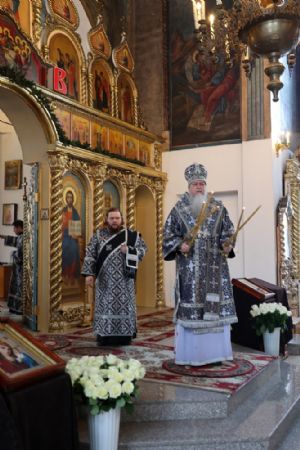 Его Преосвященству сослужили клирики собора иерей Александр Усков, иерей Иоанн Лапшинский, иерей Сергий Першаков, иерей Димитрий Карпетченко, диакон Иоанн Захаров, диакон Герман Михайлов. Песнопения исполнял архиерейский хор.