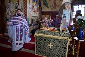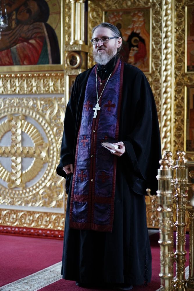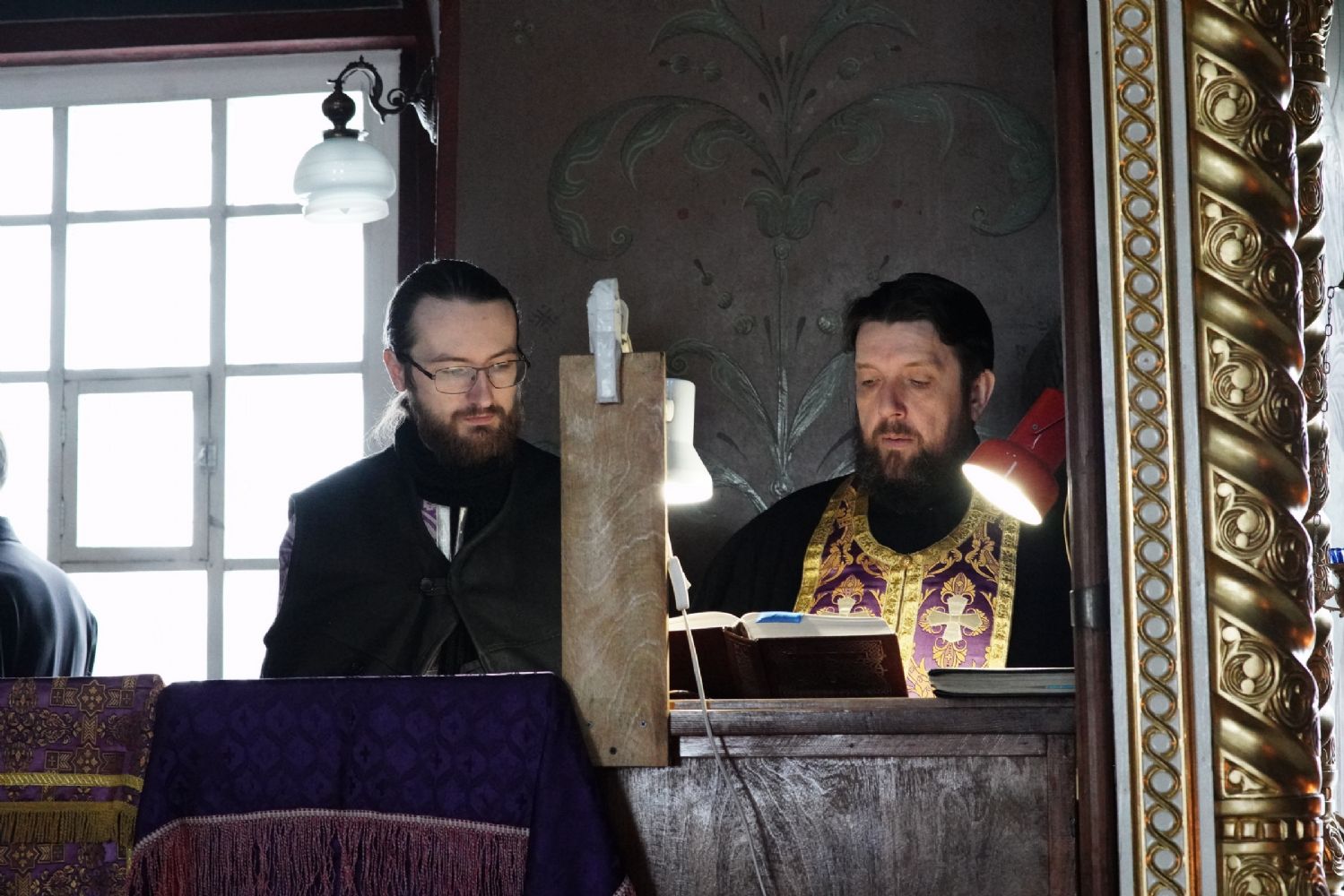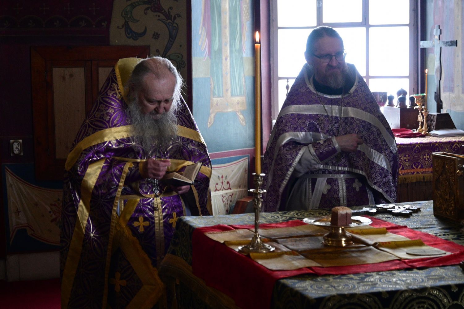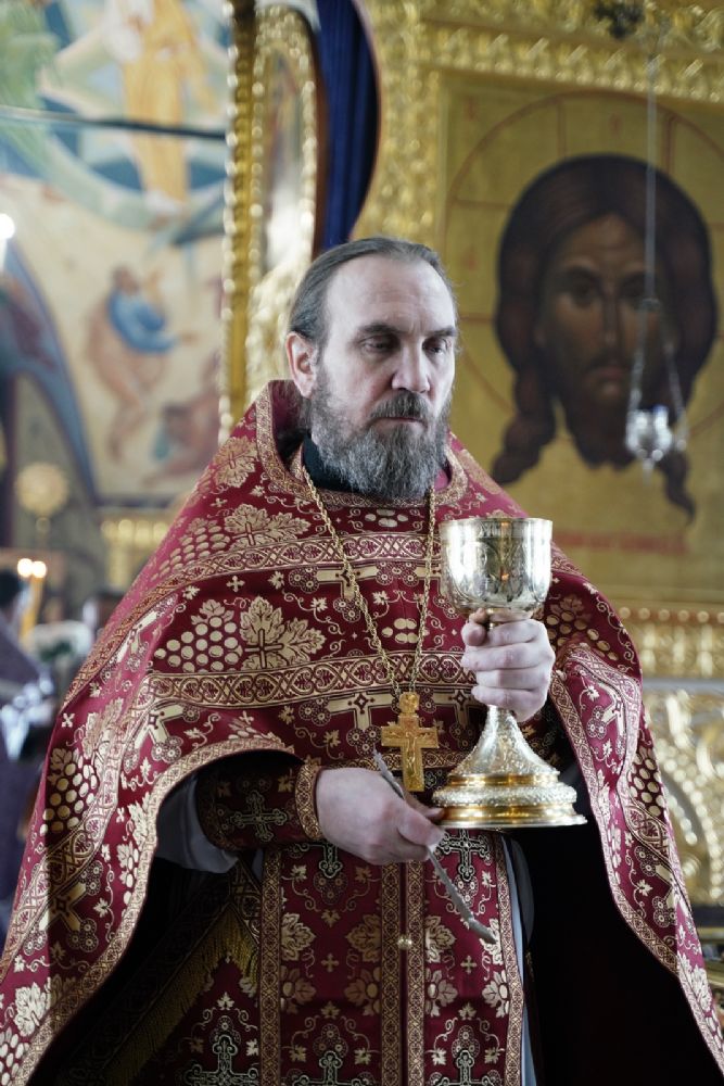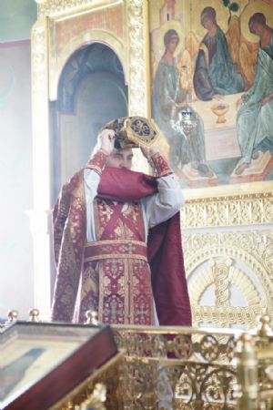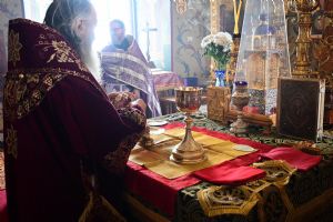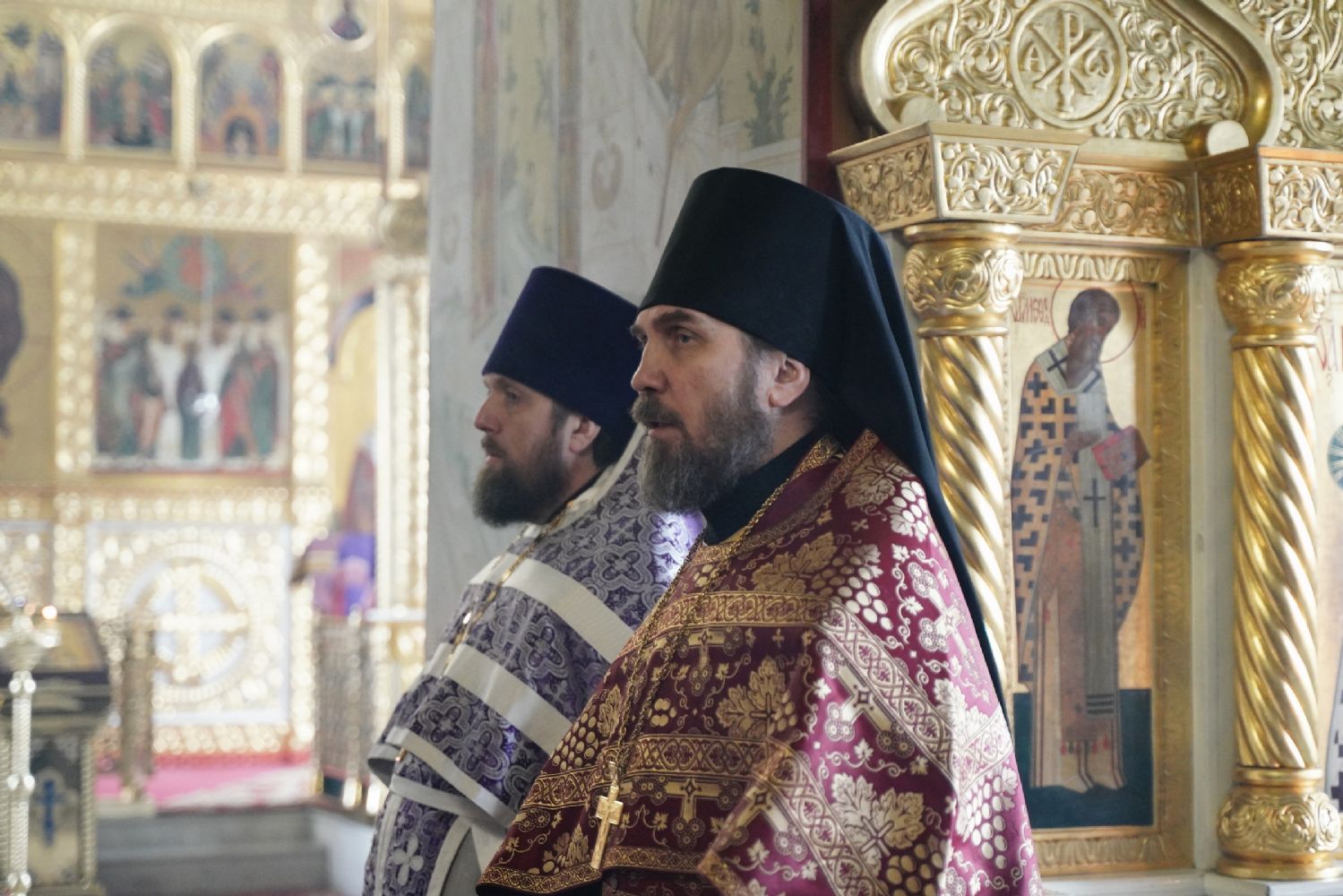 Его Высокопреосвященству сослужили секретарь Йошкар-Олинского епархиального управления иеромонах Серафим (Пасанаев), настоятель собора протоиерей Евгений Кутырев, благочинный Йошкар-Олинского церковного округа протоиерей Андрей Норкин, клирики собора иерей Александр Деревяшкин и протодиакон Александр Конокпаев, а также протодиакон Михаил Козловский. Песнопения исполнял хор собора под управлением Ангелины Бабиной.