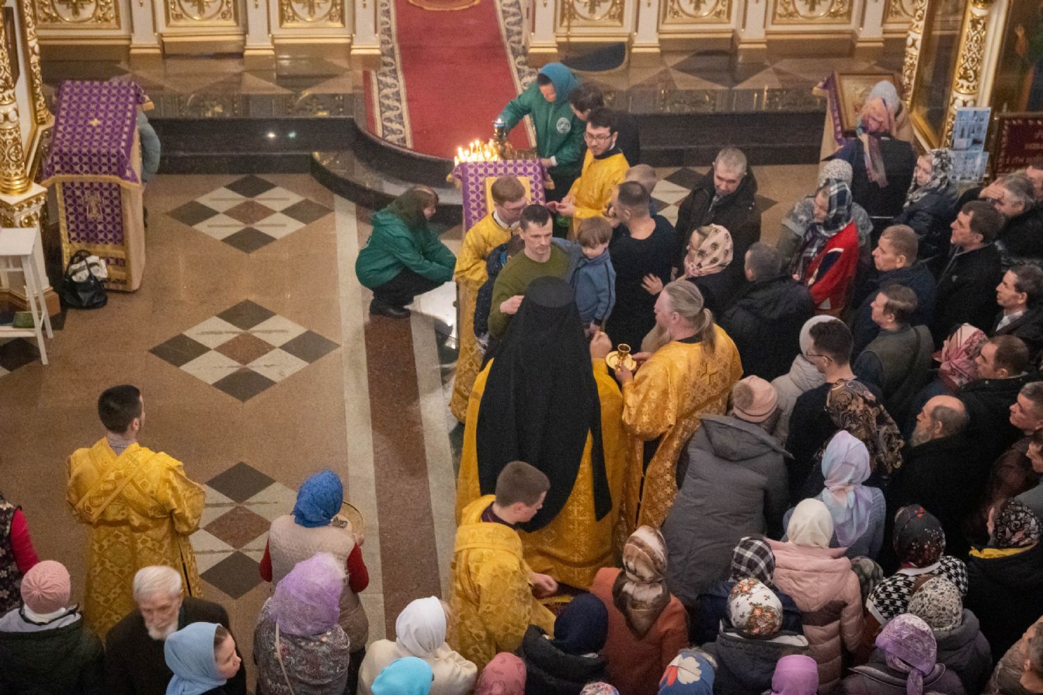 Владыке сослужили секретарь Йошкар-Олинского епархиального управления иеромонах Серафим (Пасанаев), клирики храма иереи Никита Смирнов, Димитрий Дьяков, Евгений Симаков и диакон Димитрий Карпетченко, а также протодиакон Михаил Козловский. Песнопения исполнял хор храма под управлением Наталии Поповой.