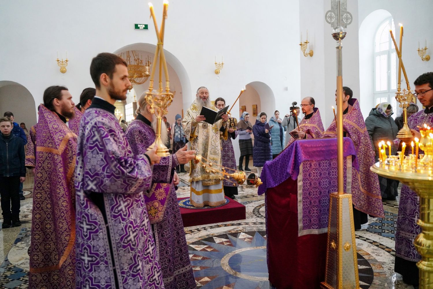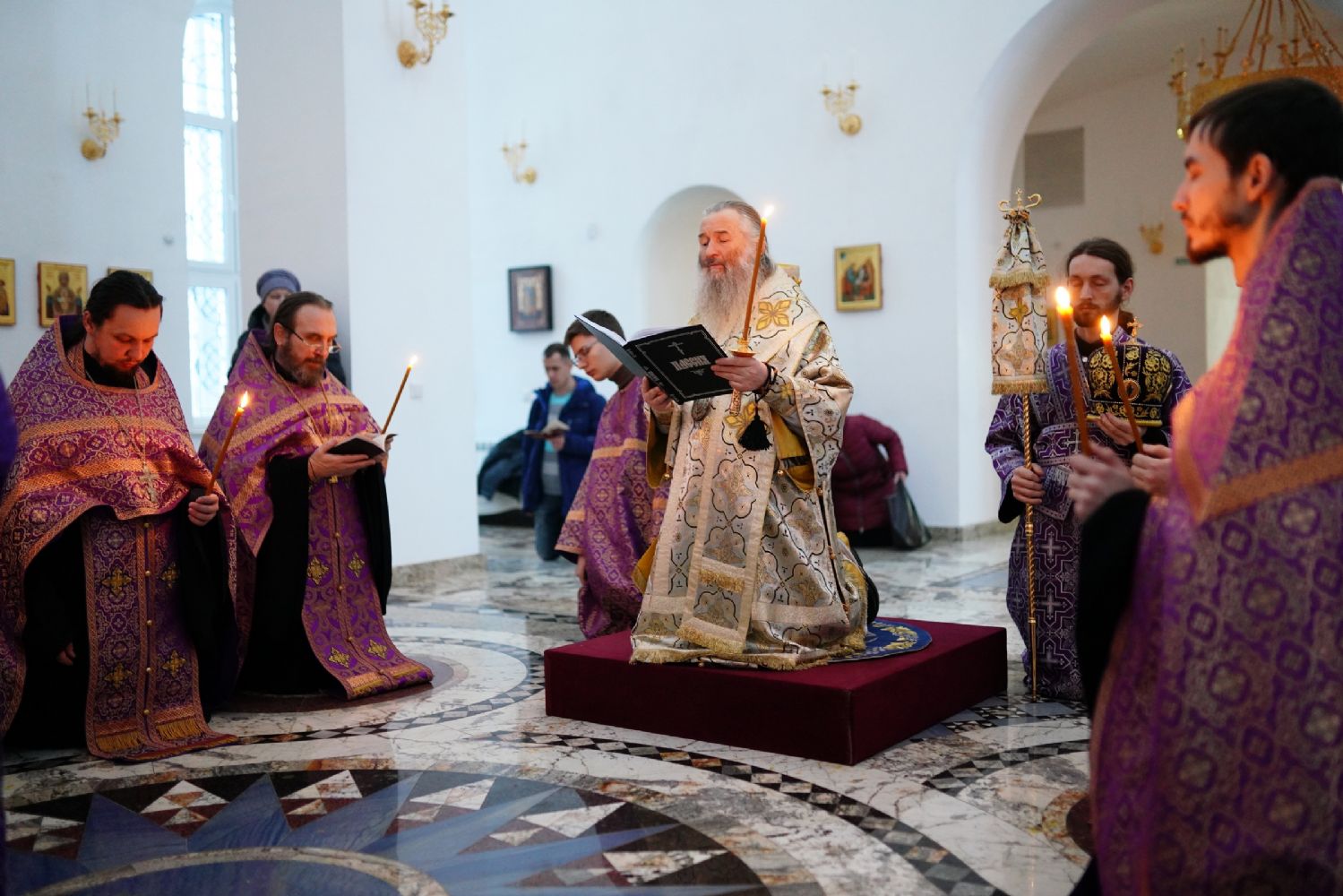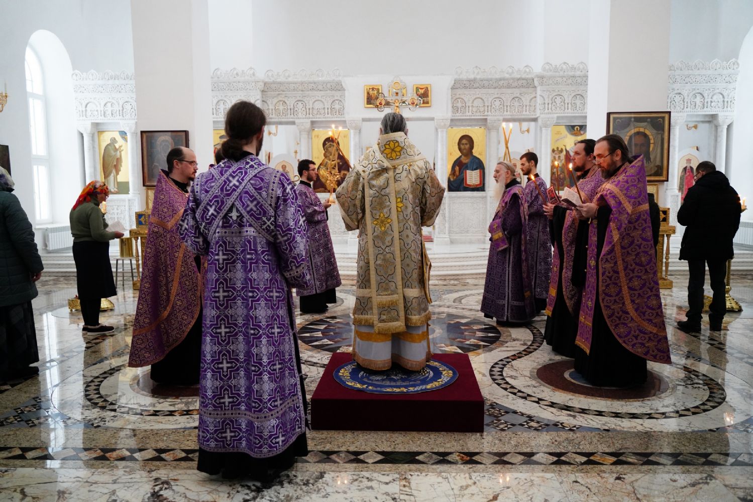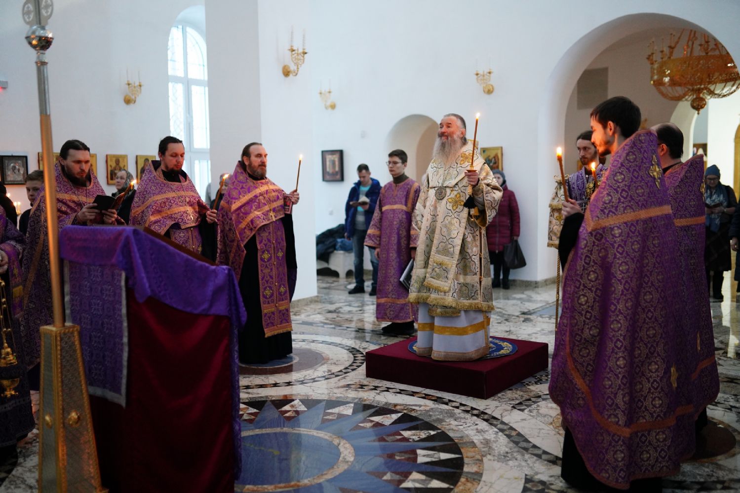 Архипастырю сослужили секретарь Йошкар-Олинского епархиального управления иеромонах Серафим (Пасанаев), настоятель храма иерей Алексий Михеев, клирики храма иереи Игорь Коваль, Сергий Пуртов, Димитрий Лукьянов, а также протодиакон Михаил Козловский. Песнопения исполнял хор храма под управлением регента Александры Ивановой.