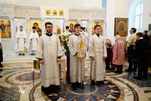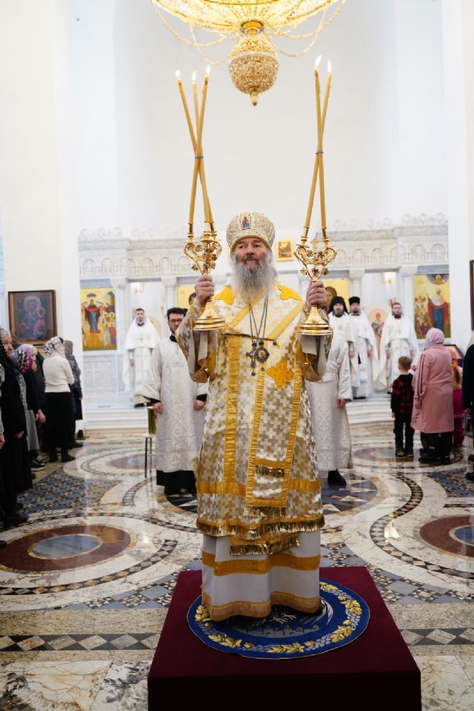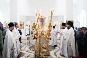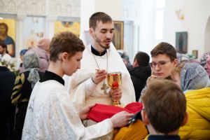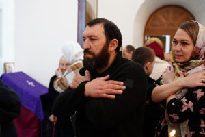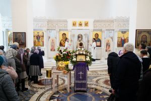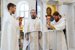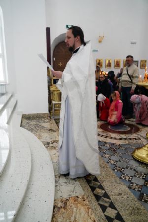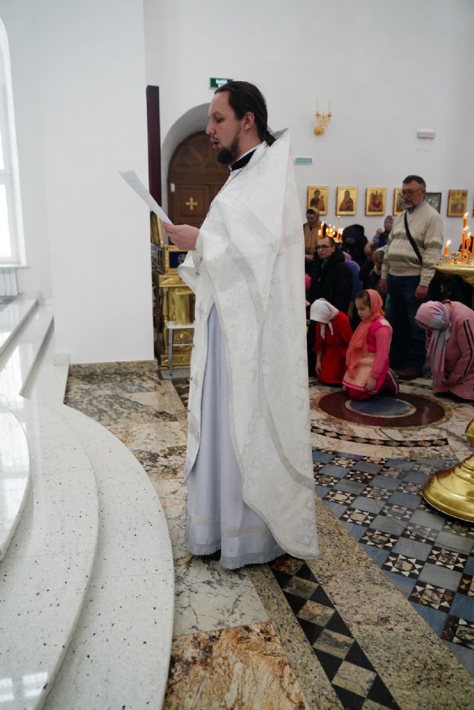 Литургию Преждеосвященных Даров возглавил митрополит Йошкар-Олинский и Марийский Иоанн. Владыке сослужили секретарь Йошкар-Олинского епархиального управления иеромонах Серафим (Пасанаев), настоятель храма иерей Алексий Михеев, клирики храма иереи Димитрий Лукьянов, Сергий Пуртов, Игорь Коваль, а также протодиакон Михаил Козловский и клирик Благовещенского кафедрального собора диакон Андрей Дружинин. Песнопения исполнял хор храма под управлением Александры Ивановой.