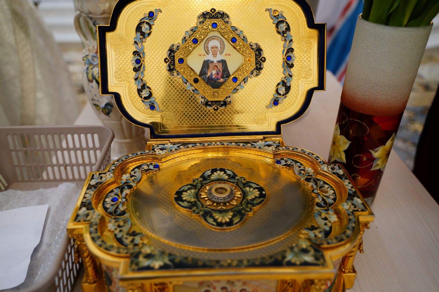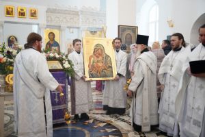 В этот день всех собравшихся на богослужение ожидала большая радость – Скорбященскому храму в благословение со Святой Горы Афон была передана копия чудотворной иконы Божией Матери «Достойно есть», находящейся в одноименном храме в столице Афона – Карее.
