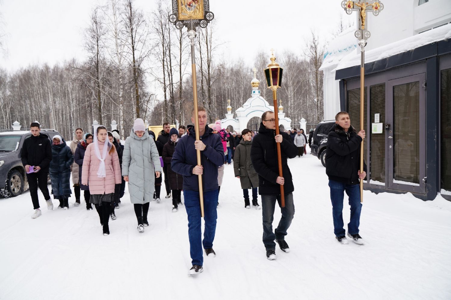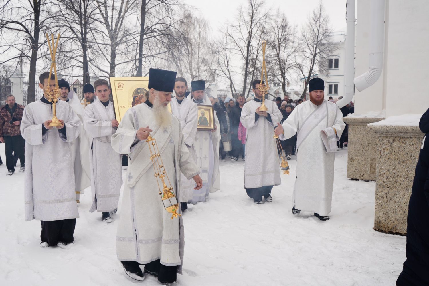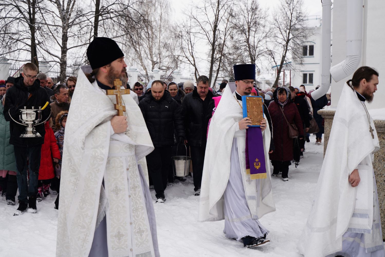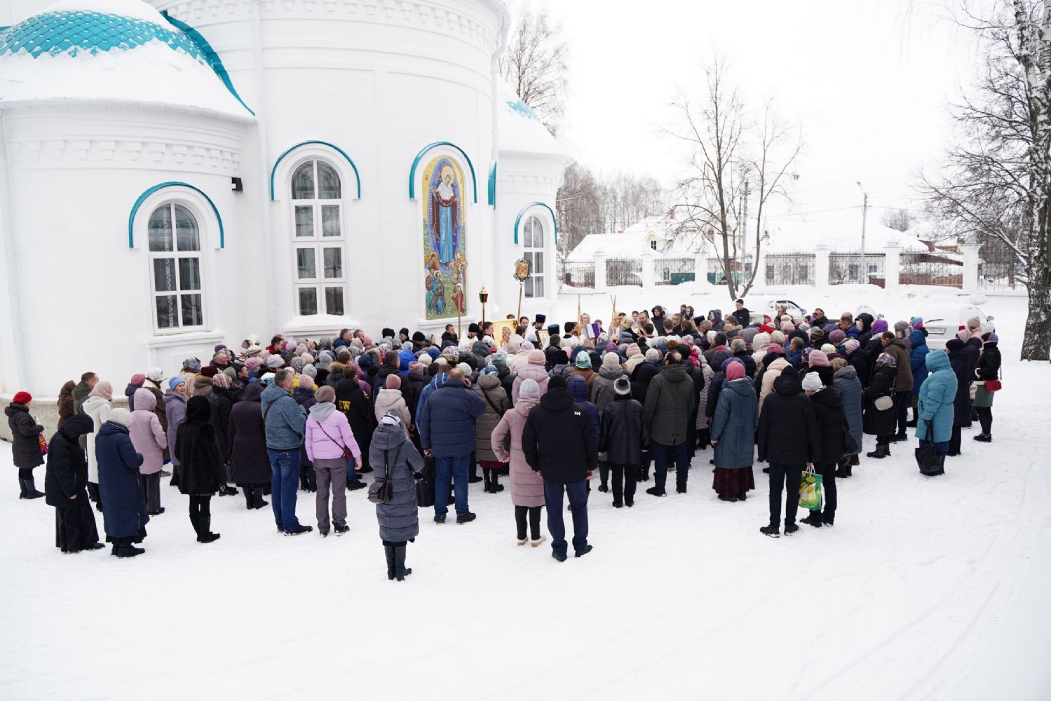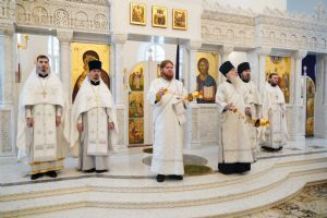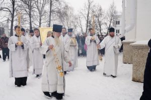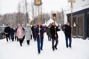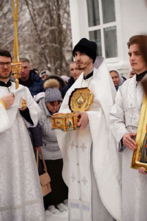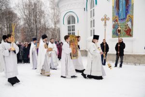 После Литургии, по традиции престольных праздников, прошел крестный ход вокруг храма со чтением Евангелия и кроплением святой водой.