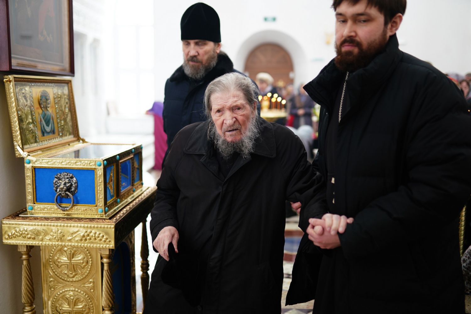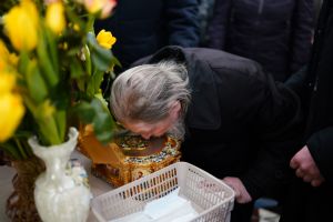И мы с вами сегодня прикладываемся к святым мощам, изливая все те скорби, которыми Господь нас посещает. Главное при этом не забывать, ради чего живем мы здесь на земле – чтобы навеки быть с Богом. Ведь если мы не хотим добровольно идти к Нему, нести безропотно свой жизненный крест, то нас посещает скорбь и болезнь. Псалмопевец Давид сказал: «Скорбь и болезнь обретох и имя Господня призвах». И старец Симеон Псково-Печерский говорит, что скорбь и болезнь это две наши подружки, которые берут нас под руки и ведут в Царство Божие. А мы с вами все ропщем, не понимая, что через этих двух наших друзей мы с вами учимся искренне и чисто молиться, когда не от ума наша молитва исходит, а из глубины нашего сердца. Потому что наше самолюбие укрощается через болезни и скорби, и мы начинаем понимать, что без Бога мы ничто – и только тогда-то и молитва исходит из глубины нашей с вами души».