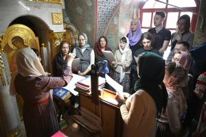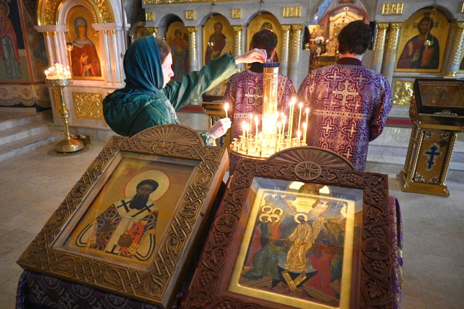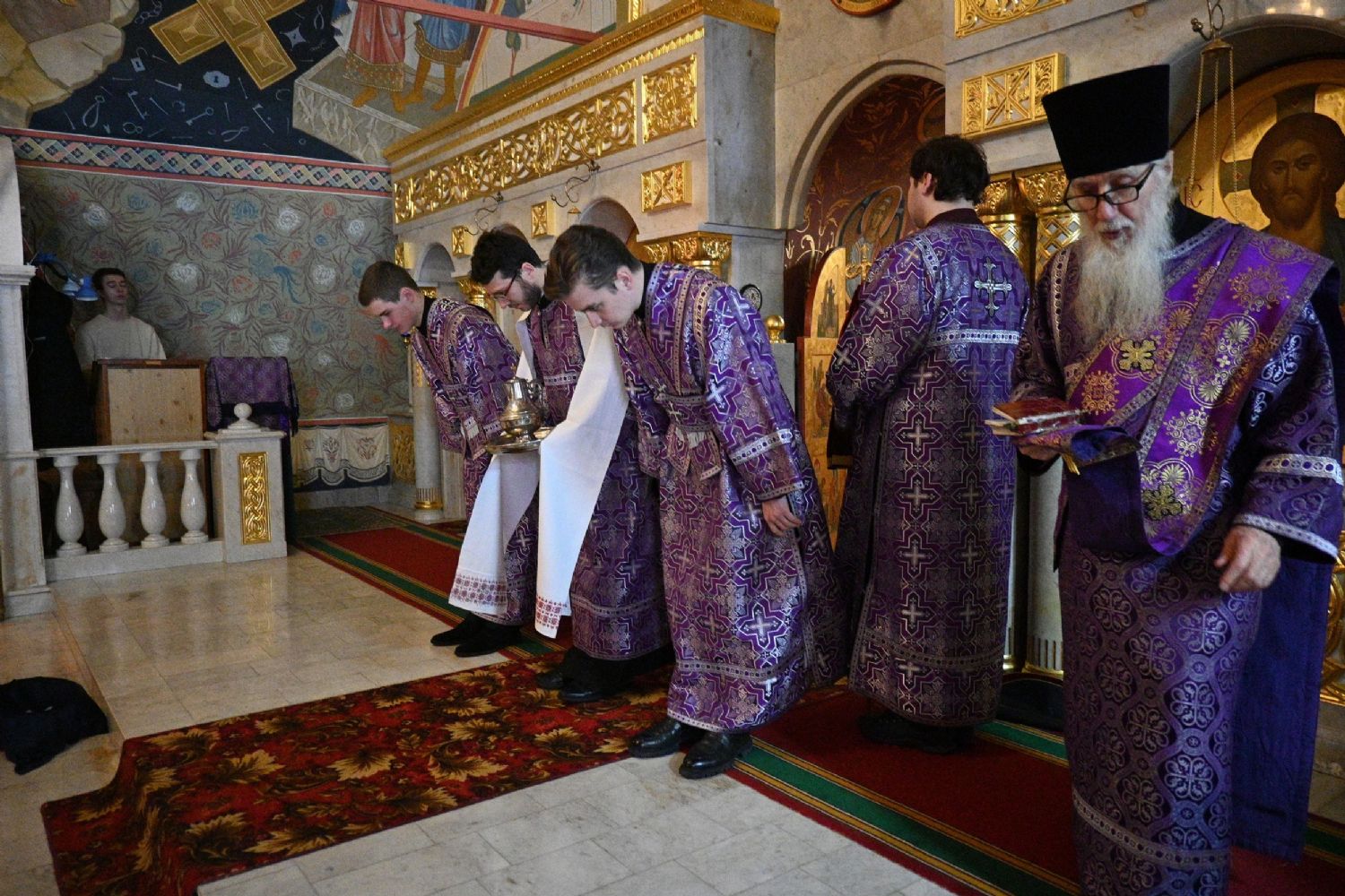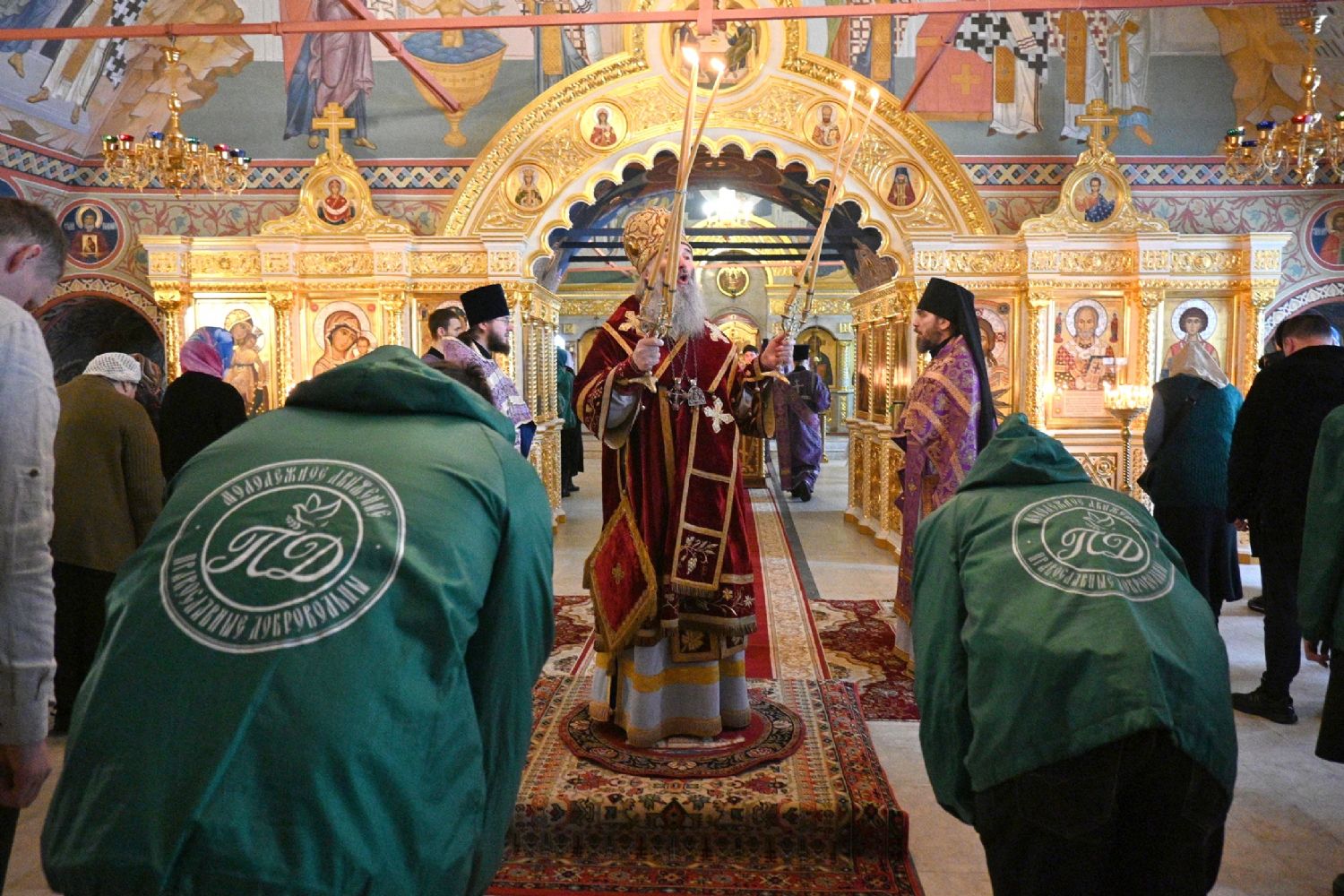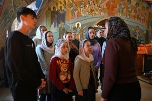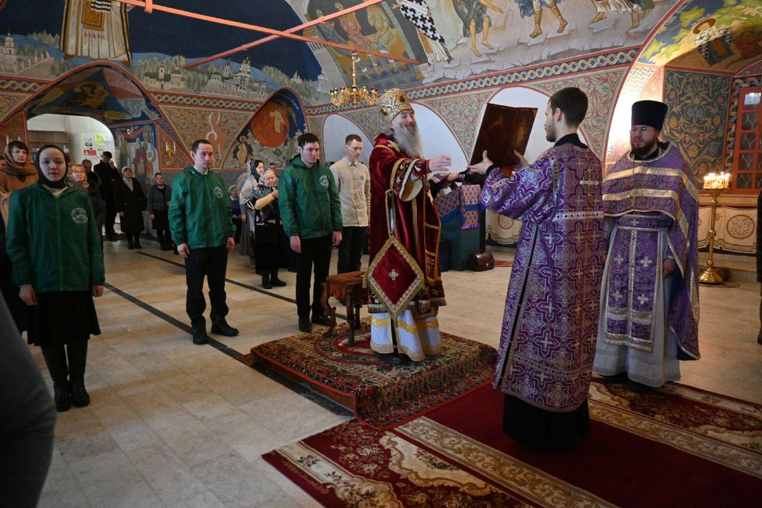 Владыке сослужили секретарь Йошкар-Олинского епархиального управления иеромонах Серафим (Пасанаев), клирик Вознесенского собора иерей Димитрий Копылов и протодиакон Михаил Козловский. Песнопения исполнял хор храма под управлением Анны Ярошевич, а также детский хор воспитанников воскресной школы храма.