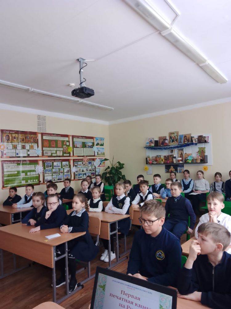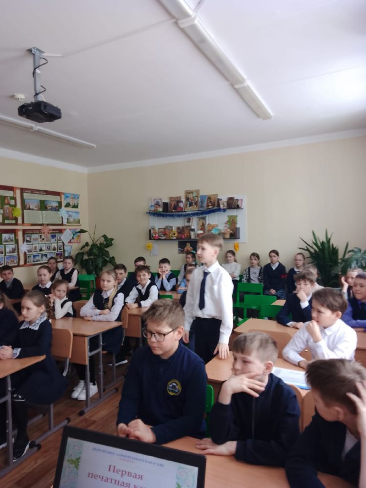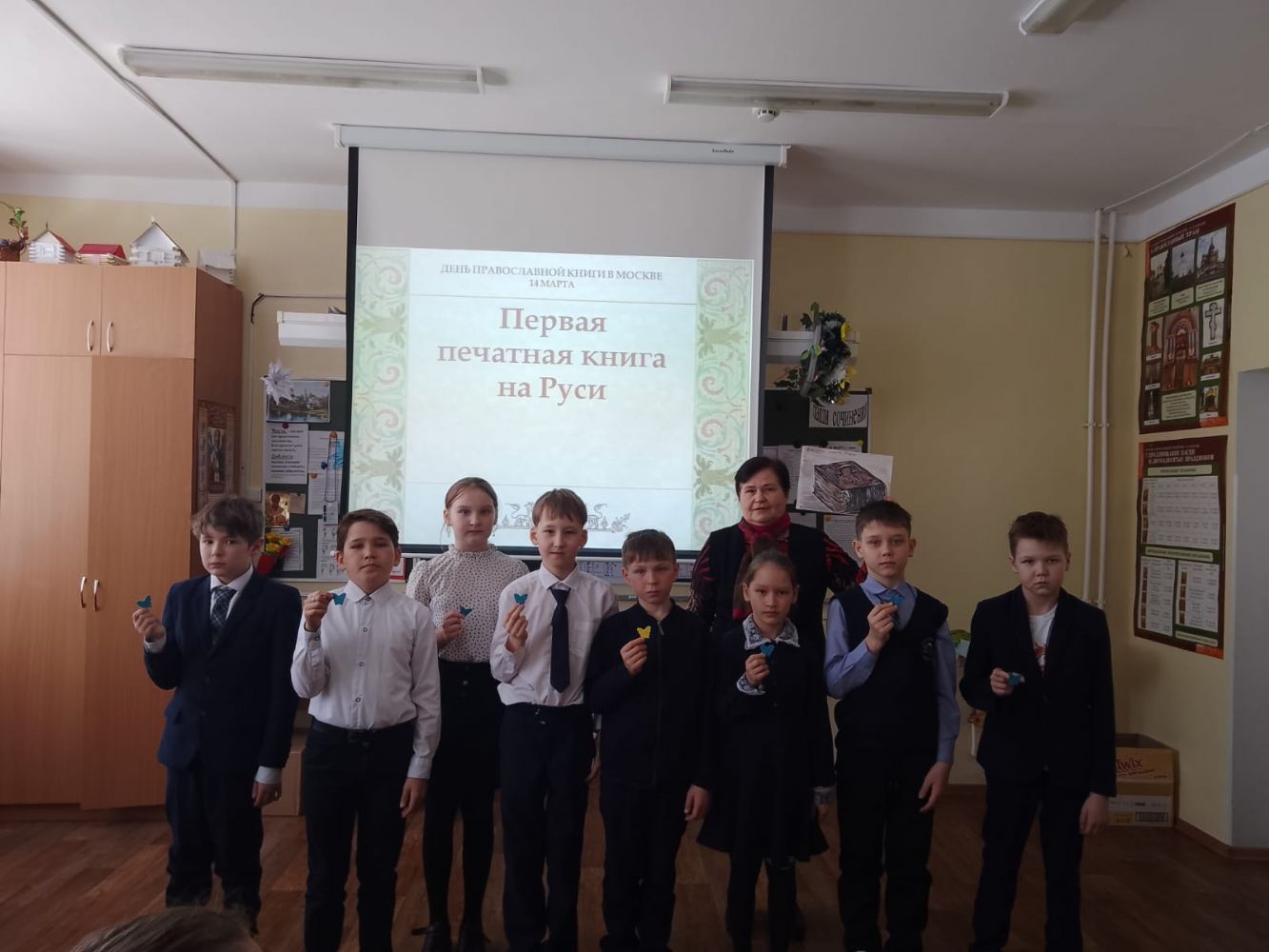 В кабинете духовно-нравственного воспитания «Содружество» собрались ученики 3, 4 и 5 классов. Воспитанники православного кружка «Истоки» подготовили для них презентацию по теме «Первая печатная книга». Много интересного узнали наши школьники и успешно ответили на вопросы о первой печатной книге «Апостол», изданной на Руси диаконом Иваном Федоровым.
