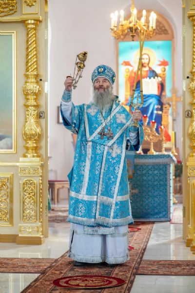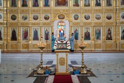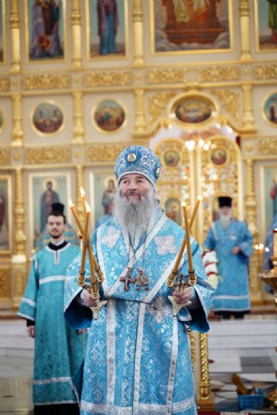 «Всех вас, дорогие отцы, братья и сестры, поздравляю с престольным праздником Святой Руси. Воистину Пречистая Богоматерь избрала себе в жилище Святую Русь с момента крещения нашего народа. Любовью Своею Она веру Христову утверждала в наших пределах, и заботы Ее о детях Своих ни на одно мгновение не прекращались. Сколько дивных образов Пречистой Богоматери по всей Руси видимым образом явили милость Царицы Небесной, особенно в дни смут, безумных смущений и диавольского покушения на державу нашу. А в 20-м веке, когда Святая Русь лишилась царя, когда люди обезумели, пребывая в грехах, когда отец восстал на сына, чада на родителей, когда кровь полилась рекой, тогда Сама Пречистая Богоматерь взяла власть в Свои руки и в день отречения царя явила Свой благодатный образ, именуемый «Державная». Посмотрите, какова любовь к нам Божией Матери – Ее обезумевшие дети творят беззаконие, от Сына Ее Сладчайшего отрекаются, а Она молится у Престола Божия и просит, чтобы Господь коснулся сердец человеческих благодатью Своею и через покаяние вернул всех их под покров Пречистой Богоматери.