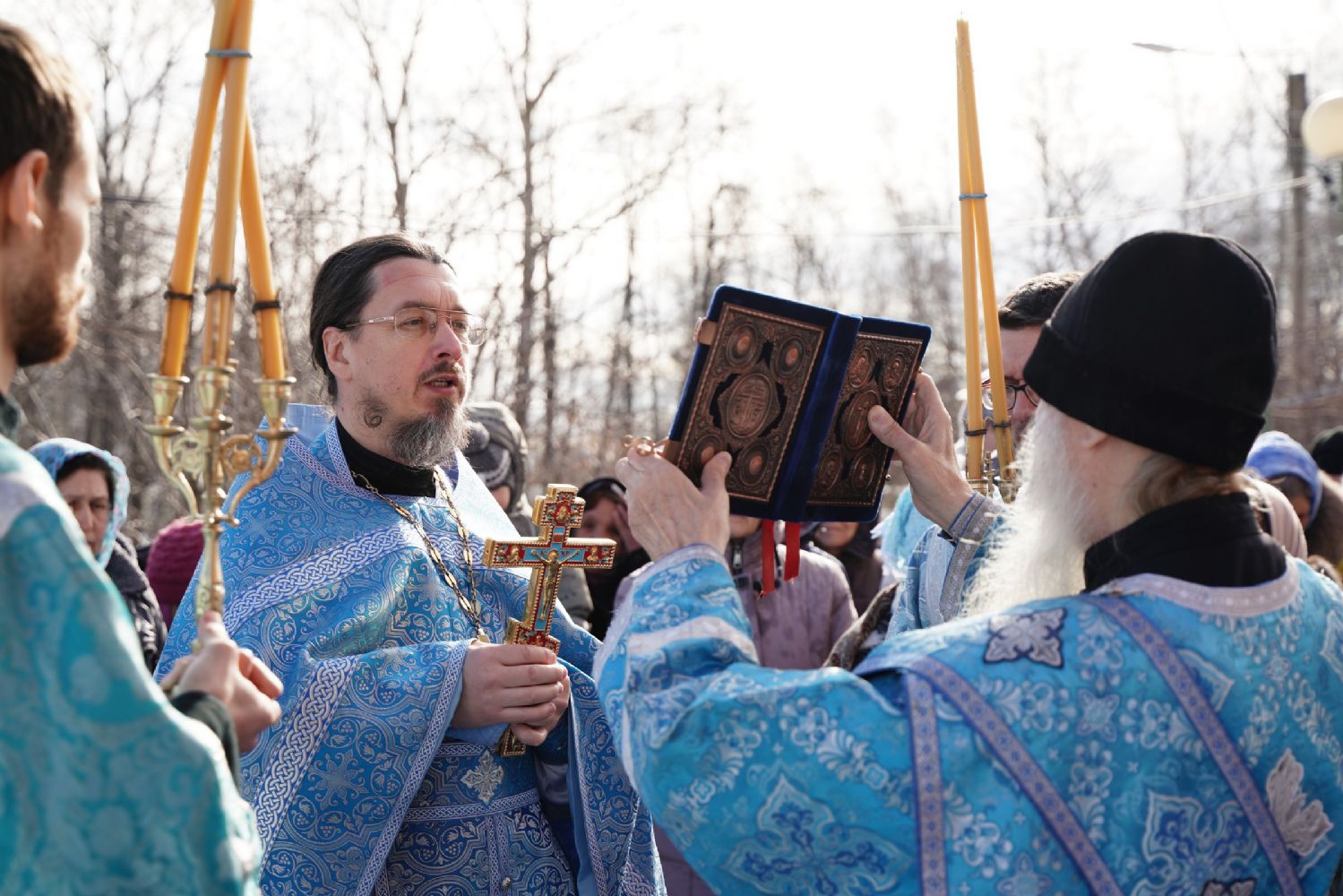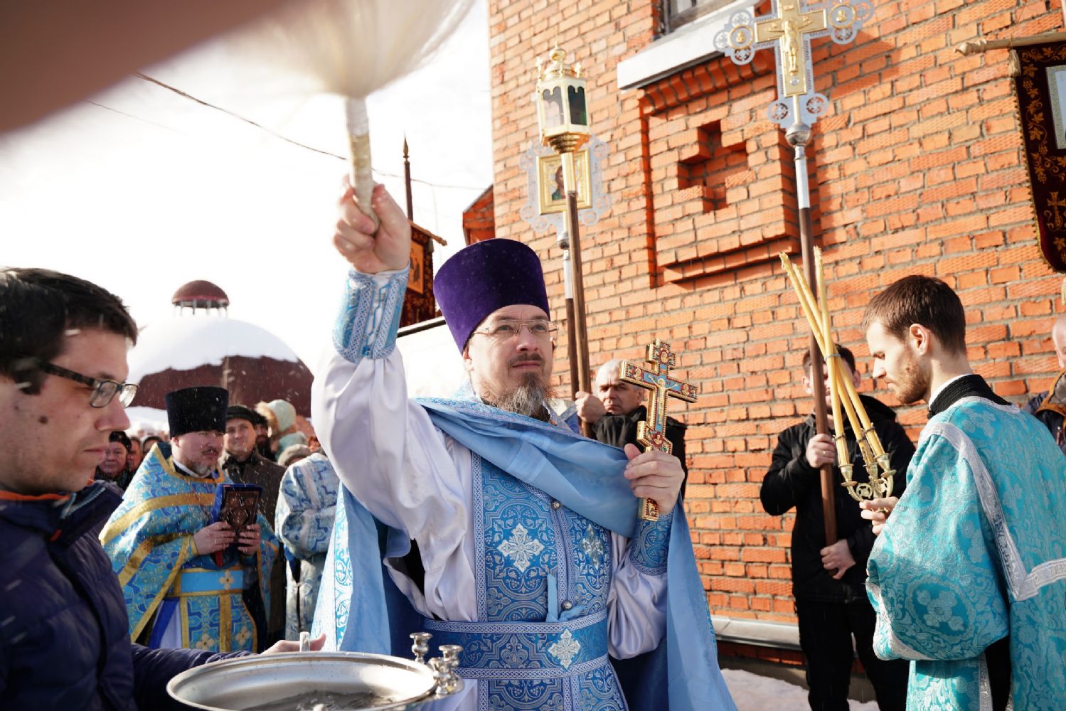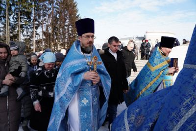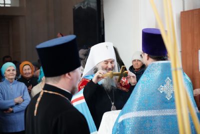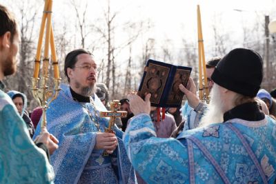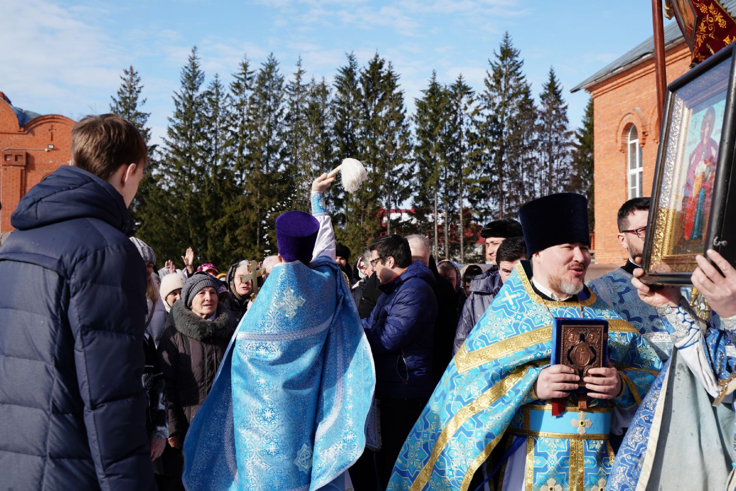 После богослужения прошел крестный ход вокруг храма со чтением Евангелия и кроплением святой водой. Затем митрополит Иоанн обратился к собравшимся с архипастырским словом.