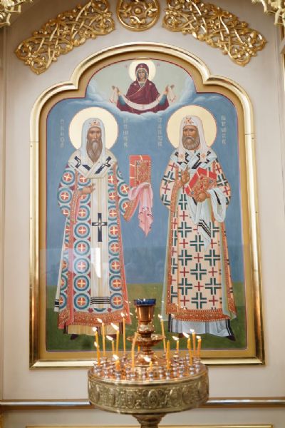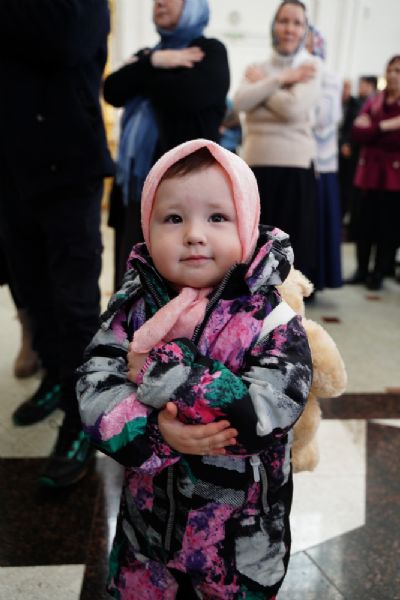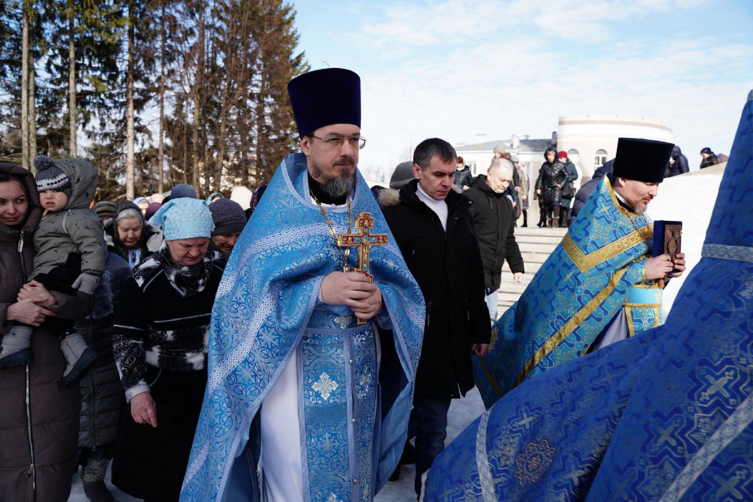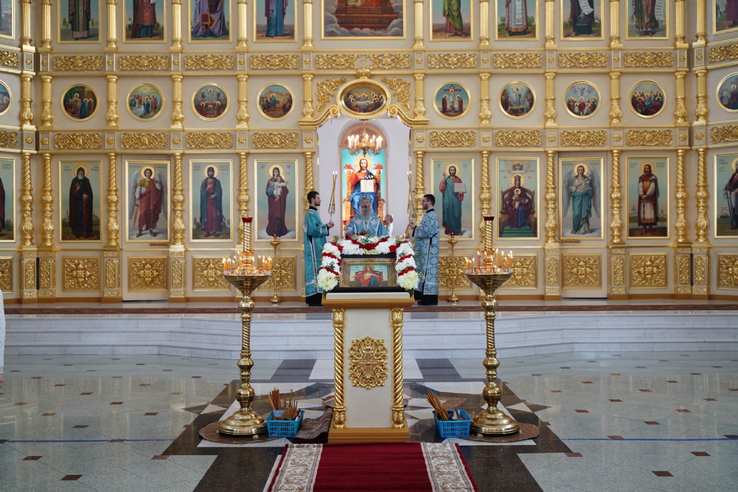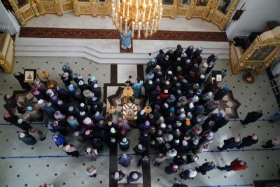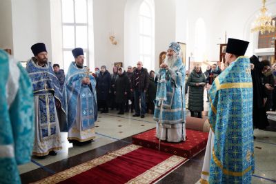 После богослужения прошел крестный ход вокруг храма со чтением Евангелия и кроплением святой водой. Затем митрополит Иоанн обратился к собравшимся с архипастырским словом.