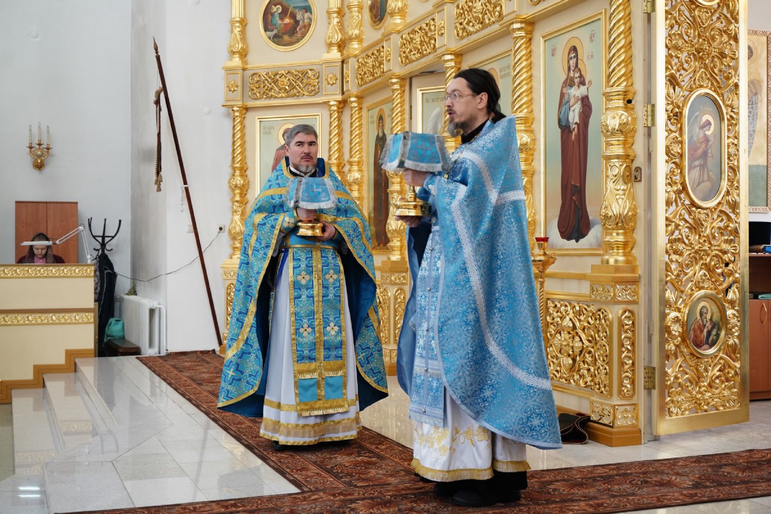 Литургию Преждеосвященных Даров в этот день здесь возглавил митрополит Йошкар-Олинский и Марийский Иоанн. Владыке сослужили настоятель храма протоиерей Алексий Михайлов, благочинный Медведевского церковного округа иерей Александр Козлов, настоятель Покровского храма с. Марисола протоиерей Сергий Сильдушкин, протодиакон Михаил Козловский и клирик храма п. Медведево диакон Игорь Кочуев. Песнопения исполнял хор храма под управлением регента Виктории Сивер.