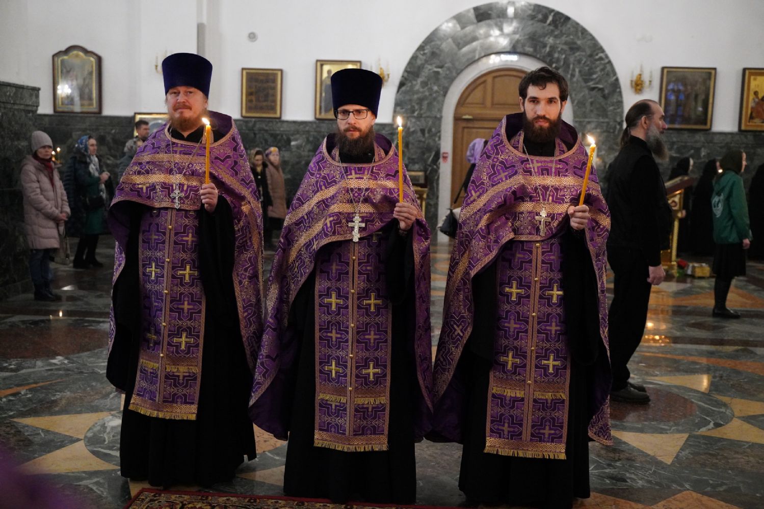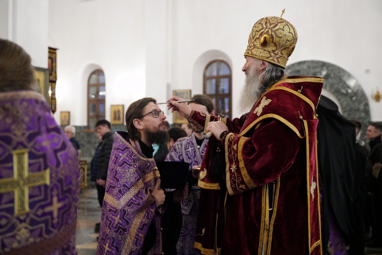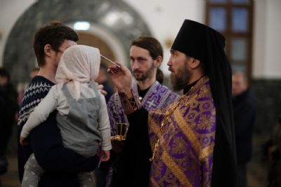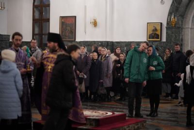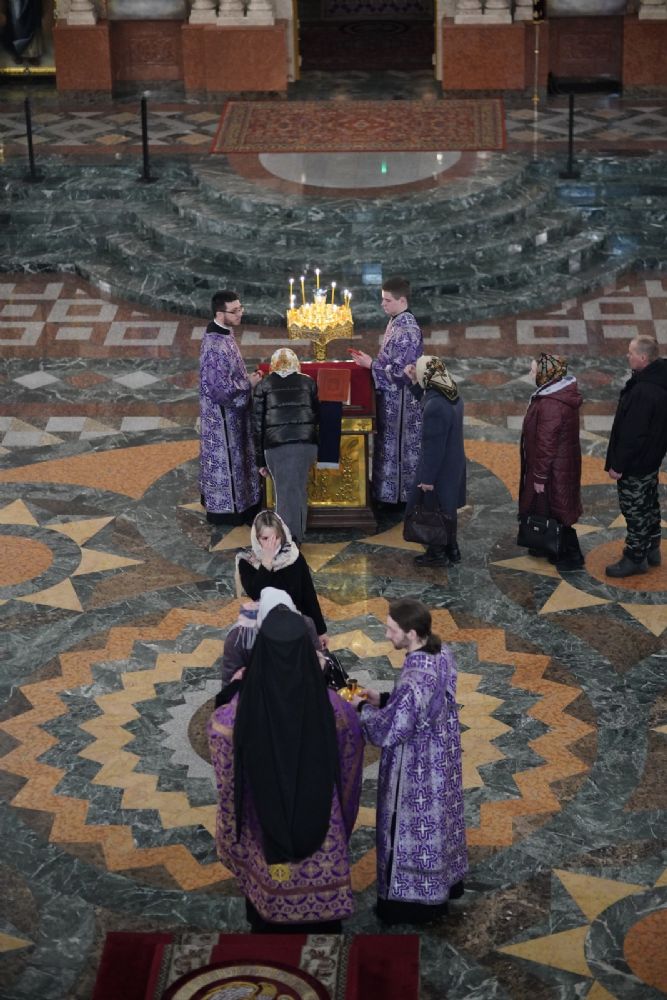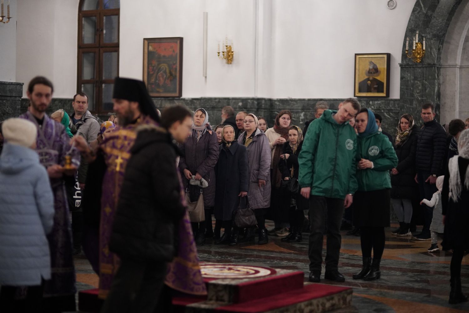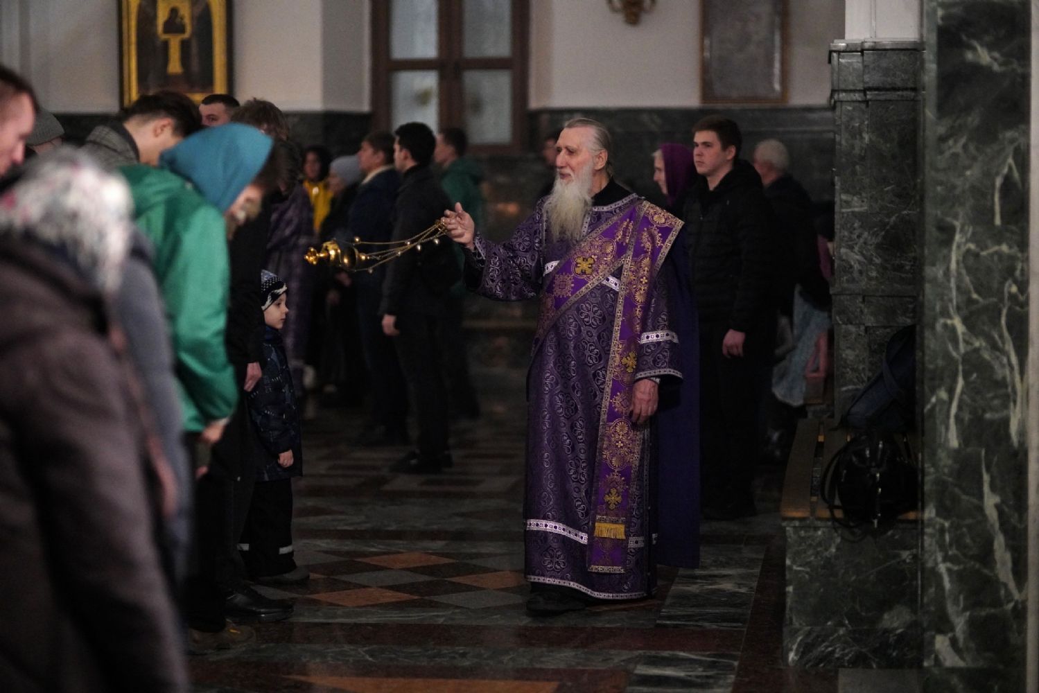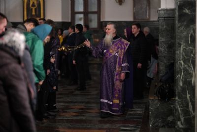 На утрене звучали стихиры и канон преподобного Иоанна Лествичника, память которого Церковь празднует в четвертую Неделю Великого поста. После чтения Евангелия верующие помазывались освященным елеем.