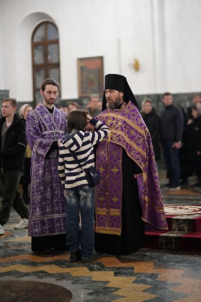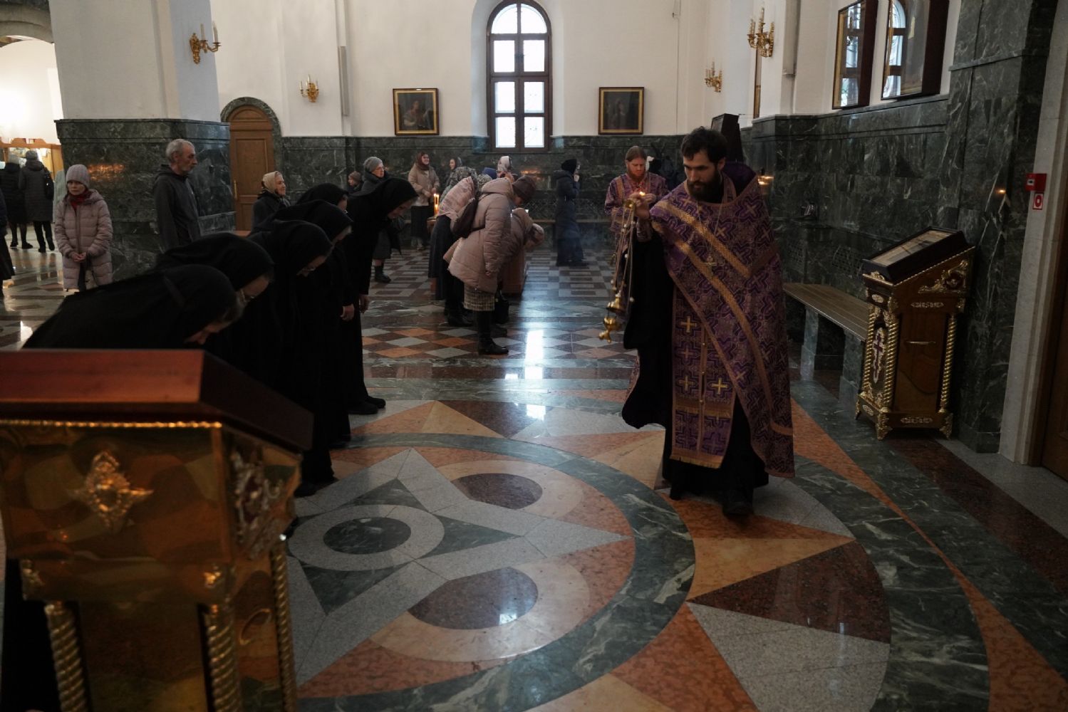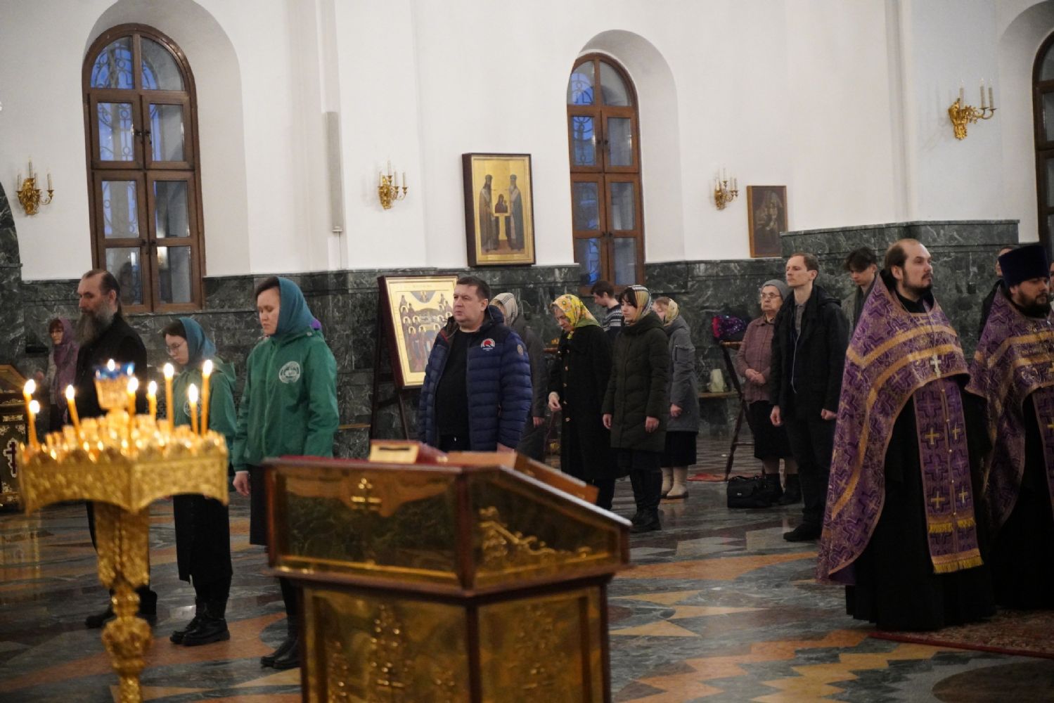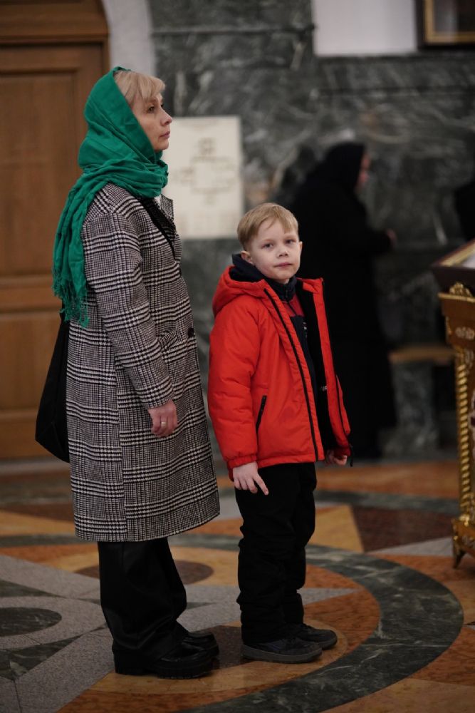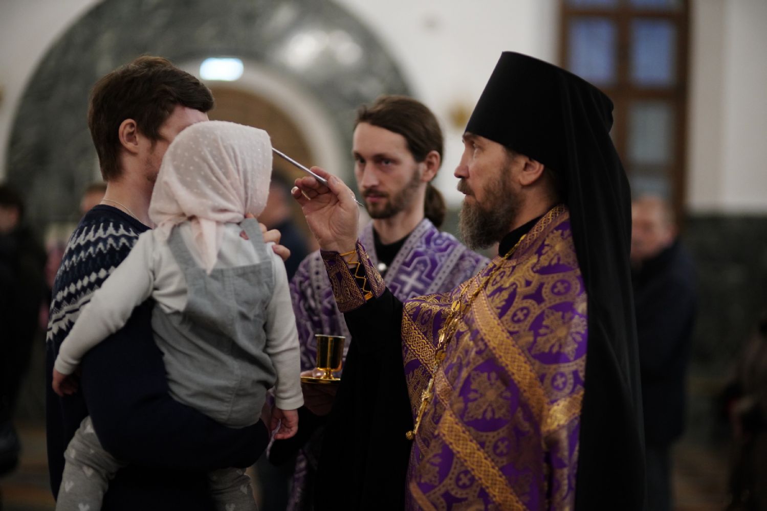На утрене звучали стихиры и канон преподобного Иоанна Лествичника, память которого Церковь празднует в четвертую Неделю Великого поста. После чтения Евангелия верующие помазывались освященным елеем.