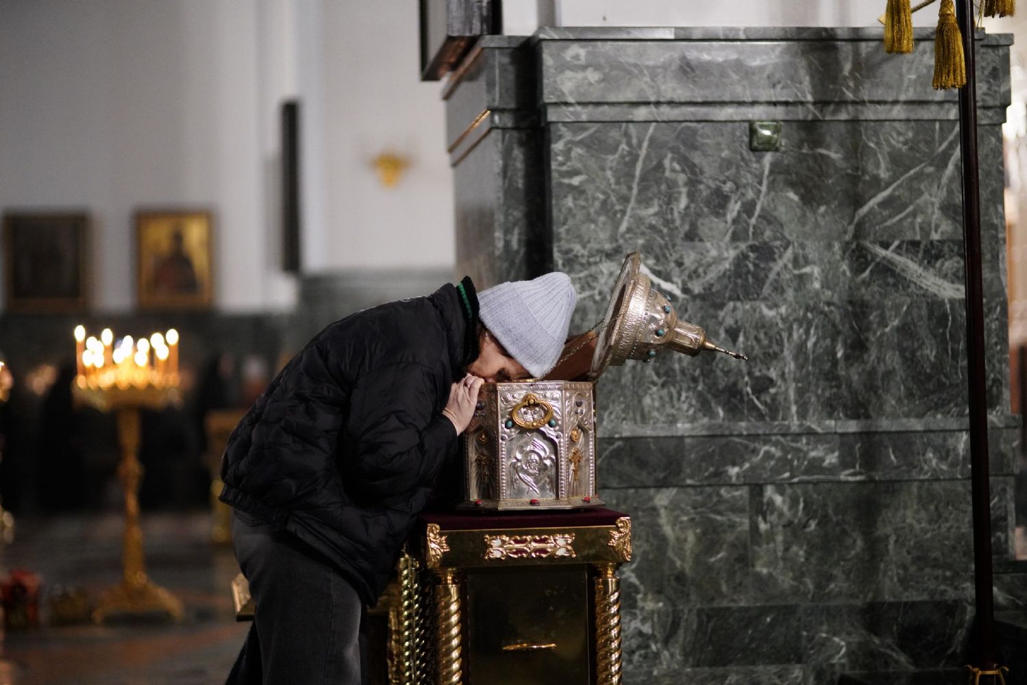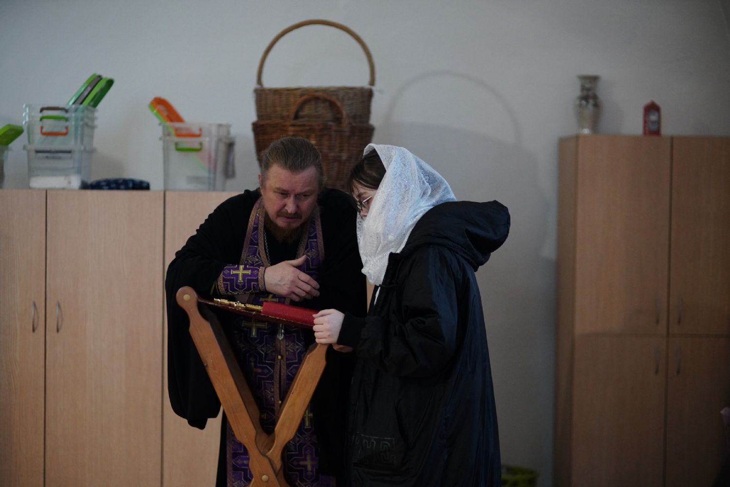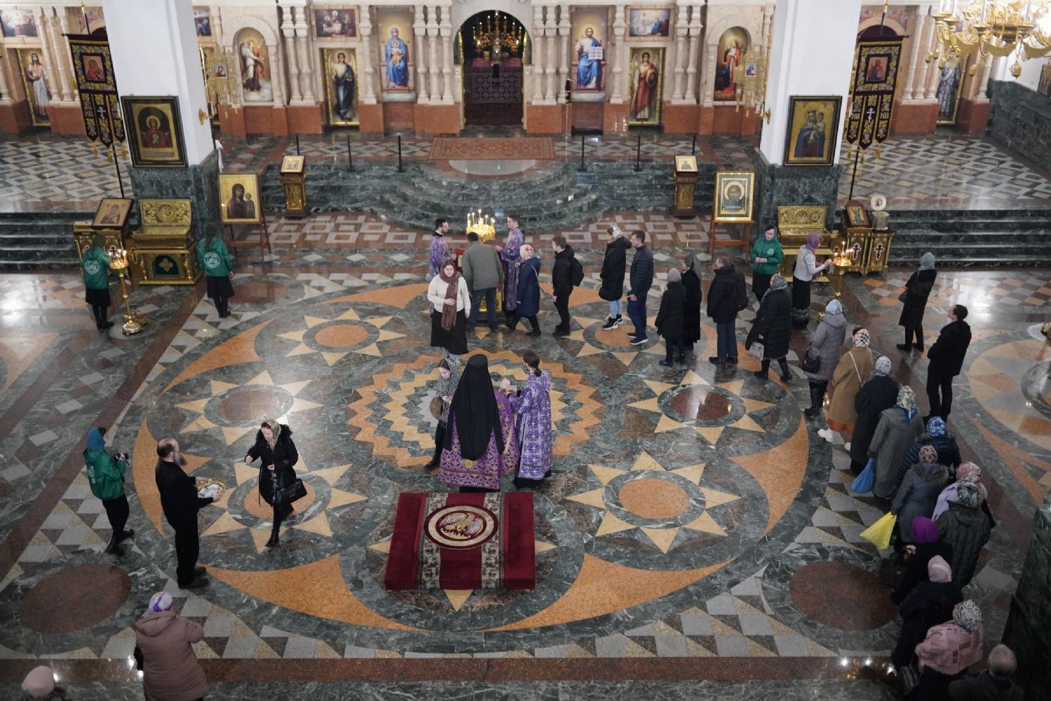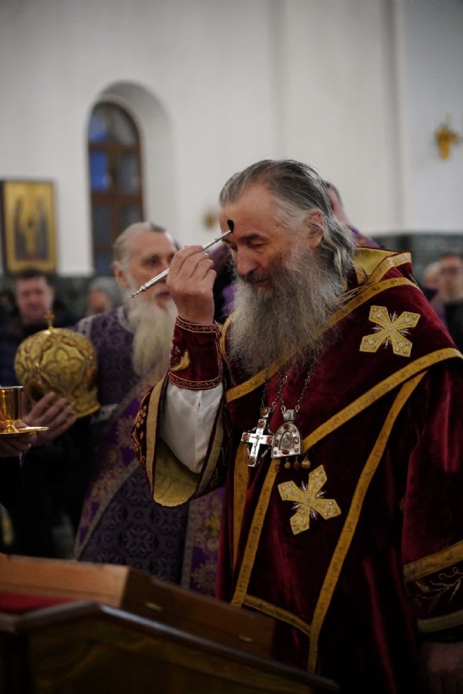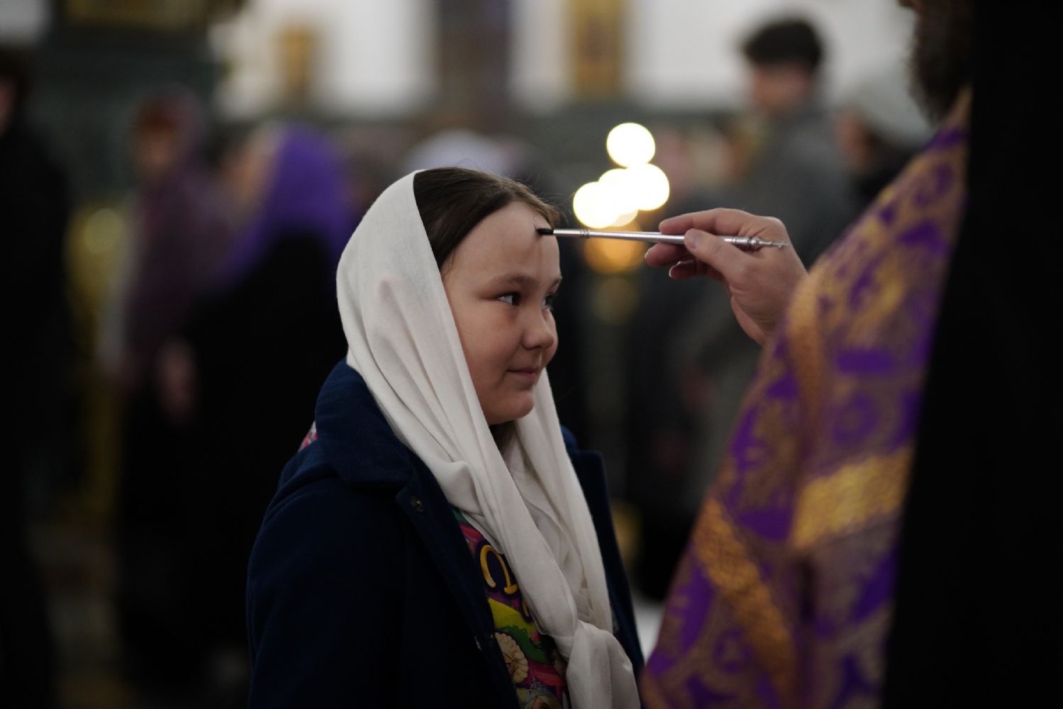 На утрене звучали стихиры и канон преподобного Иоанна Лествичника, память которого Церковь празднует в четвертую Неделю Великого поста. После чтения Евангелия верующие помазывались освященным елеем.