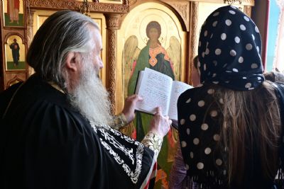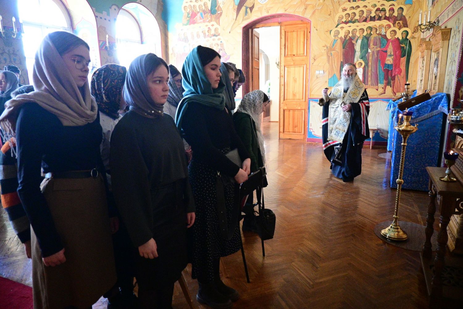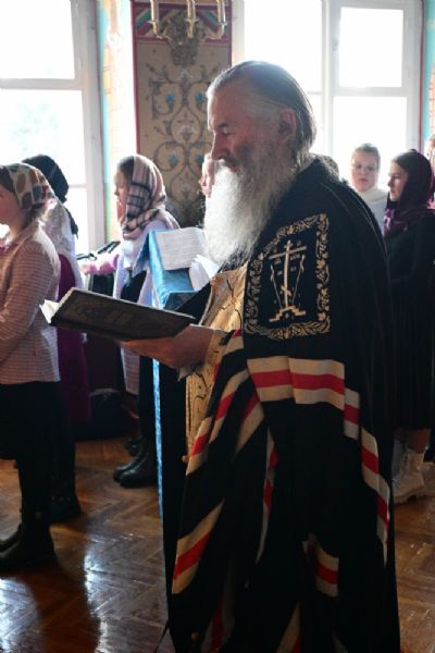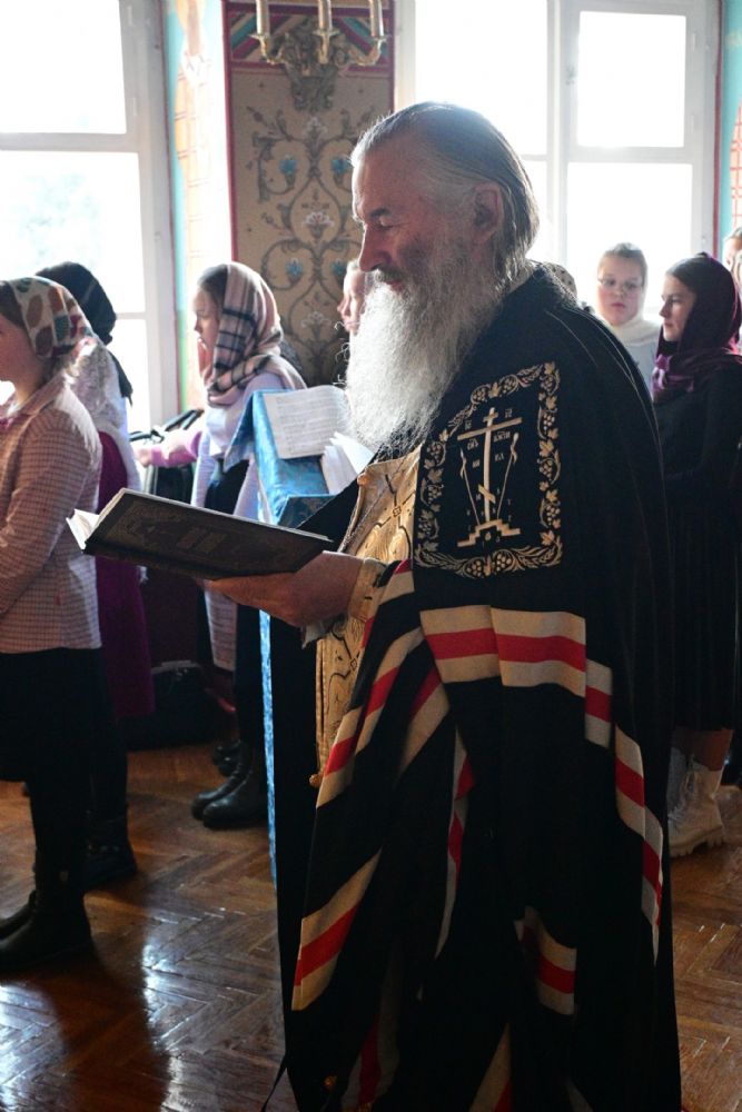 Владыке сослужил клирик храма Рождества Пресвятой Богородицы с. Семеновка протодиакон Михаил Козловский. Песнопения исполнял антифонно детско-юношеский хор «Благовест» под руководством младших регентов Софии Андреевой и Александры Самойловой.