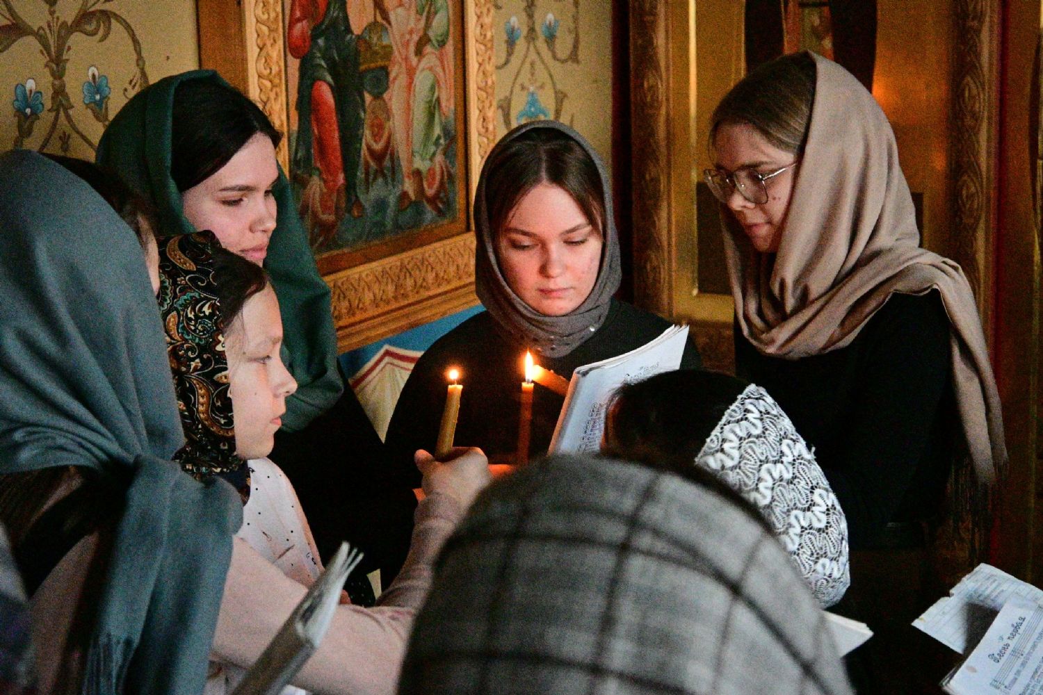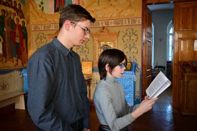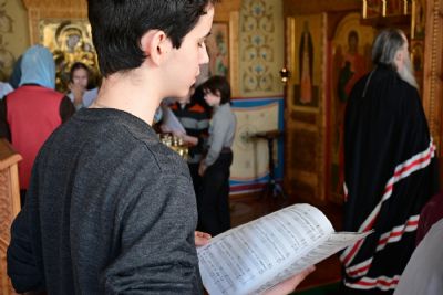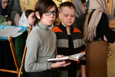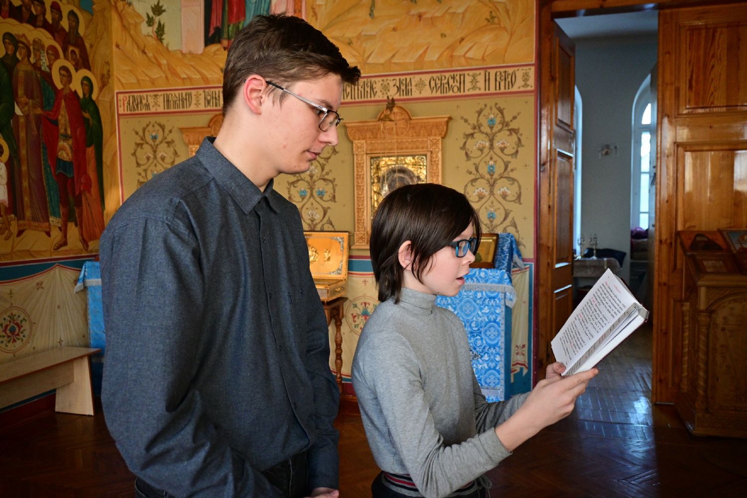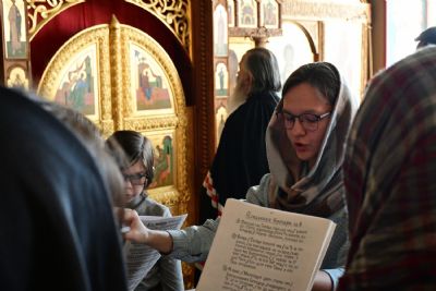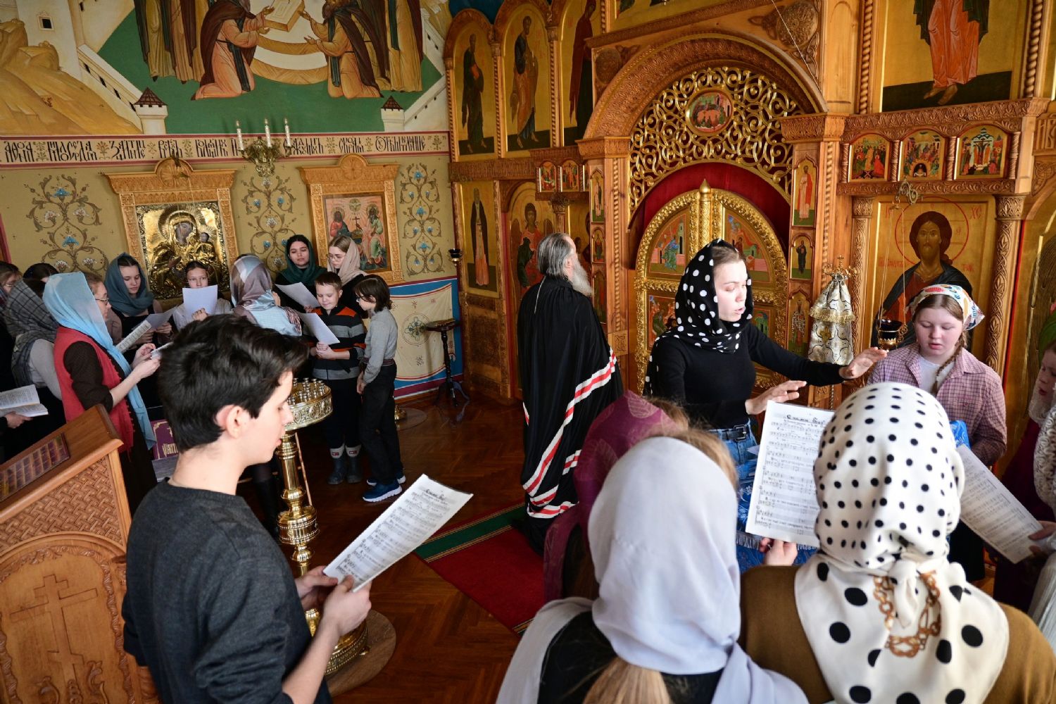 Все чтения и песнопения великого повечерия и утрени исполняли певчие детско-юношеского хора. Специально для лучшего освоения ими порядка и особенностей богослужения митрополит Иоанн традиционно проводит в домовом храме такие богослужебные практики, которые приносят певчим большую пользу.