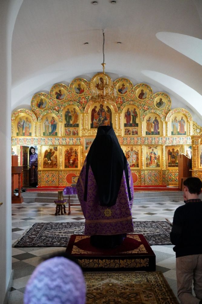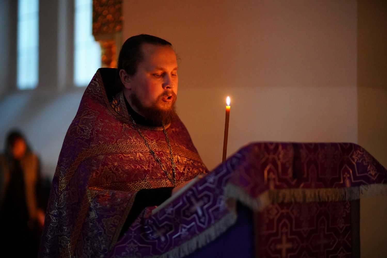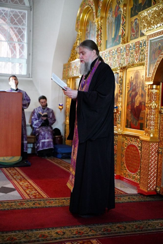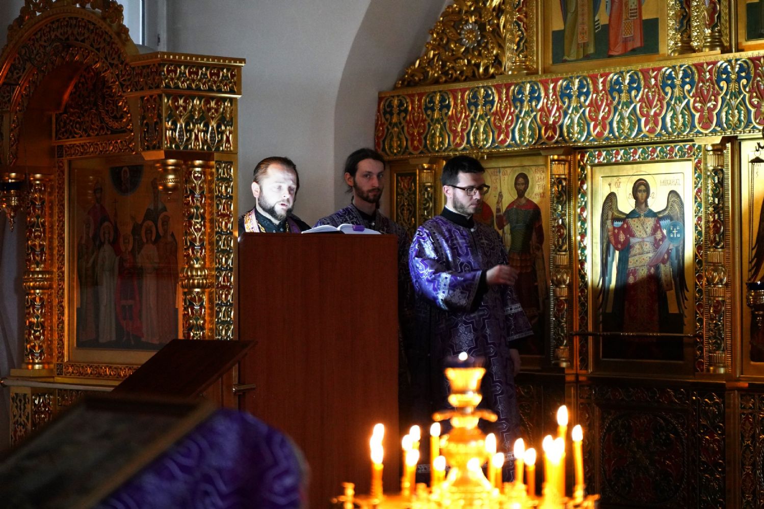 Чтение Великого канона в центре храма начал митрополит Иоанн - он прочитал первые две песни канона Далее чтение продолжили иеромонах Серафим (Пасанаев), протоиерей Александр Бачурин, протоиерей Василий Лихачев, иереи Константин Домрачев, Виктор Умрихин и Николай Бабич.