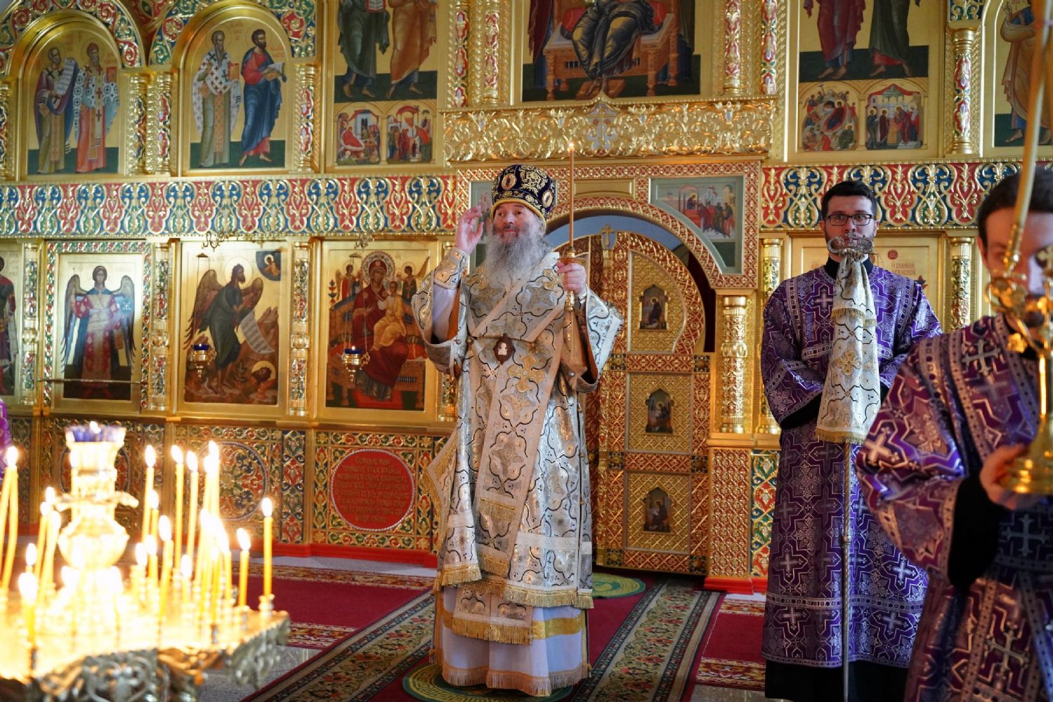 Его Высокопреосвященству сослужили секретарь Йошкар-Олинского епархиального управления иеромонах Серафим (Пасанаев), настоятель храма протоиерей Александр Бачурин, клирики храма и протодиакон Михаил Козловский. Песнопения исполнял хор храма под управлением регента Ирины Айгловой.