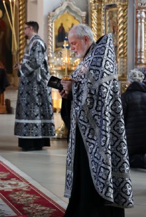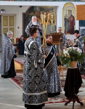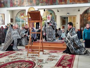 Архипастырю сослужили клирики собора иереи Иоанн Лапшинский и Александр Усков и диакон Иоанн Захаров.