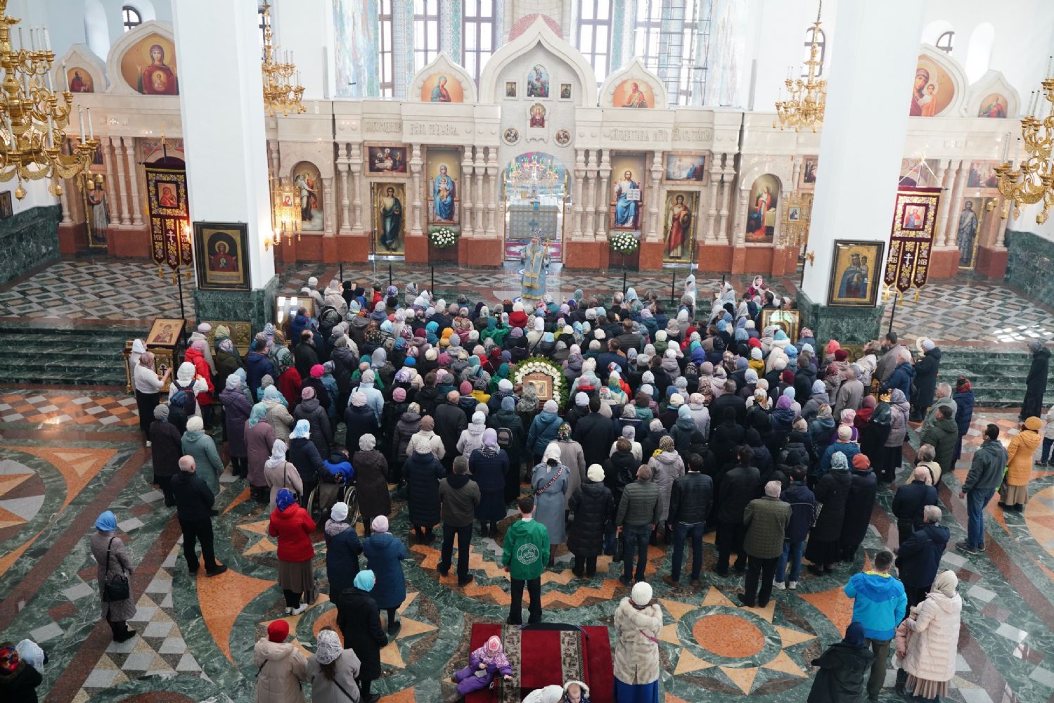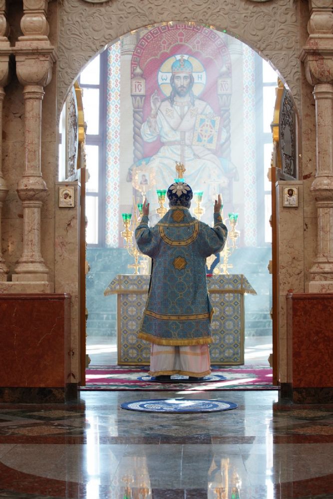 Его Высокопреосвященству сослужили секретарь Йошкар-Олинского епархиального управления иеромонах Серафим (Пасанаев), ключарь собора протоиерей Сергий Поглазов, клирики собора и протодиакон Михаил Козловский. Песнопения исполнял детско-юношеский хор «Благовест» под управлением регента Татьяны Черновой.