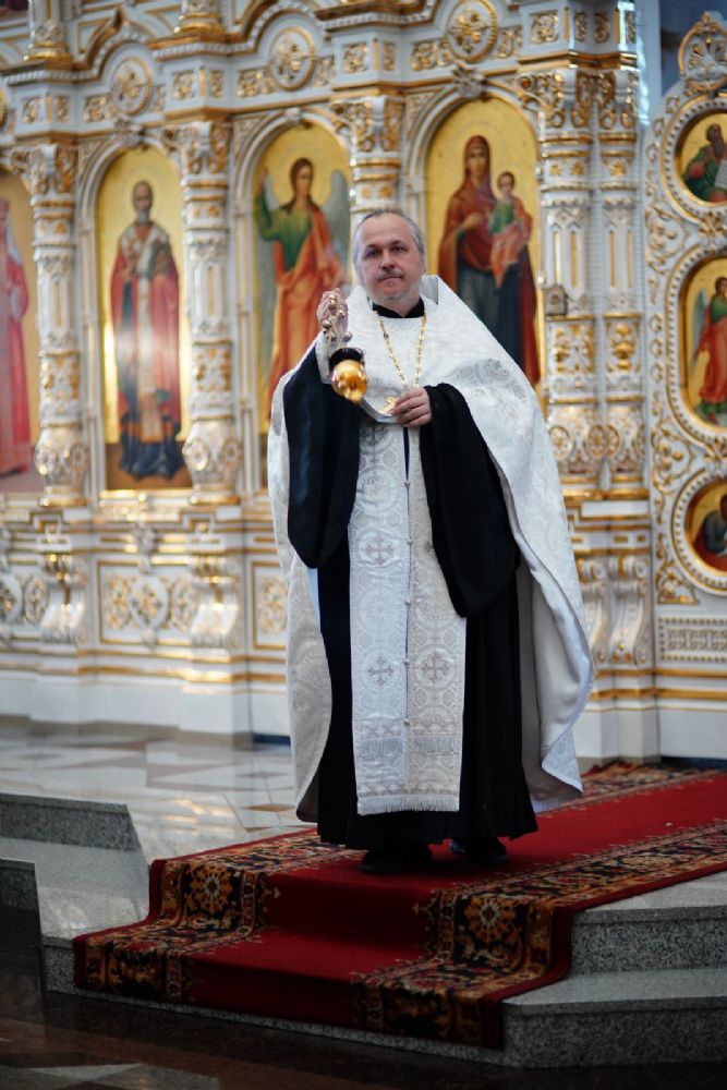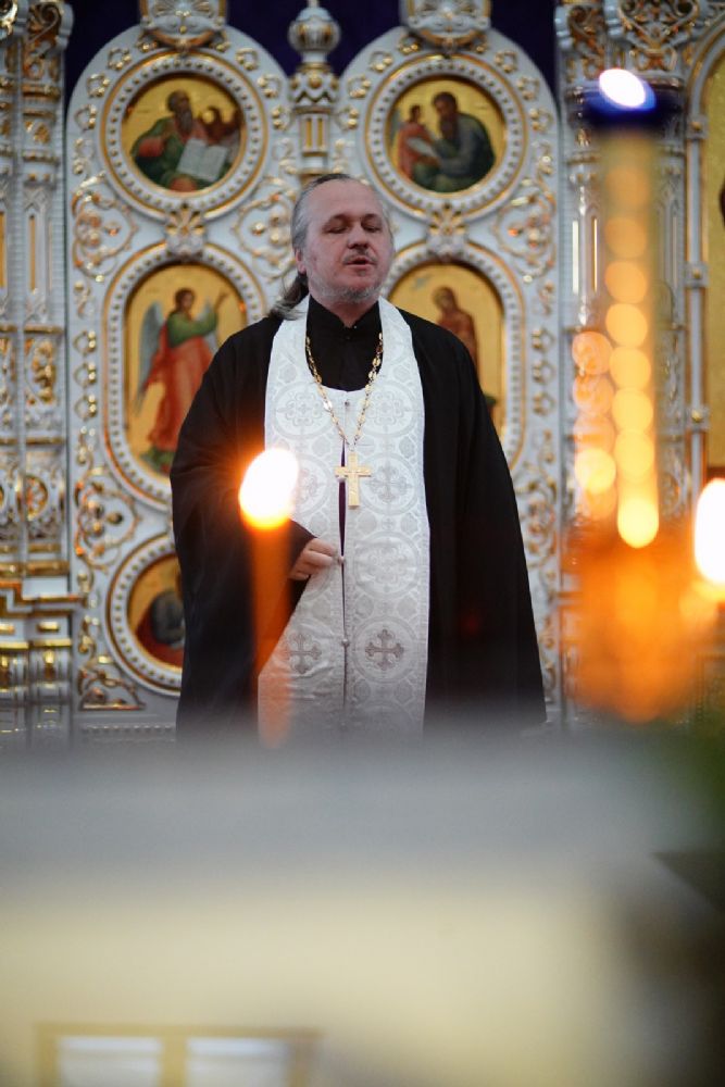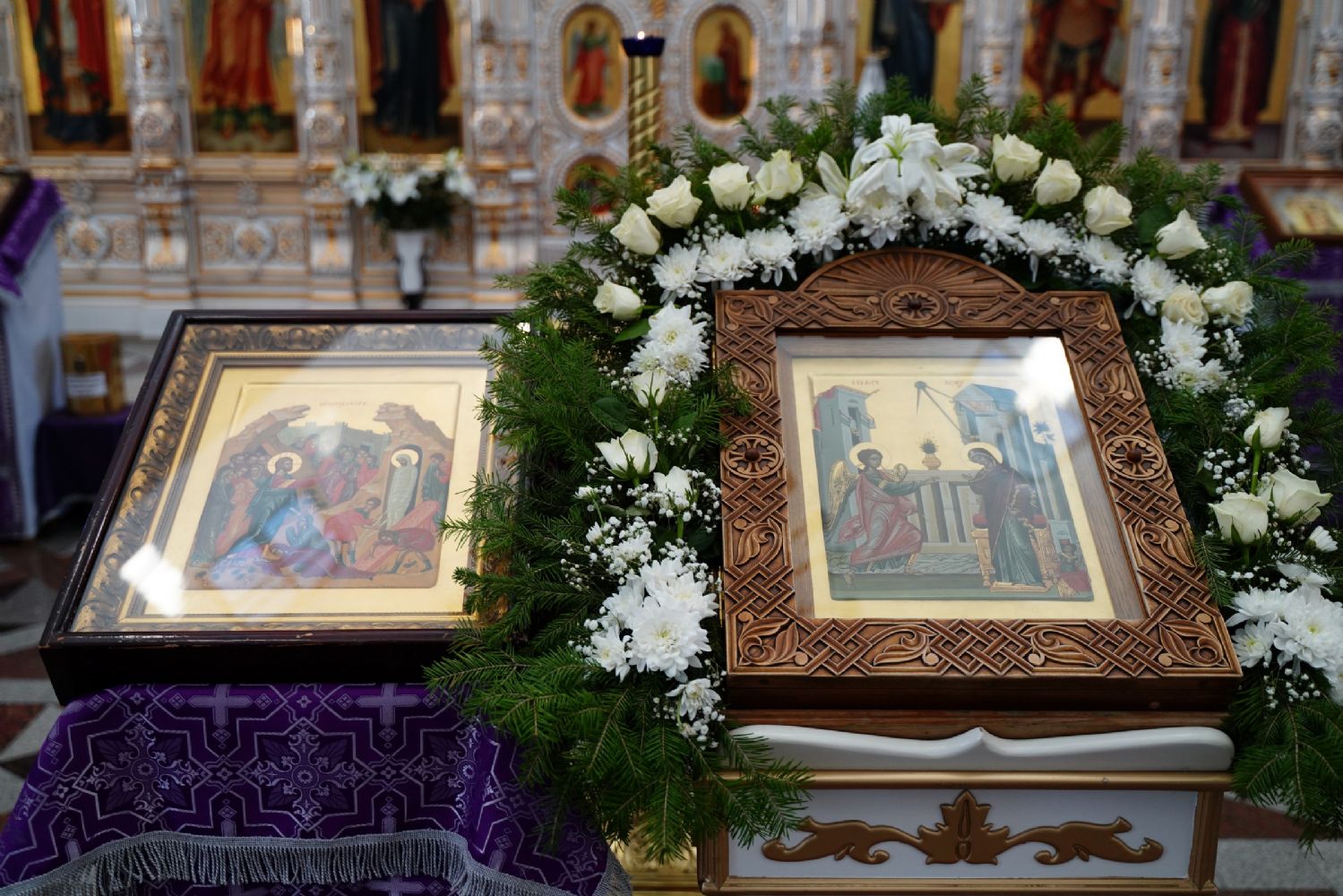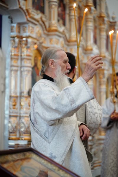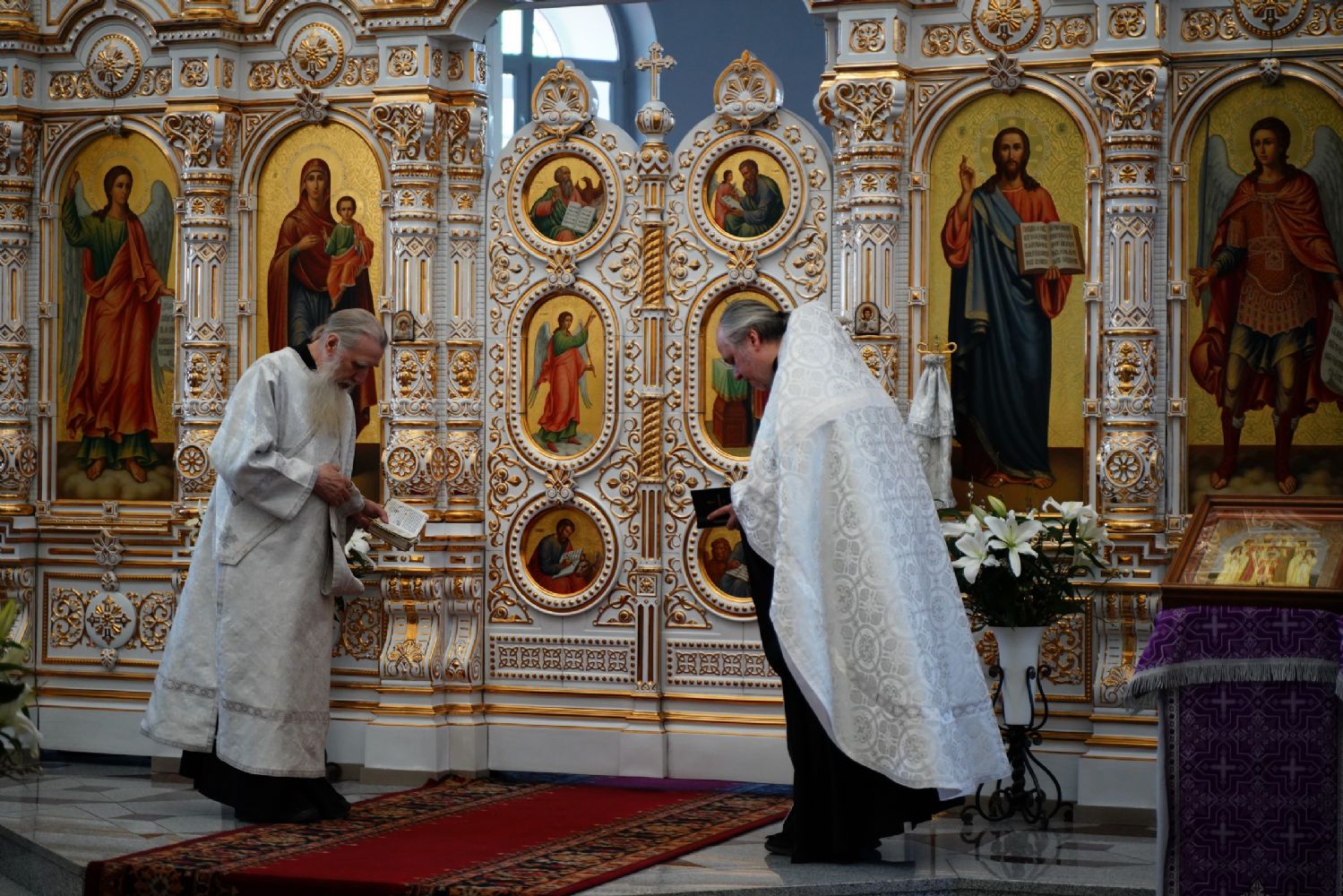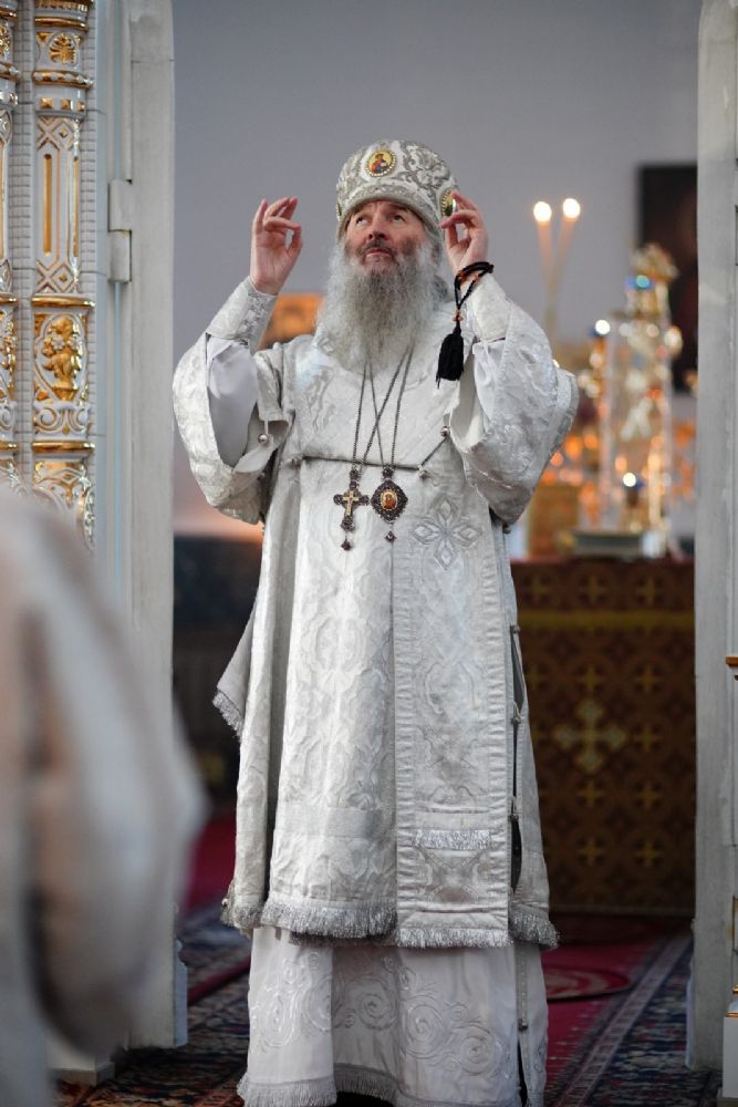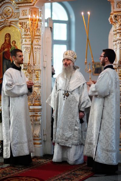 Владыке сослужили секретарь Йошкар-Олинского епархиального управления иеромонах Серафим (Пасанаев), настоятель собора иерей Алексий Кирюшкин, клирики собора иереи Леонид Вылекжанин и Андрей Кочаков, а также протодиакон Михаил Козловский. Песнопения исполнял хор храма под управлением регента Елены Поглазовой.