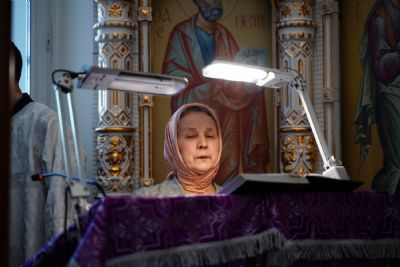 На утрени после чтения кафизм звучали воскресные тропари «Ангельский собор удивися...», которые обычно поются на воскресной утрени. После чего были прочитаны седальны и все собравшиеся вместе пели «Воскресение Христово видевше...».