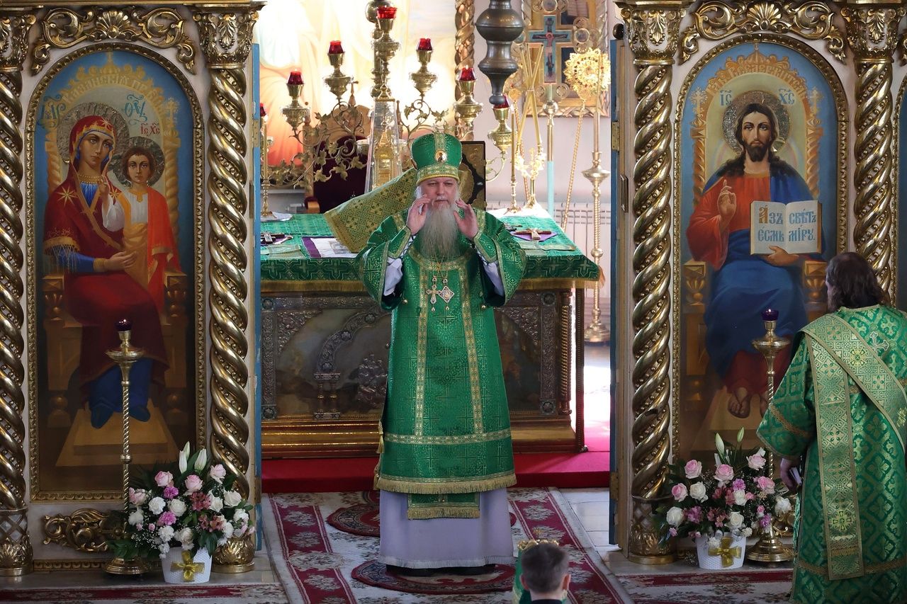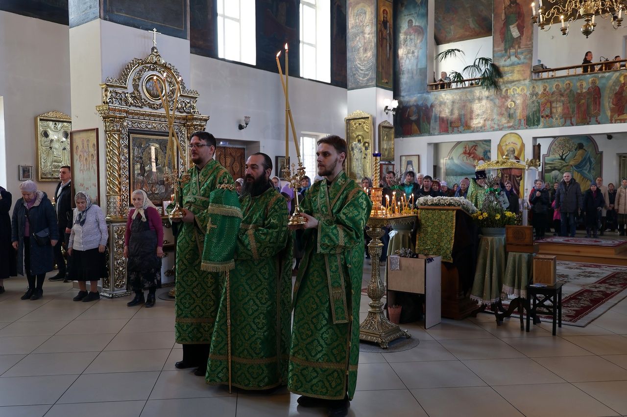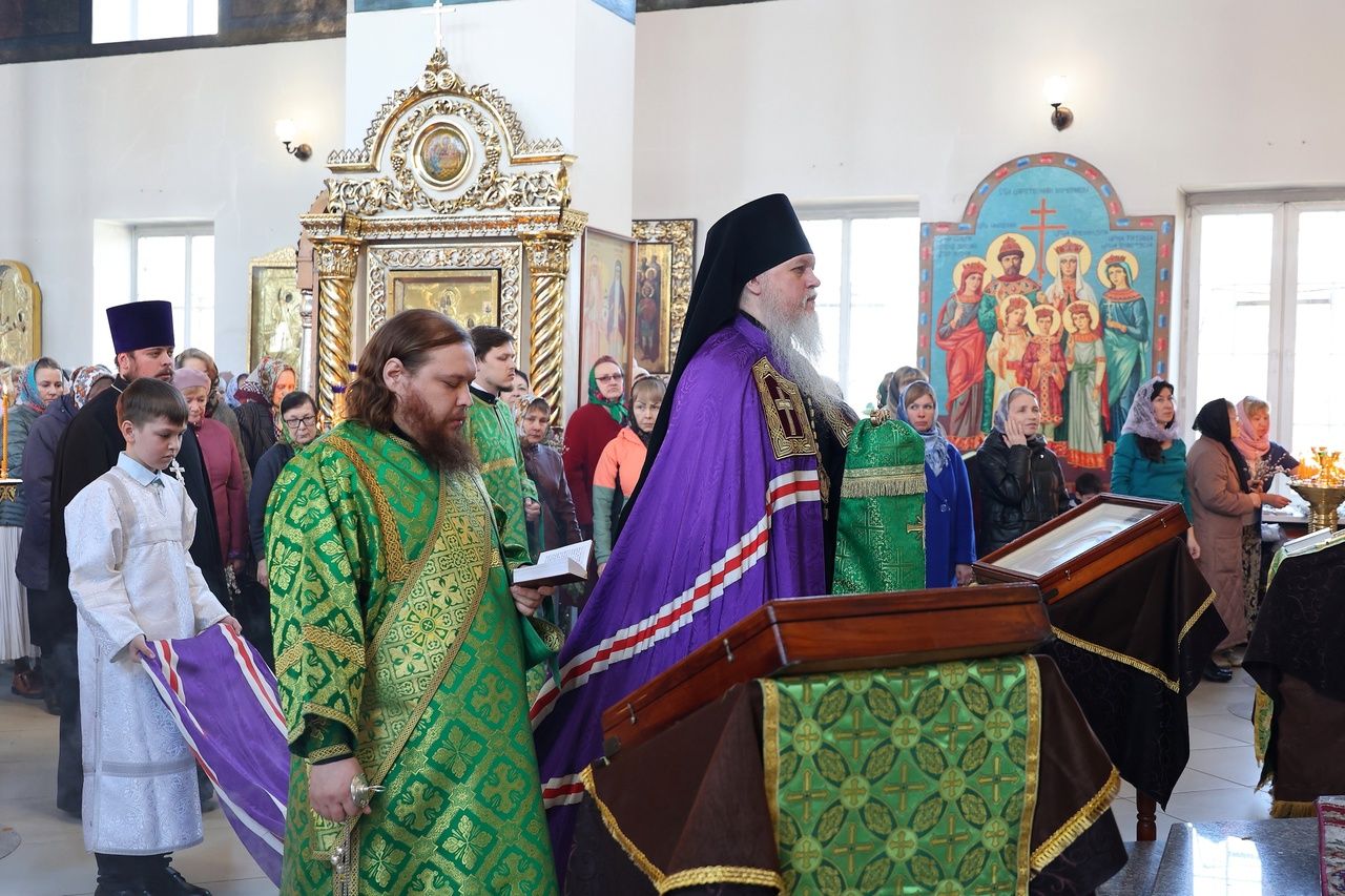 В этот же день вечером епископ Феофан совершил в Никольском соборе Волжска таинство Елеосвящения в сослужении духовенства собора.