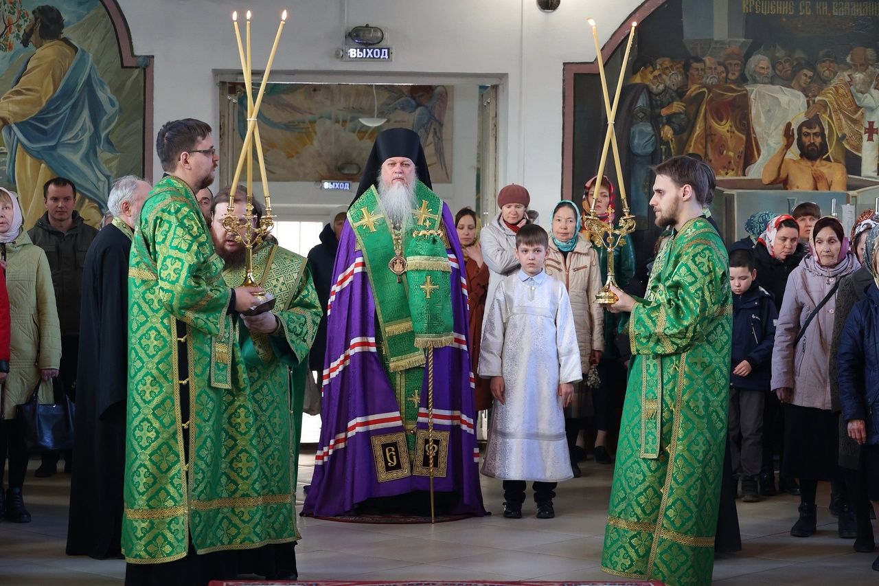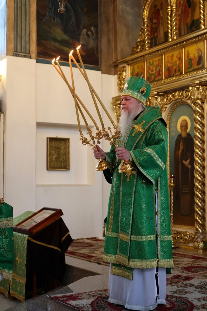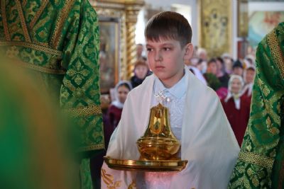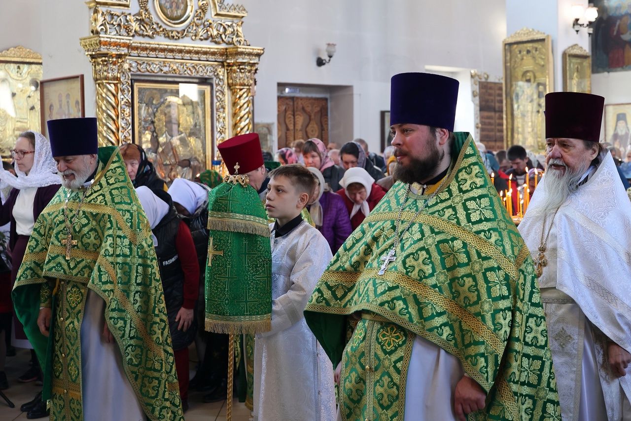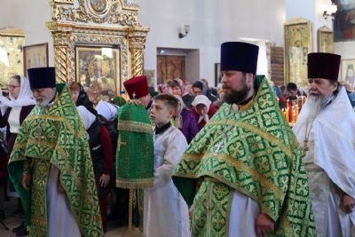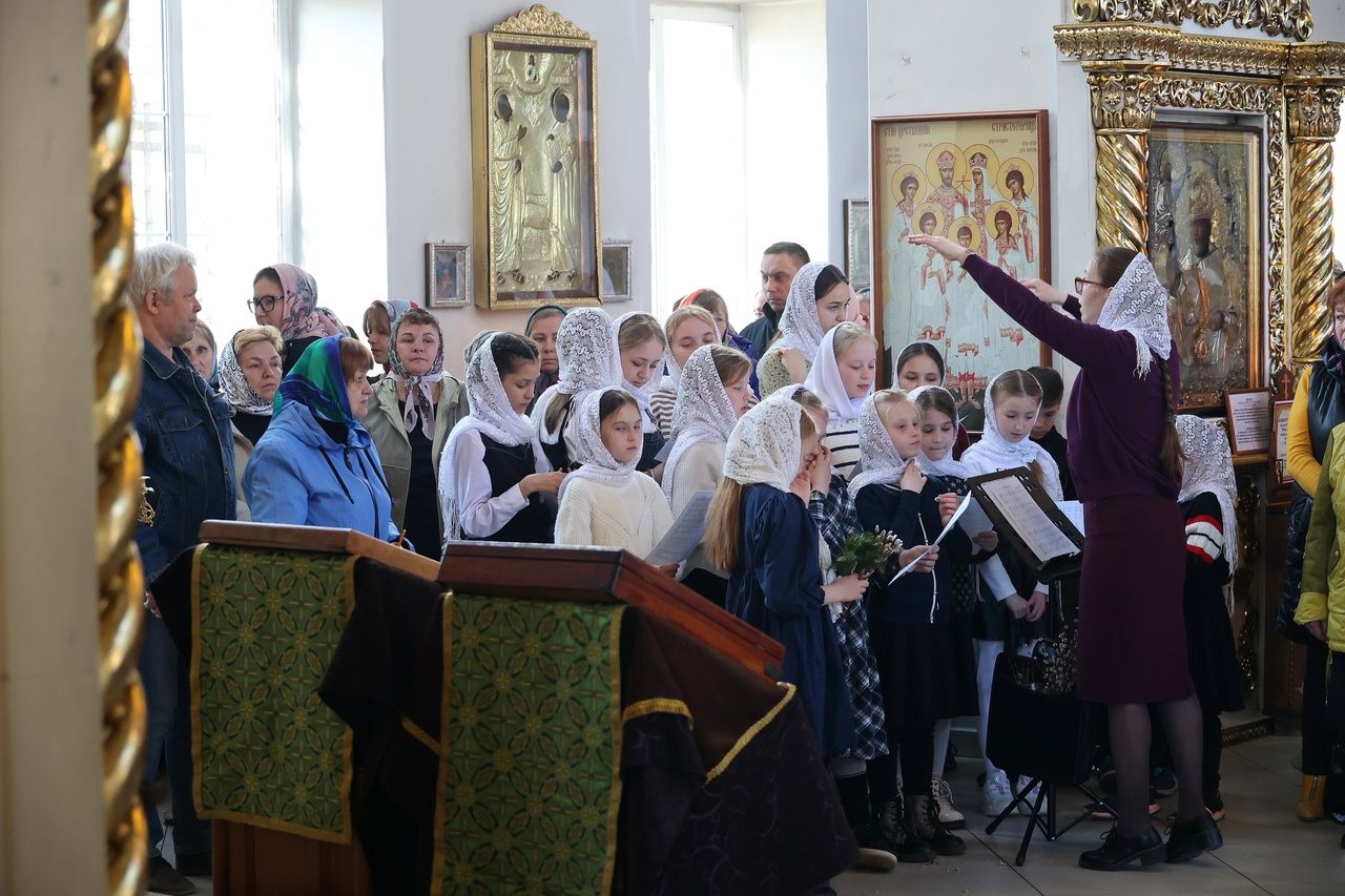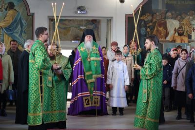 Его Преосвященству сослужило духовенство собора. Песнопения исполнили два хора – архиерейский (регент Любовь Михеева) и детско-юношеский «Славословие» (регент Мария Захарова).