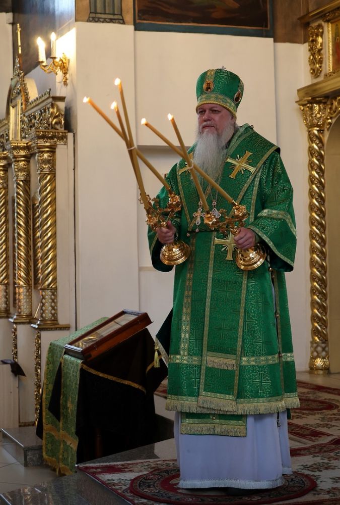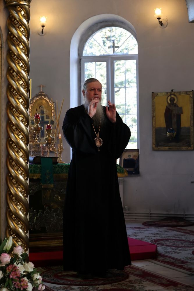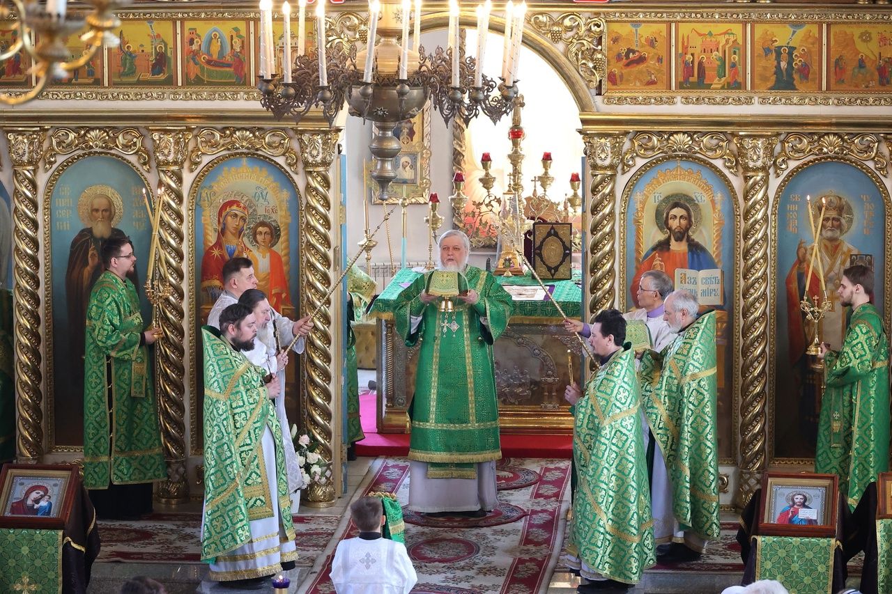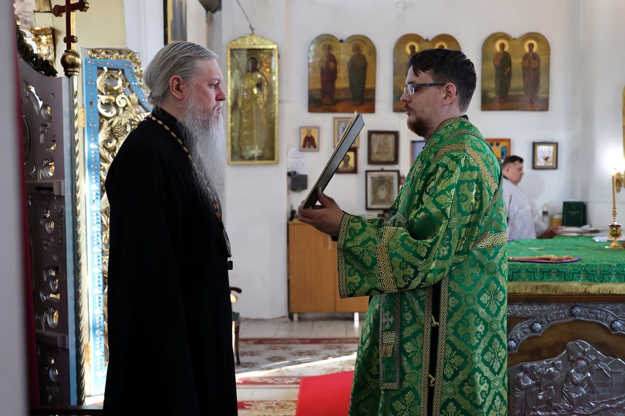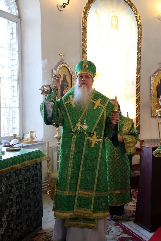 Его Преосвященству сослужило духовенство собора. Песнопения исполнили два хора – архиерейский (регент Любовь Михеева) и детско-юношеский «Славословие» (регент Мария Захарова).