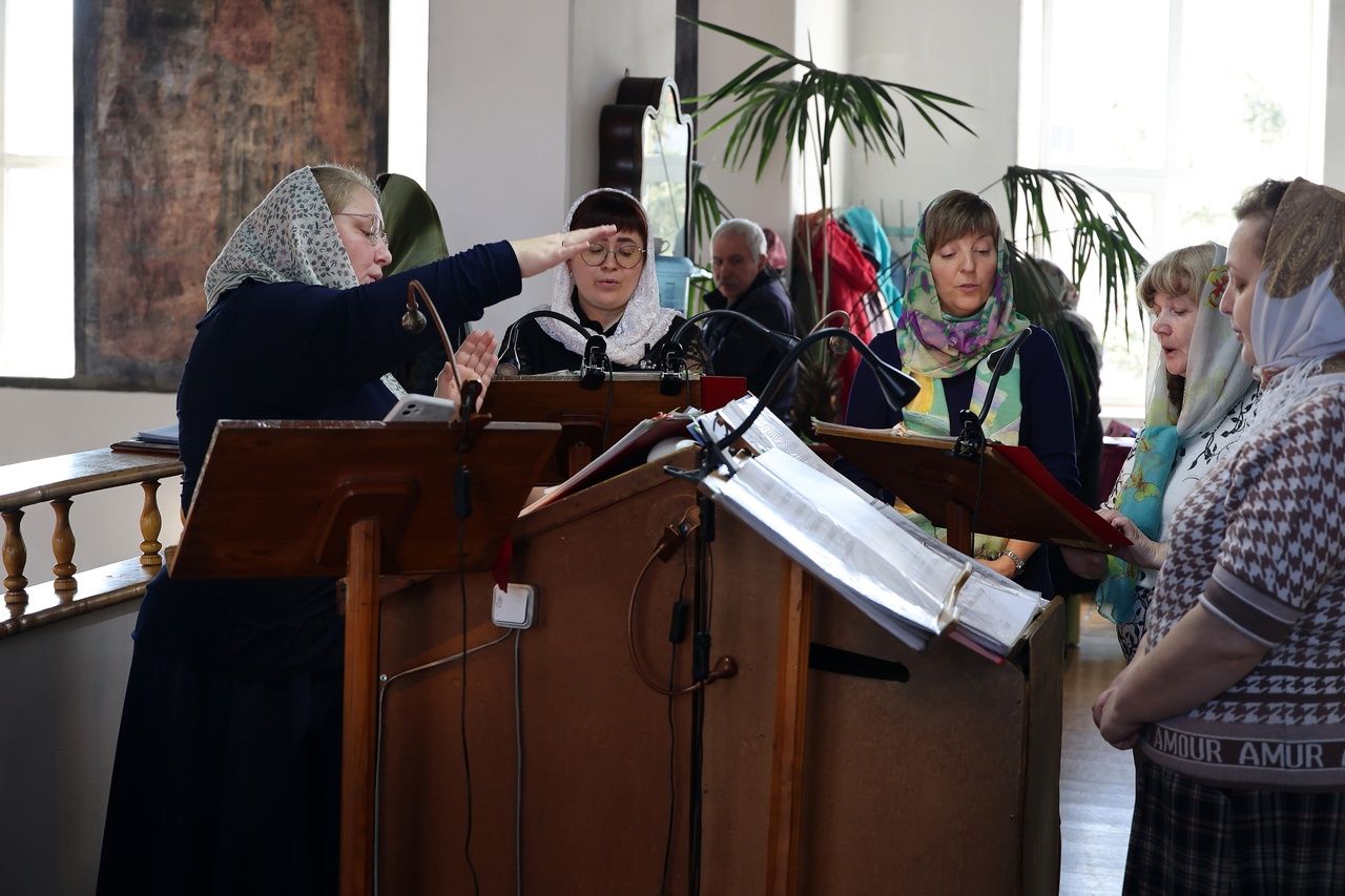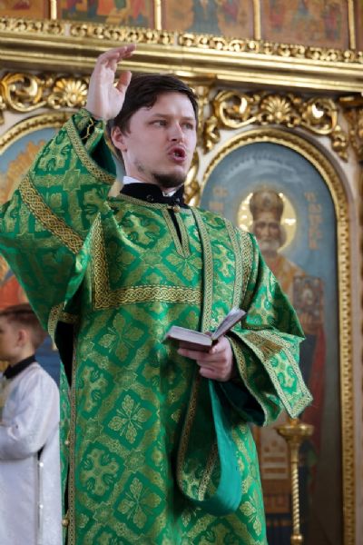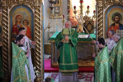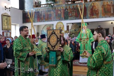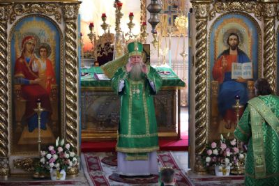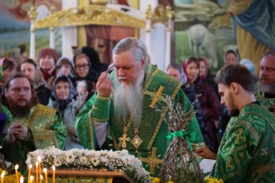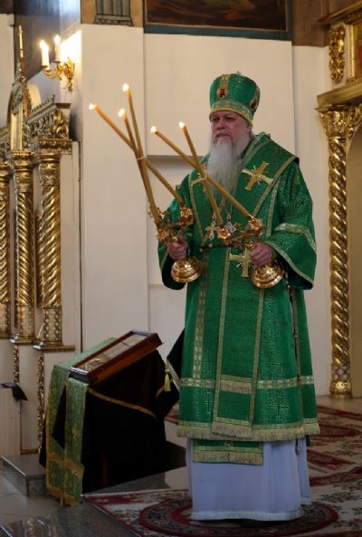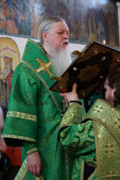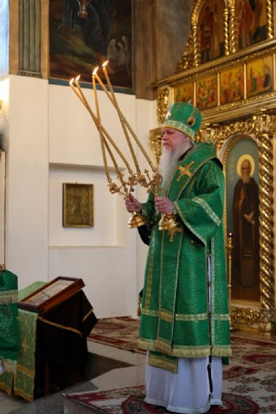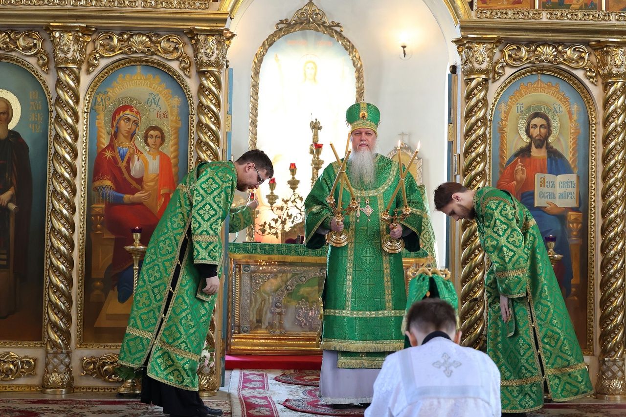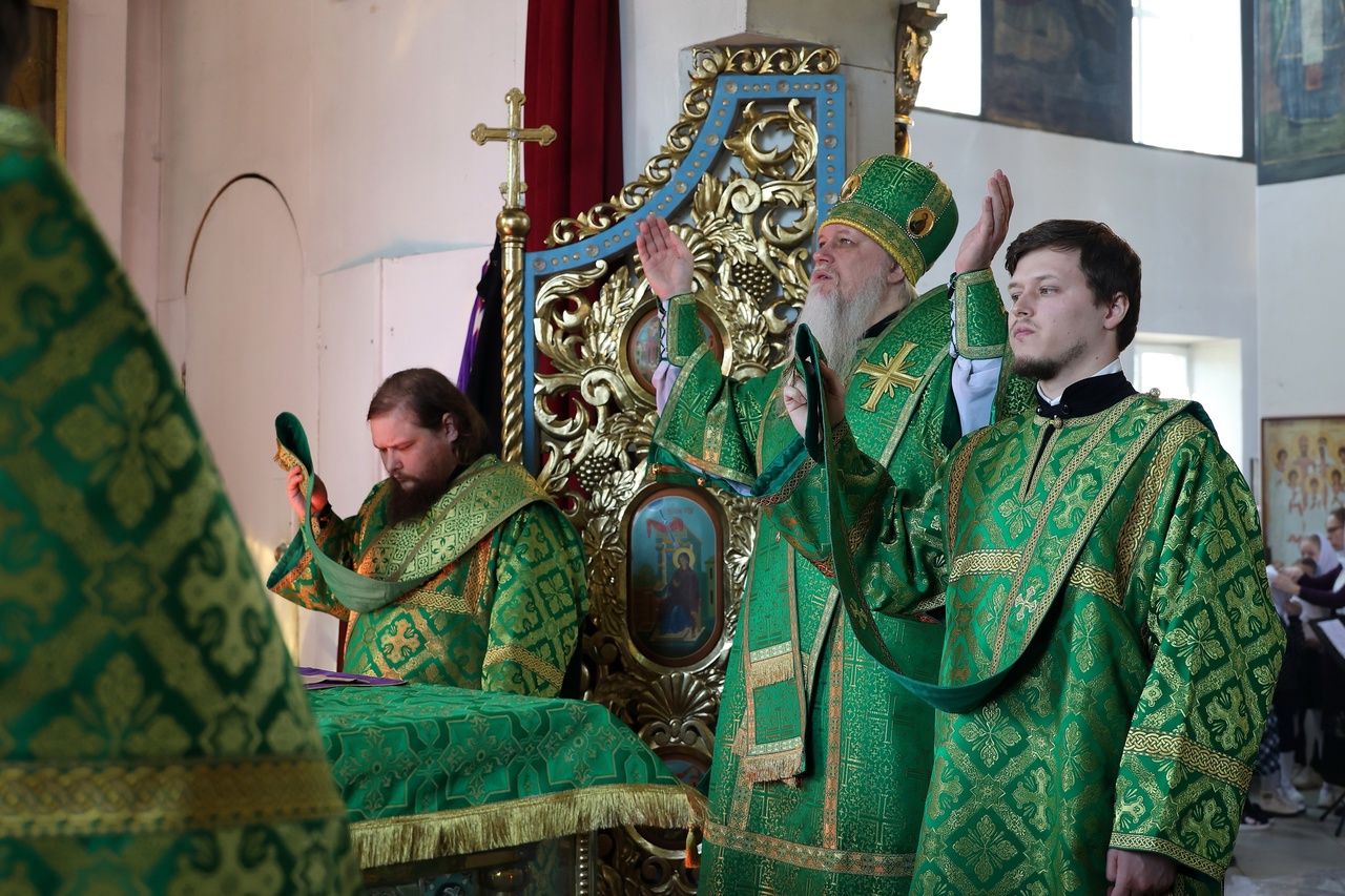Его Преосвященству сослужило духовенство собора. Песнопения исполнили два хора – архиерейский (регент Любовь Михеева) и детско-юношеский «Славословие» (регент Мария Захарова).