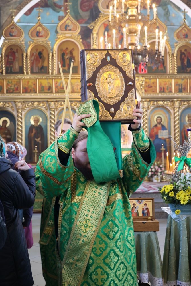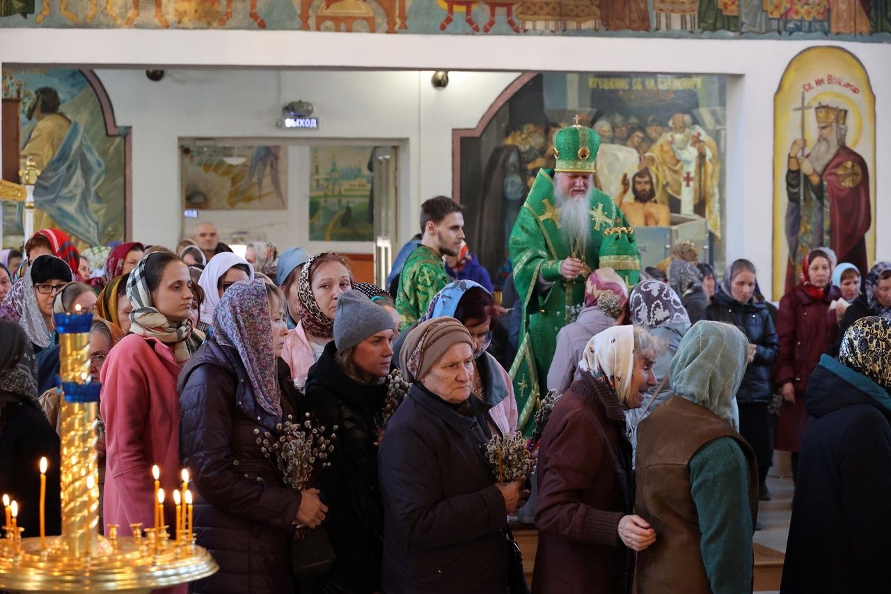 9 апреля, в праздник Входа Господня в Иерусалим, Вербное воскресенье, епископ Волжский и Сернурский Феофан возглавил Божественную литургию в Никольском кафедральном соборе г. Волжска. Накануне владыка совершил здесь же всенощное бдение.