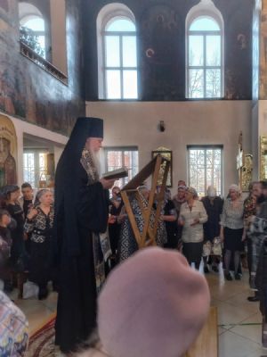 По окончании Литургии епископ Феофан обратился к верующим с проповедью, напомнив евангельские события воскрешения Христом Лазаря, вечерю в доме Симона прокаженного, где сестра Лазаря Мария помазала драгоценным миром ноги Иисуса в знак своего глубокого уважения к Учителю, а Иуда замыслил предать Его…