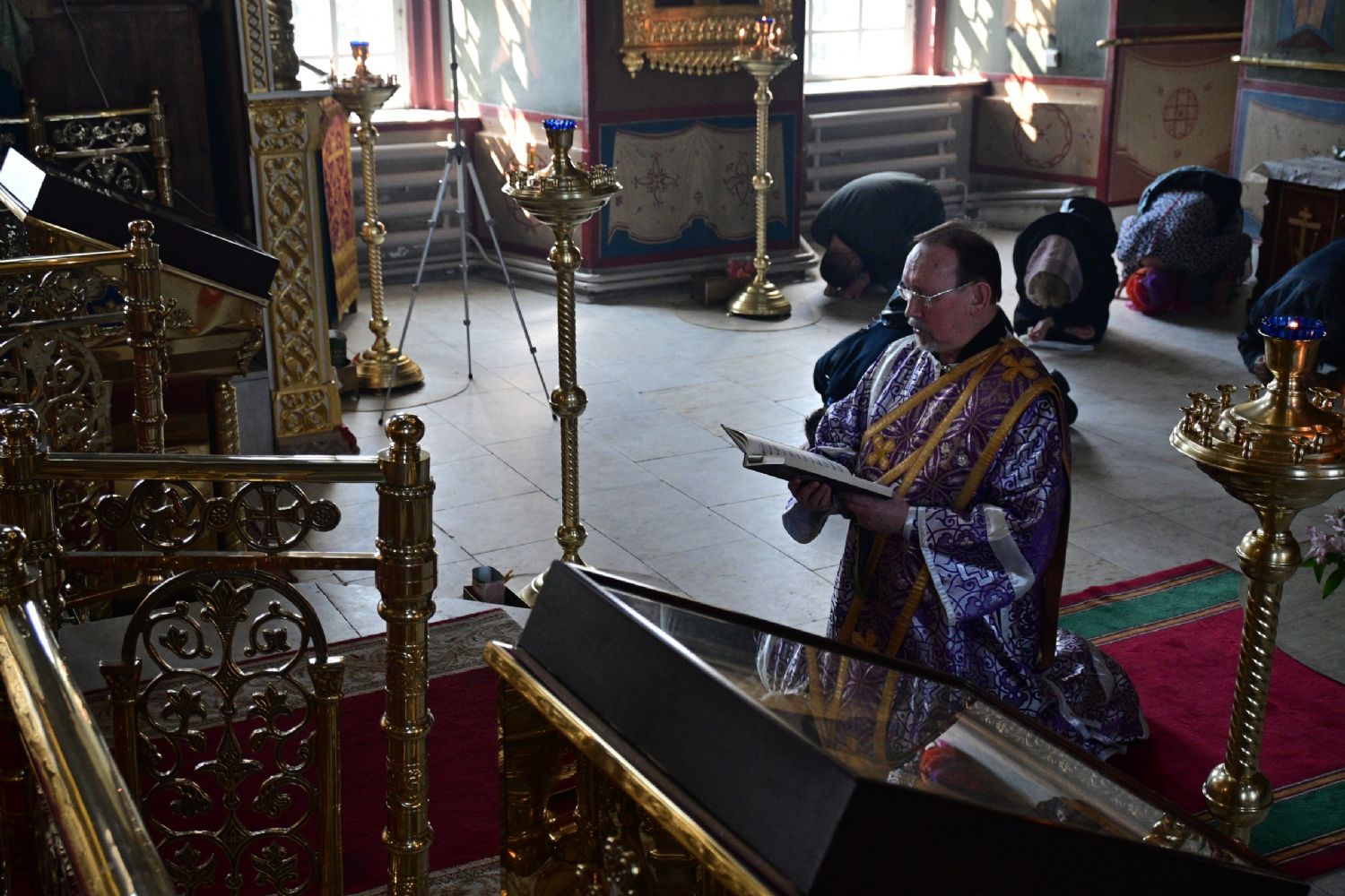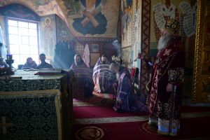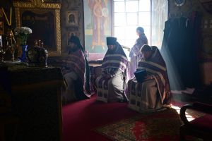 После заамвонной молитвы владыка с сослужащим духовенством последний раз в этом году вознесли молитву Ефрема Сирина с земными поклонами.