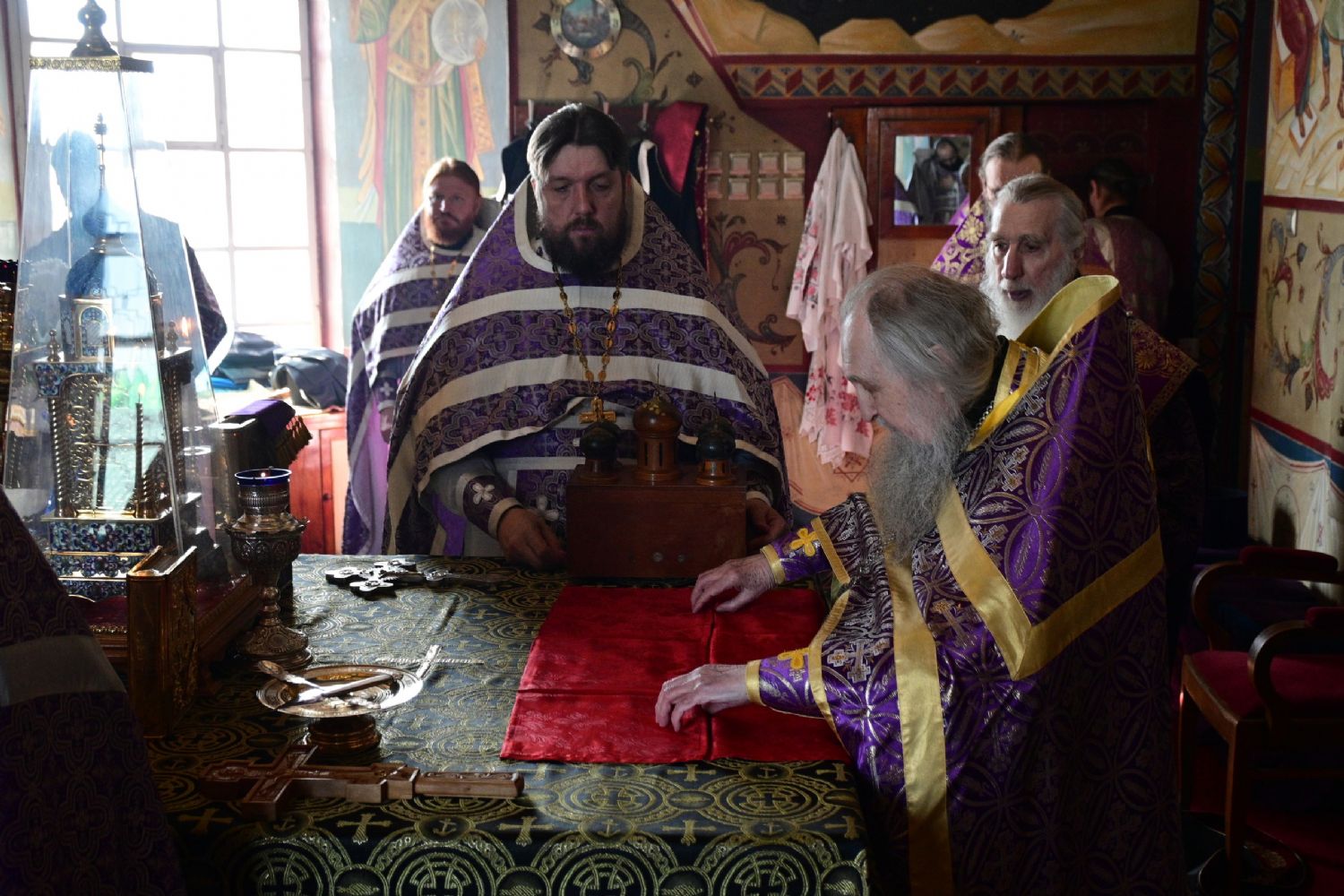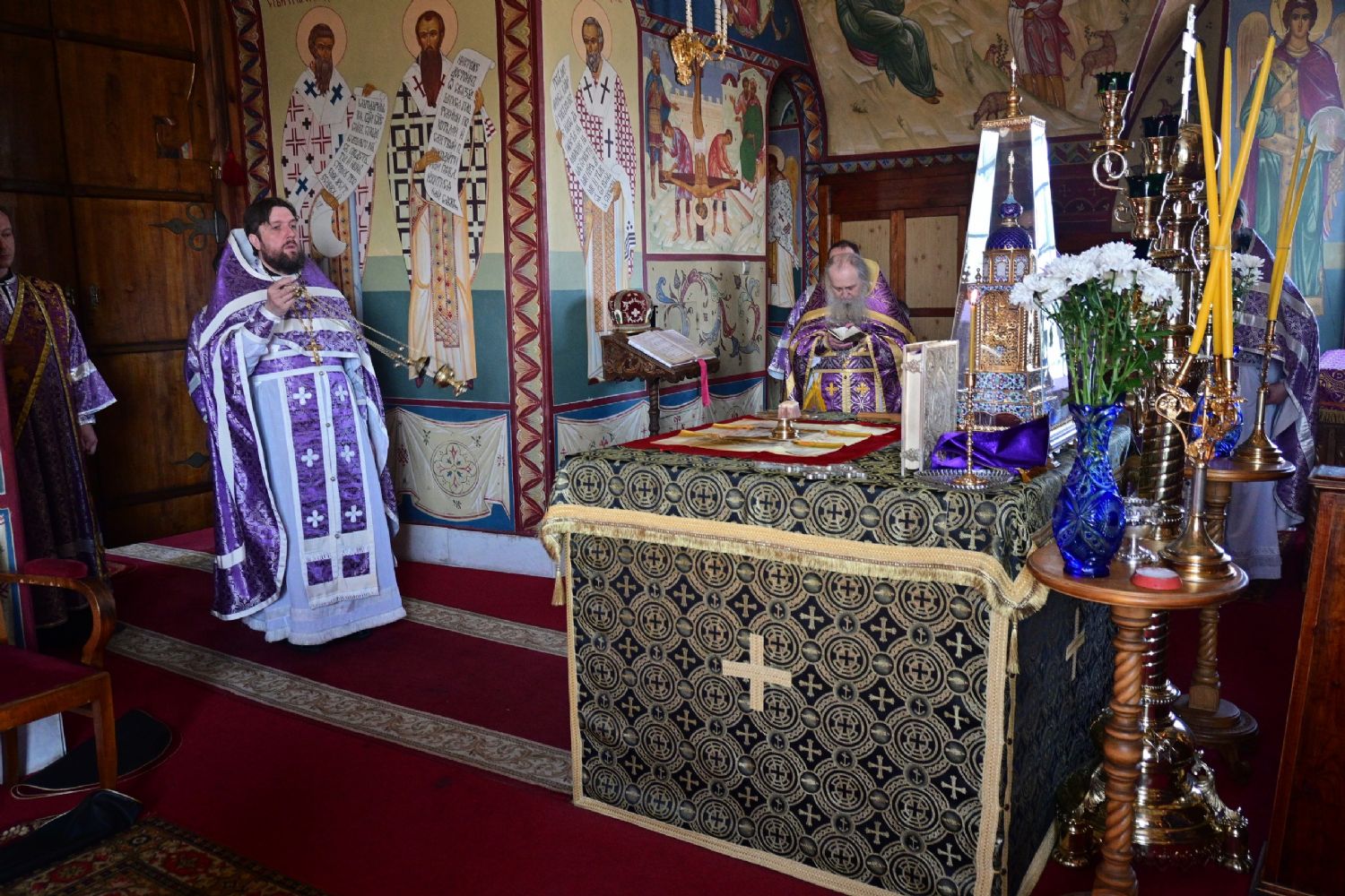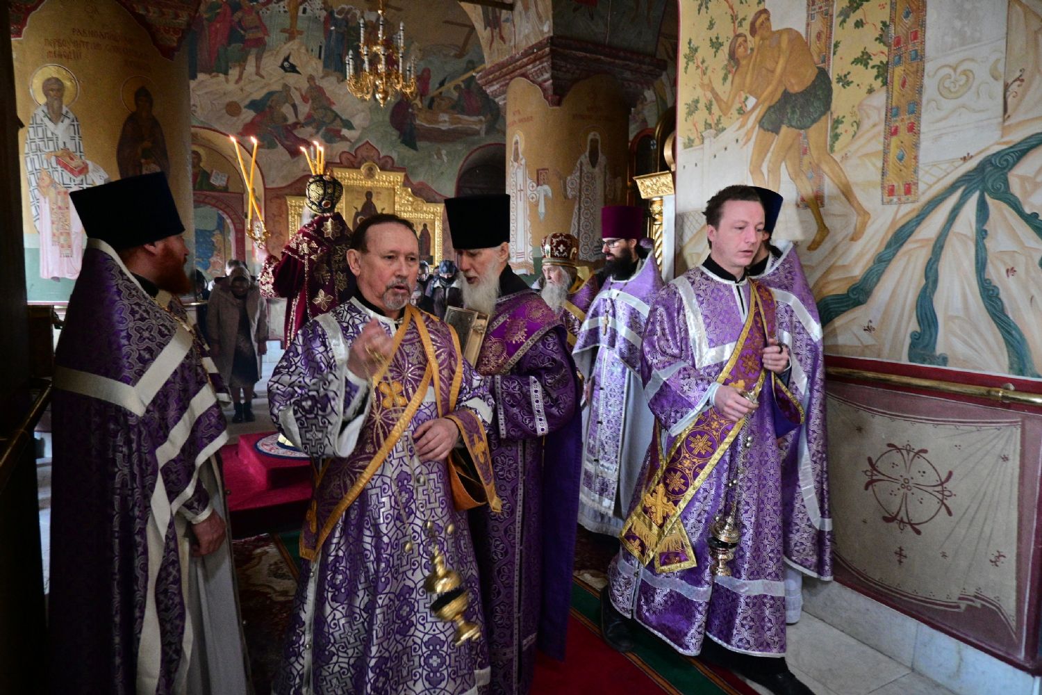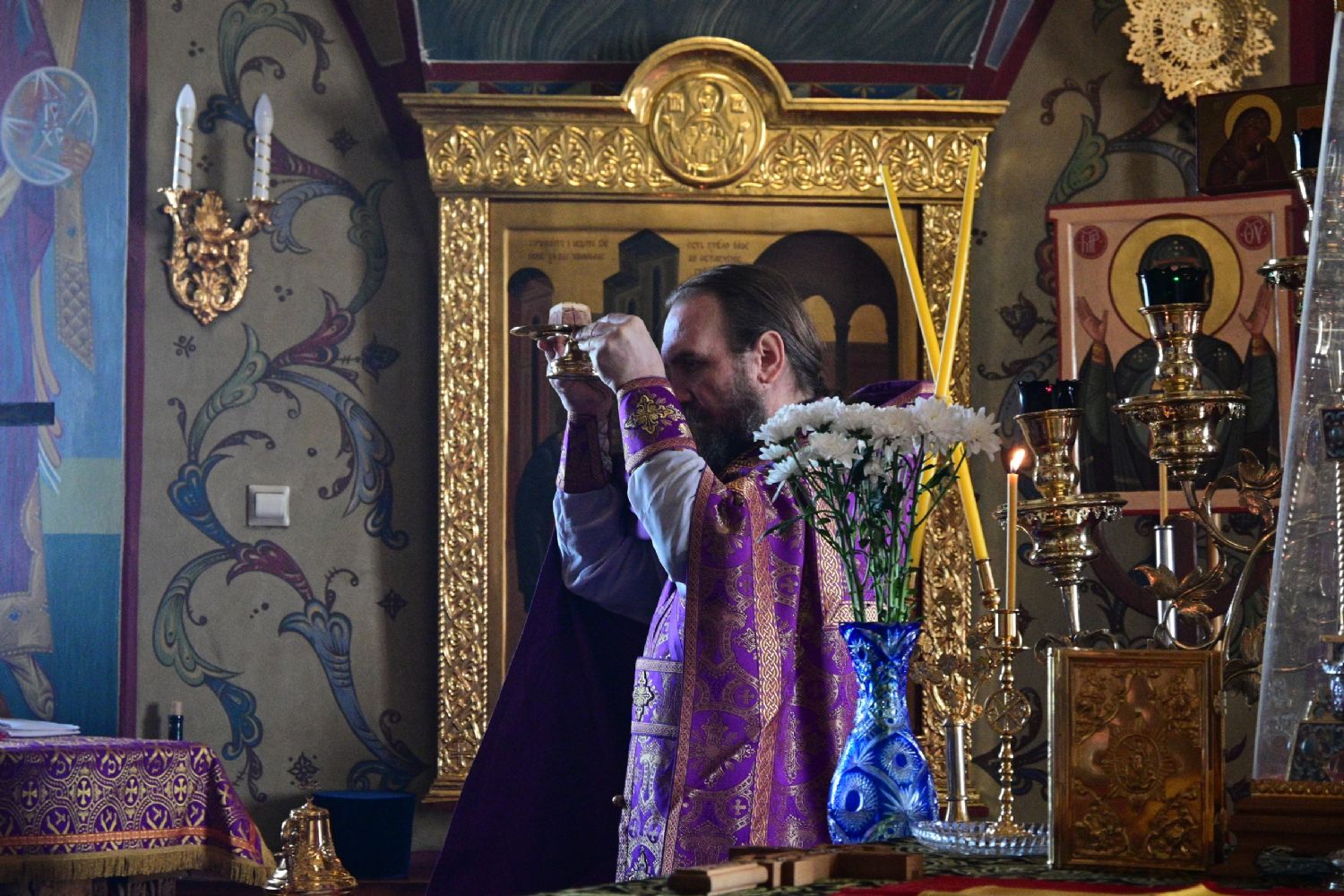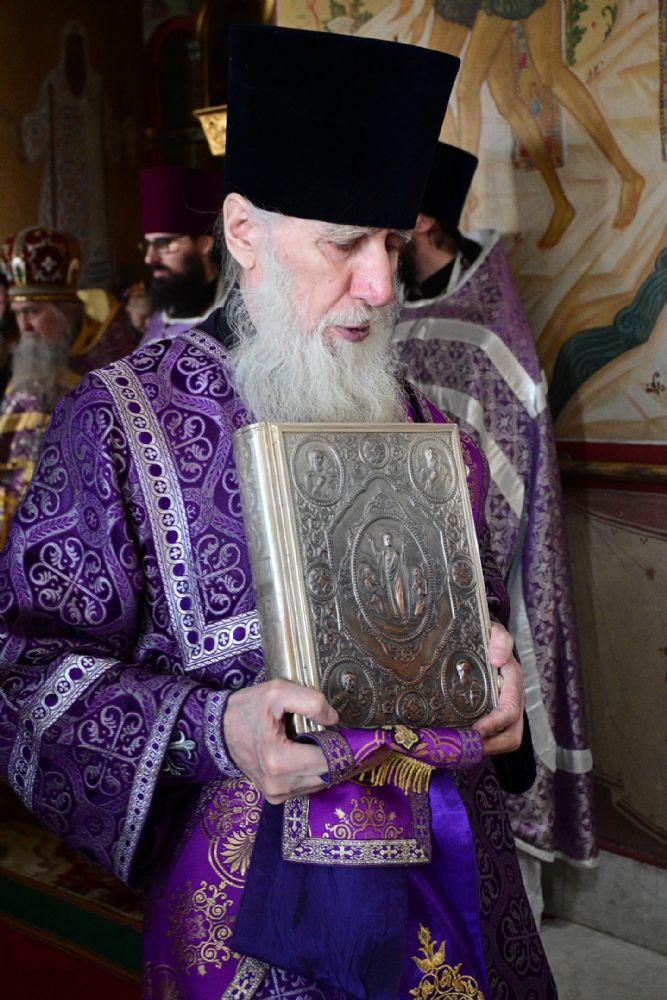 За богослужением читались отрывки из книги Исход (2 глава) о бегстве Моисея в землю Мадиамскую, из книги Иова (2 глава) о страданиях праведного Иова и из Евангелия от Матфея (26 глава) о помазании Господа Иисуса Христа благовонным миром в Вифании.