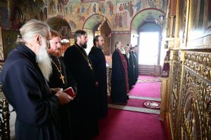 Архипастырю сослужили секретарь епархиального управления иеромонах Серафим (Пасанаев), настоятель собора протоиерей Евгений Кутырев, благочинный Йошкар-Олинского церковного округа протоиерей Андрей Норкин, клирики собора и протодиакон Михаил Козловский. Песнопения исполнял хор собора под управлением регента Ангелины Бабиной.